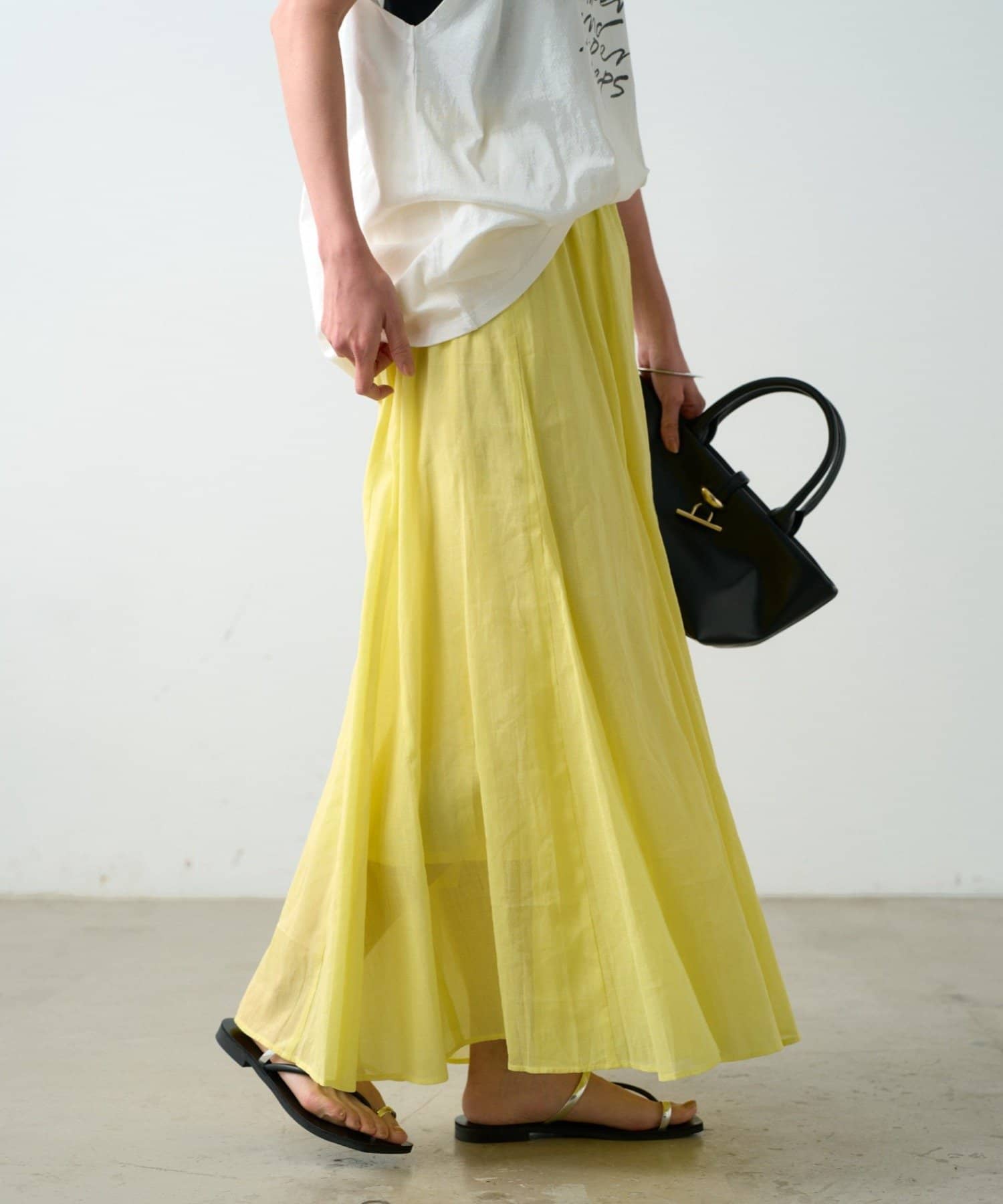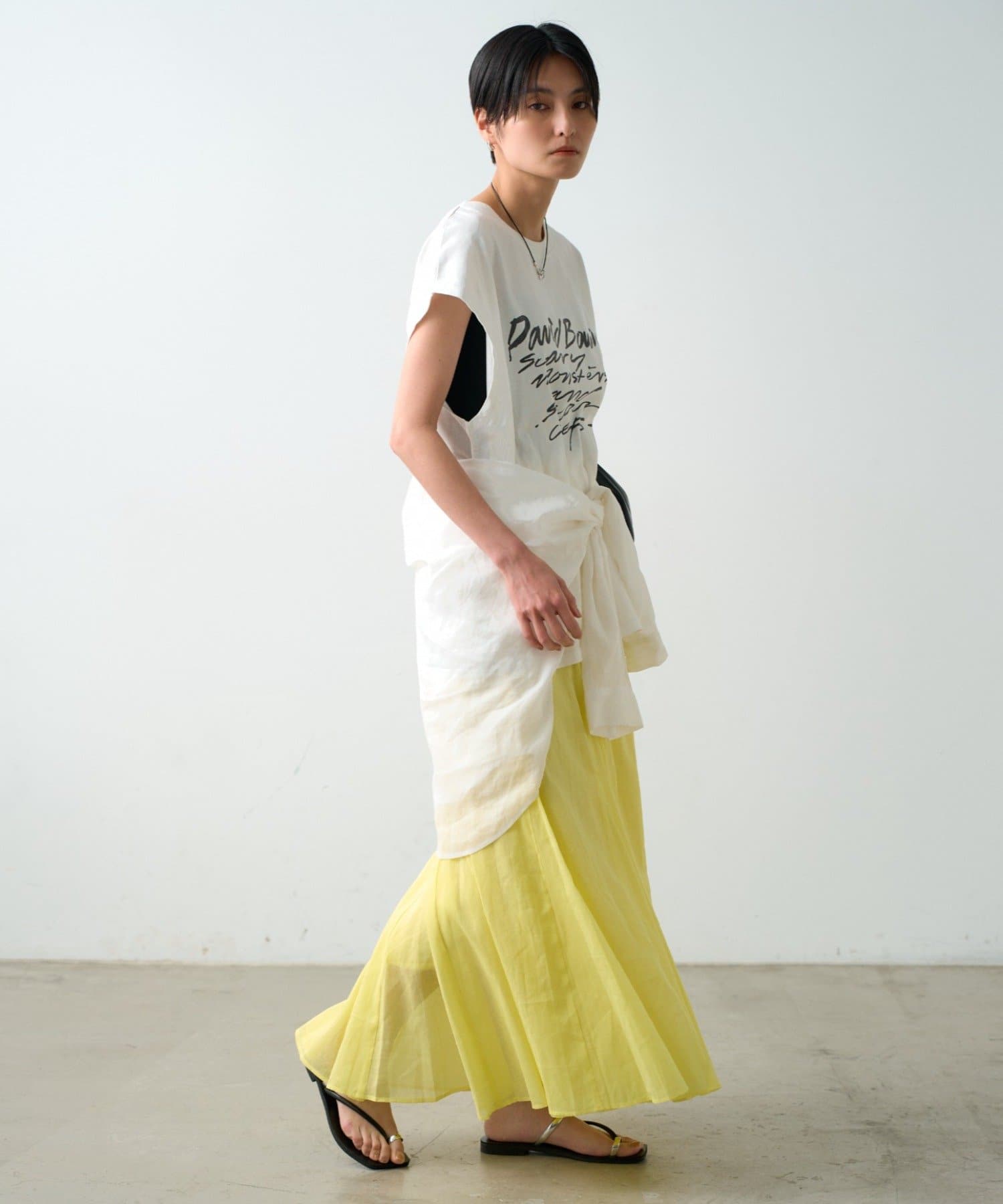 パッと目を引く鮮やかなイエローは、コーディネートの主役に。