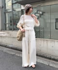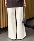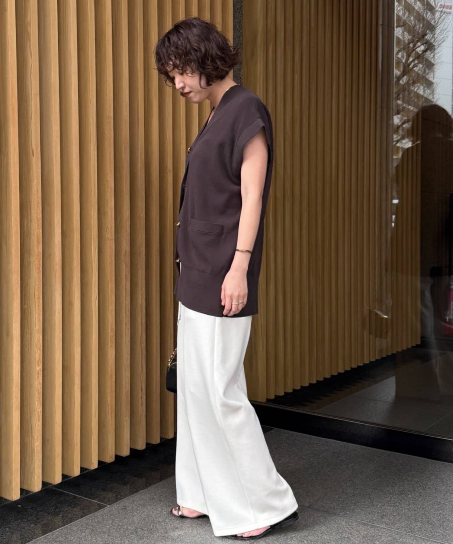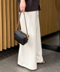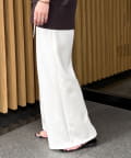 ハリのある生地がヒップや太もものラインを拾いにくく、すっきりとした着こなしを叶えます。