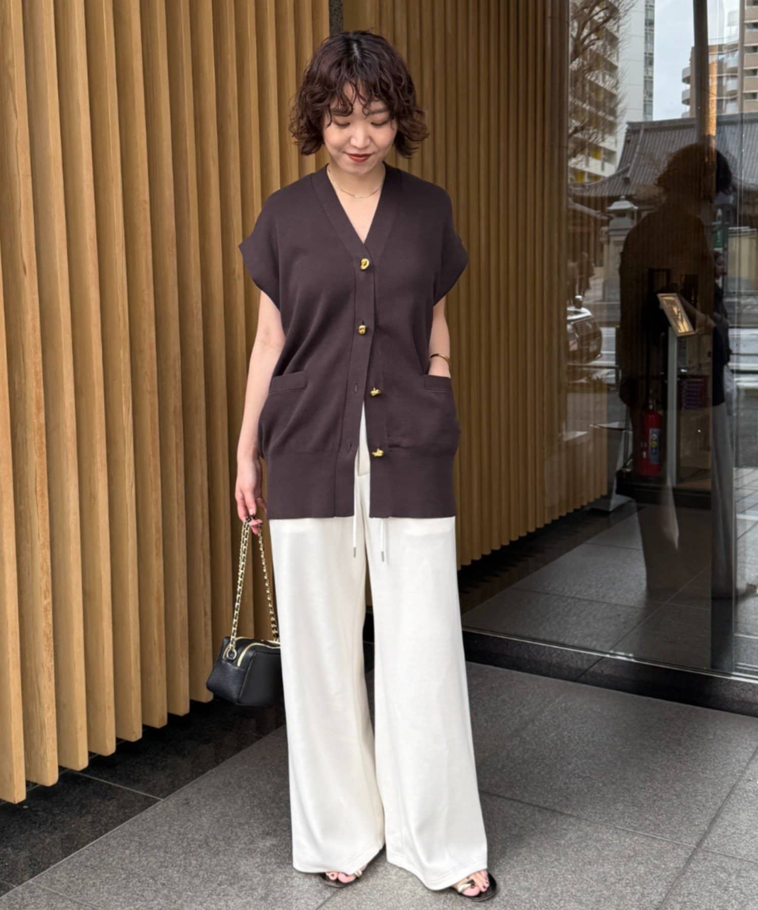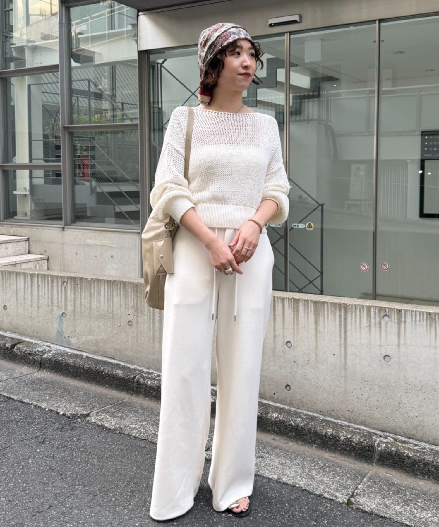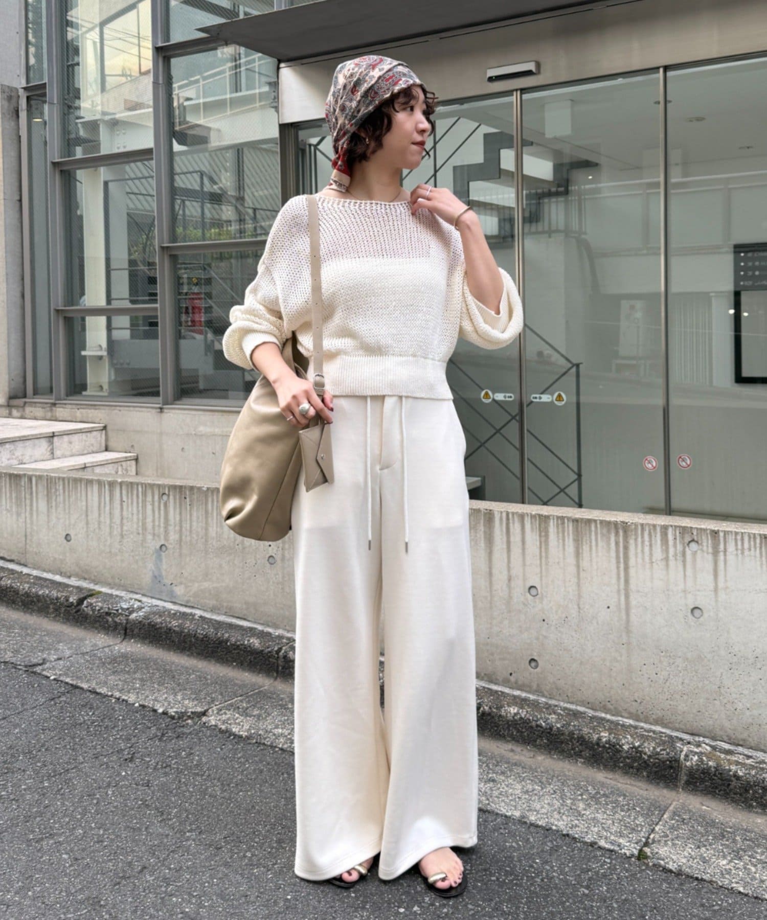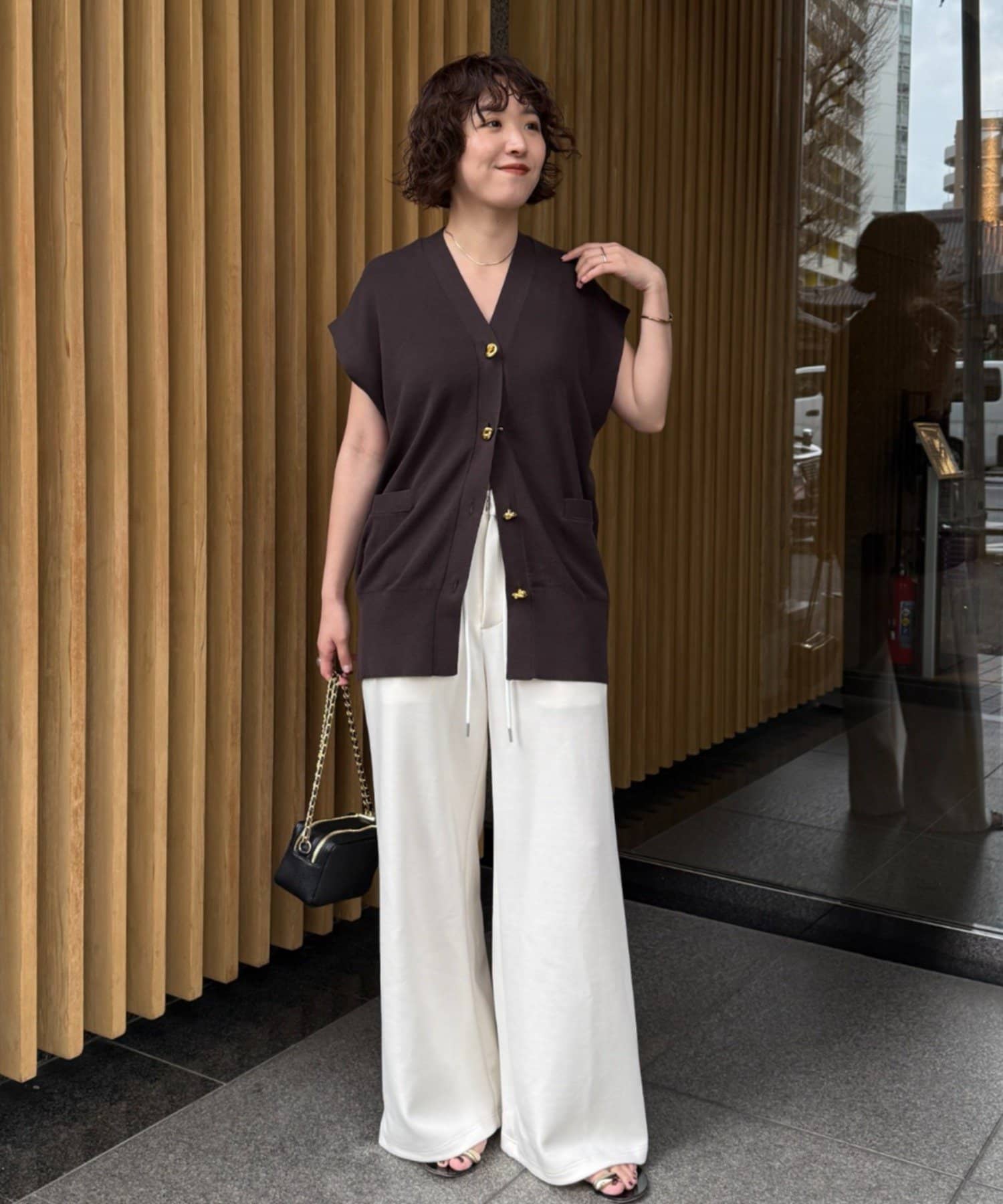 スウェット素材ながら、フロントは前開き仕様にすることで、カジュアルになりすぎず上品な印象に。