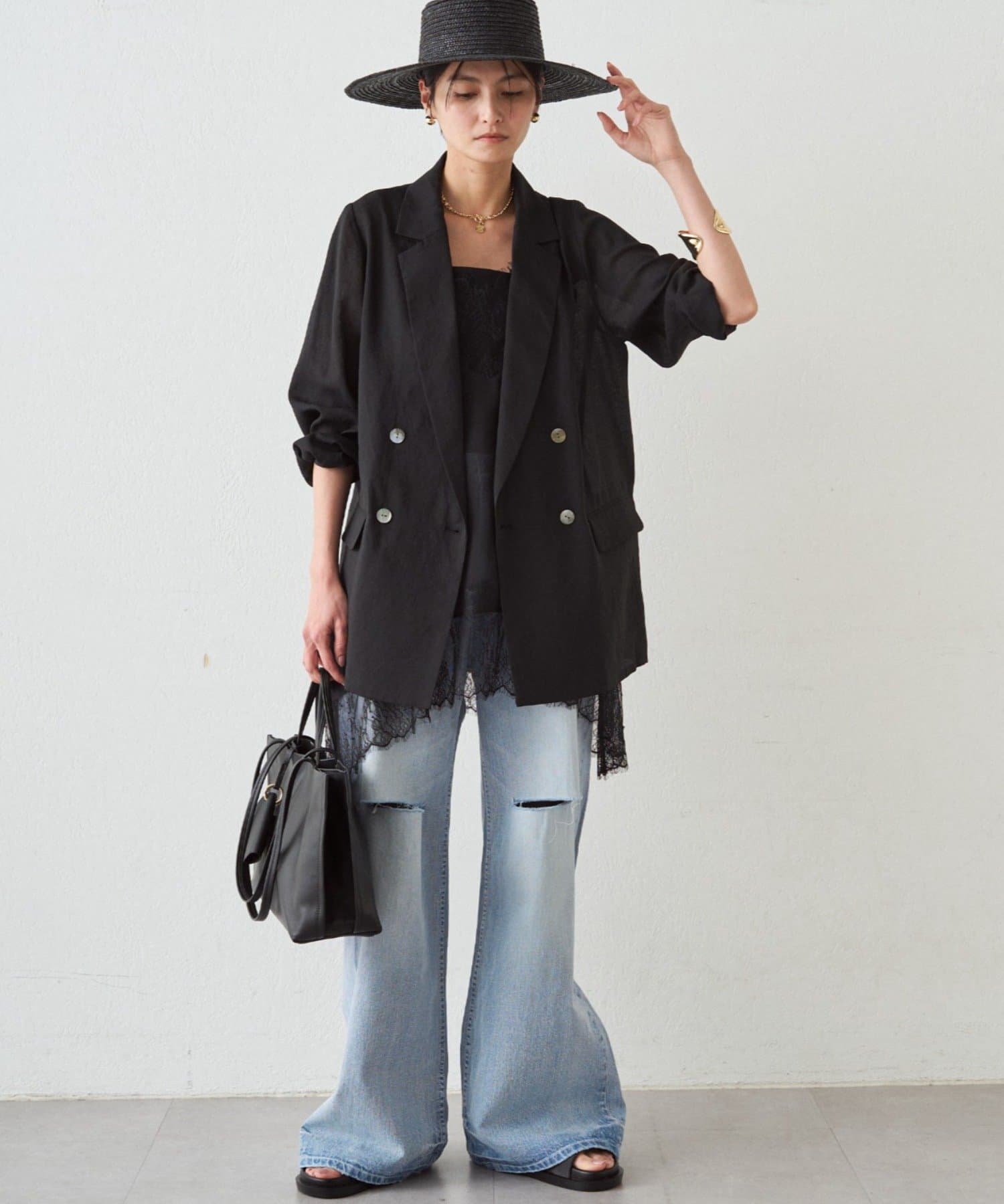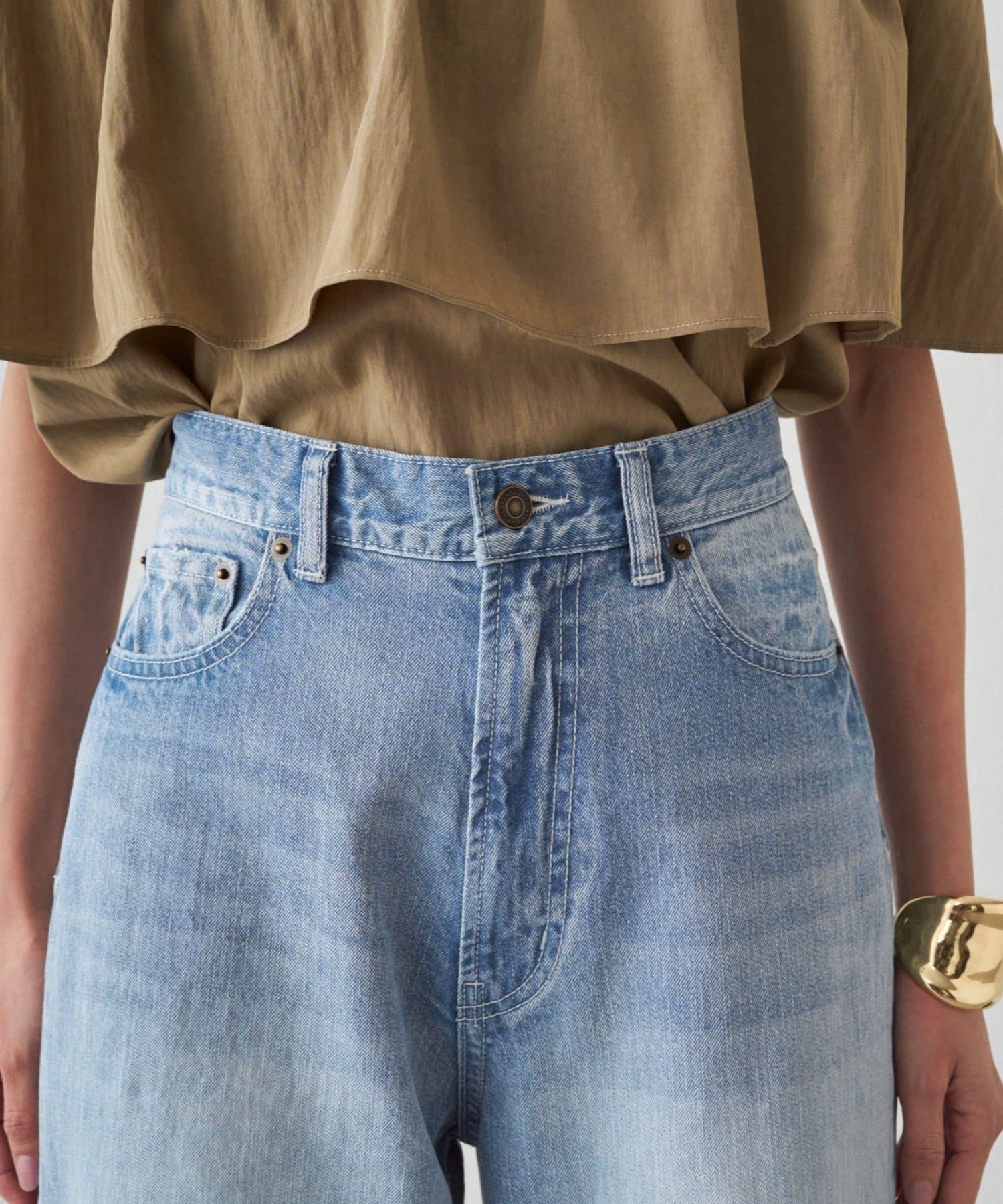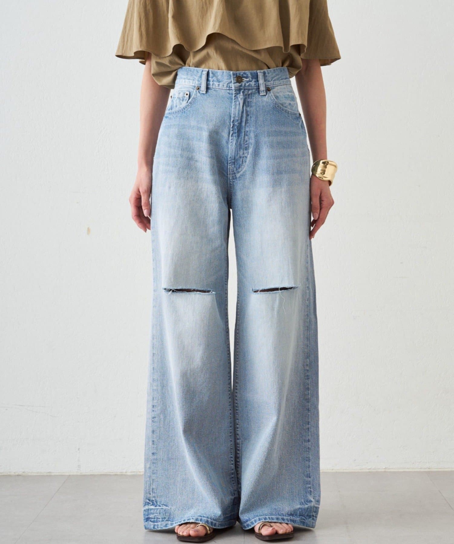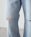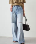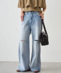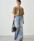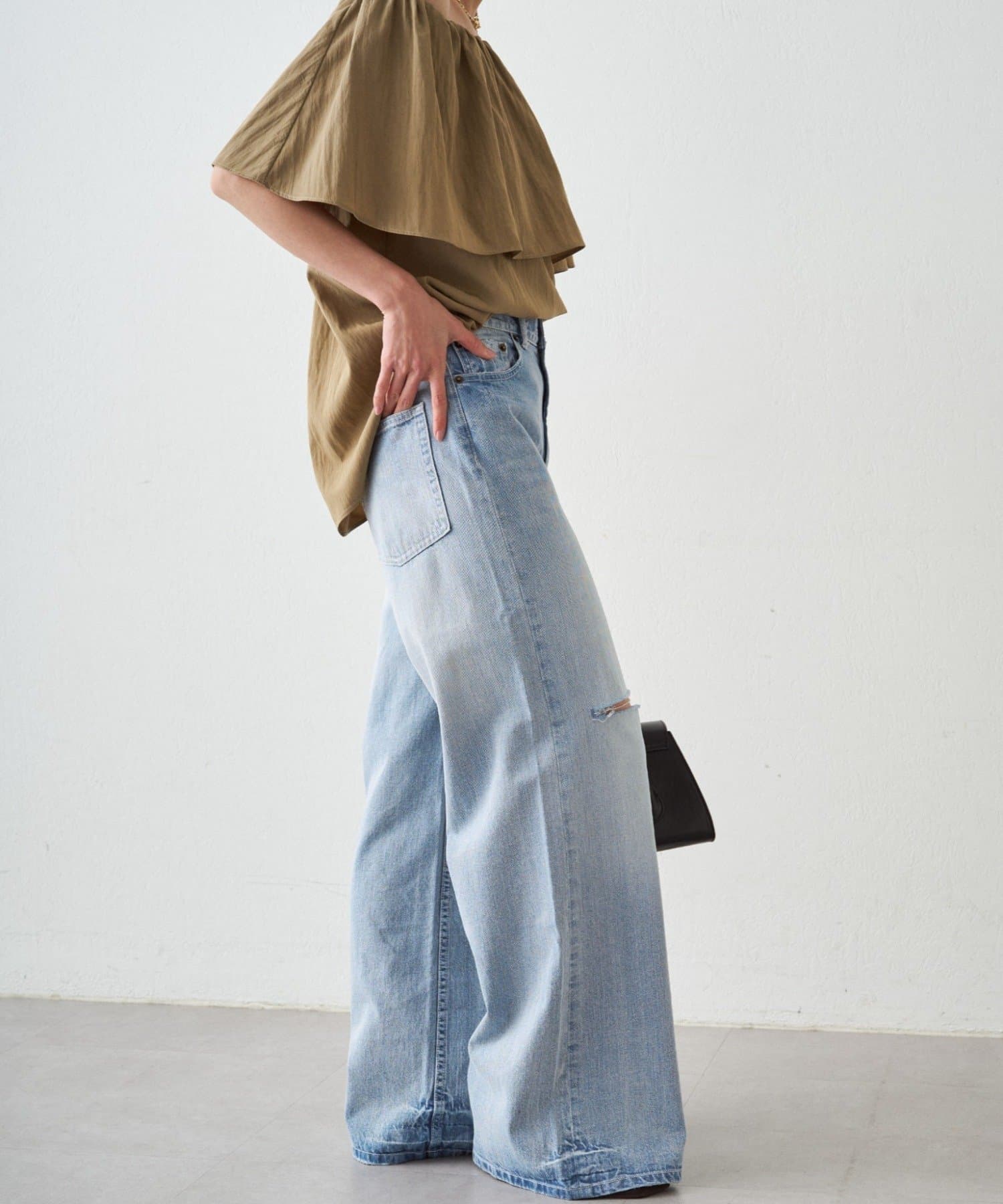 ダメージ加工から覗く肌見せが、カジュアルな中に女性らしい抜け感を演出します。