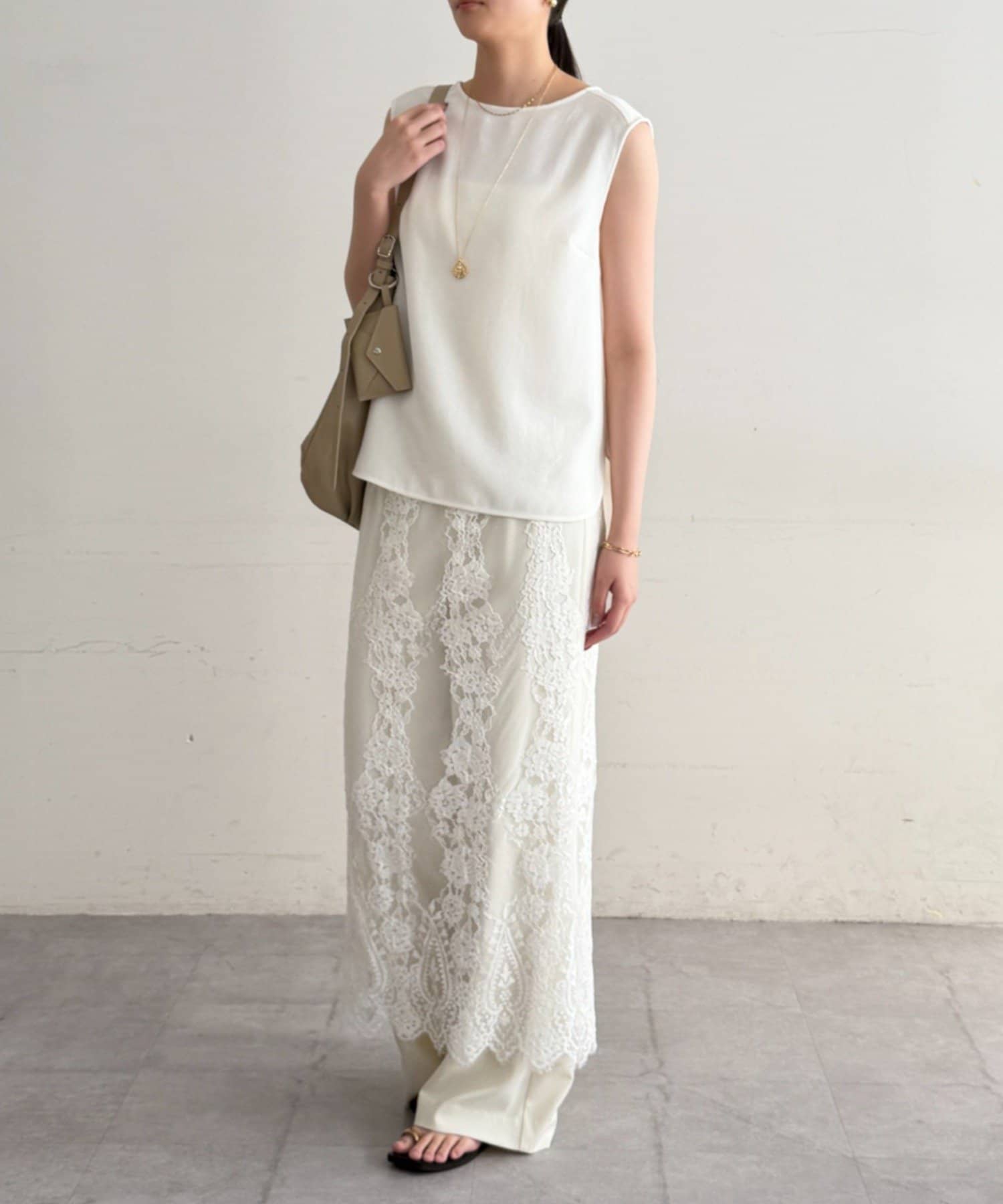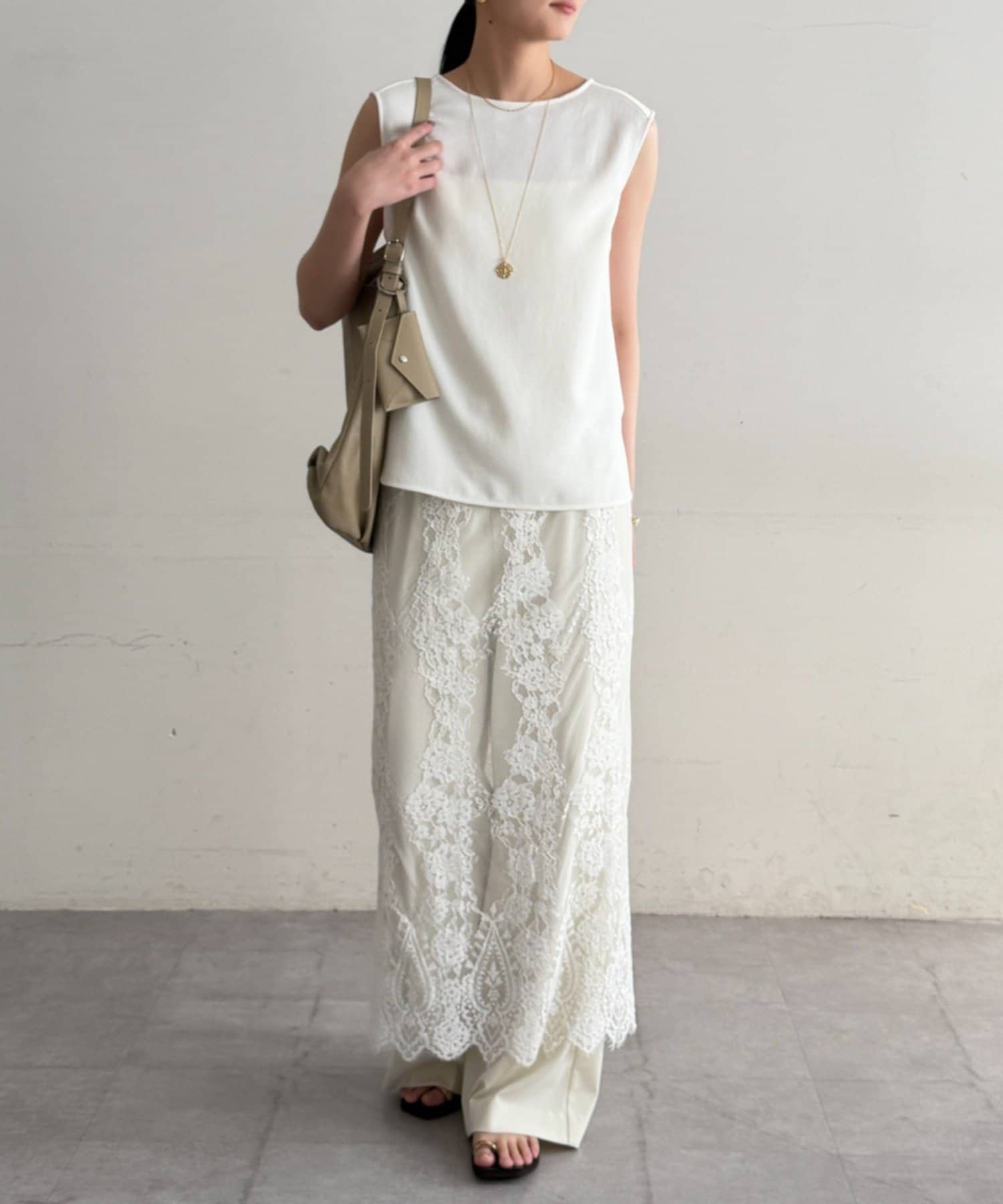 上品な大人のこなれ感。ジョーゼットノースリーブブラウス