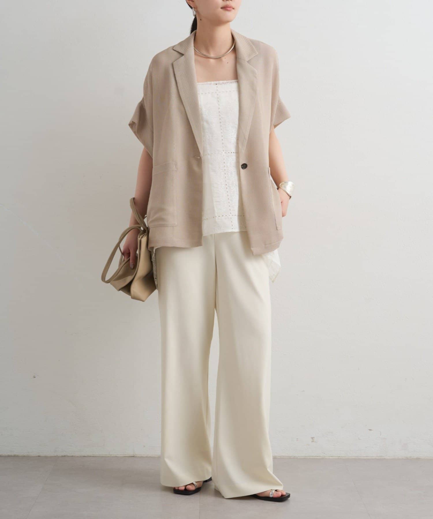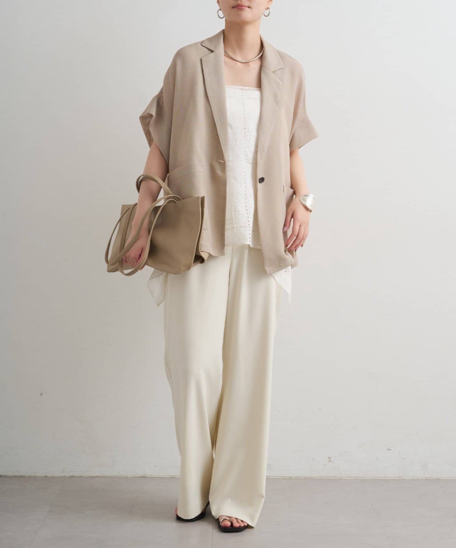 Tシャツやタンクトップに重ねれば大人カジュアルに、デニムやワイドパンツと合わせてスニーカーやサンダルでラフに。