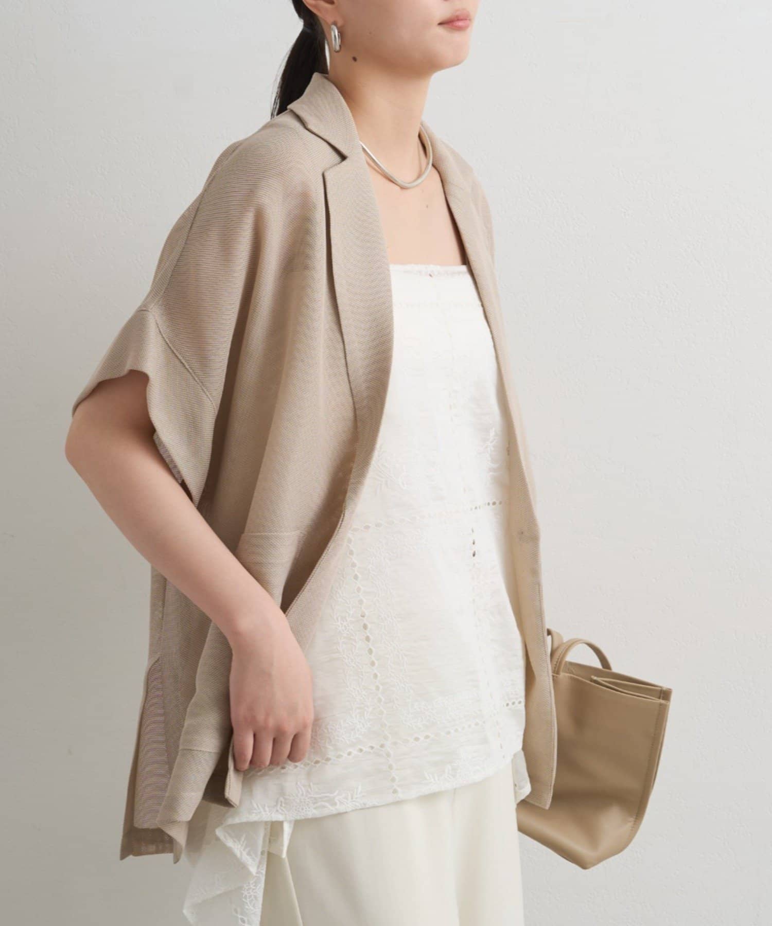 ブラウスやシャツに重ねればオフィスにもぴったりで、タイトスカートやパンツ、パンプスやアクセサリーで上品に仕上がります。