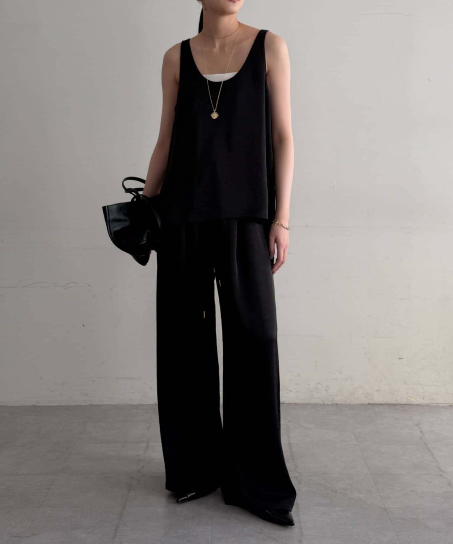 TOP > LOUNGEDRESS > レディース > トップス > シャツ/ブラウス(ボタン) > 2WAYノースリサテンチュニック