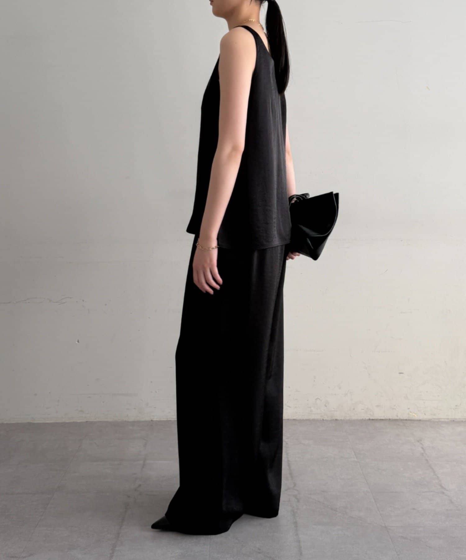 マットな光沢のサテン生地が、上品でリュクスな雰囲気を演出するチュニック。