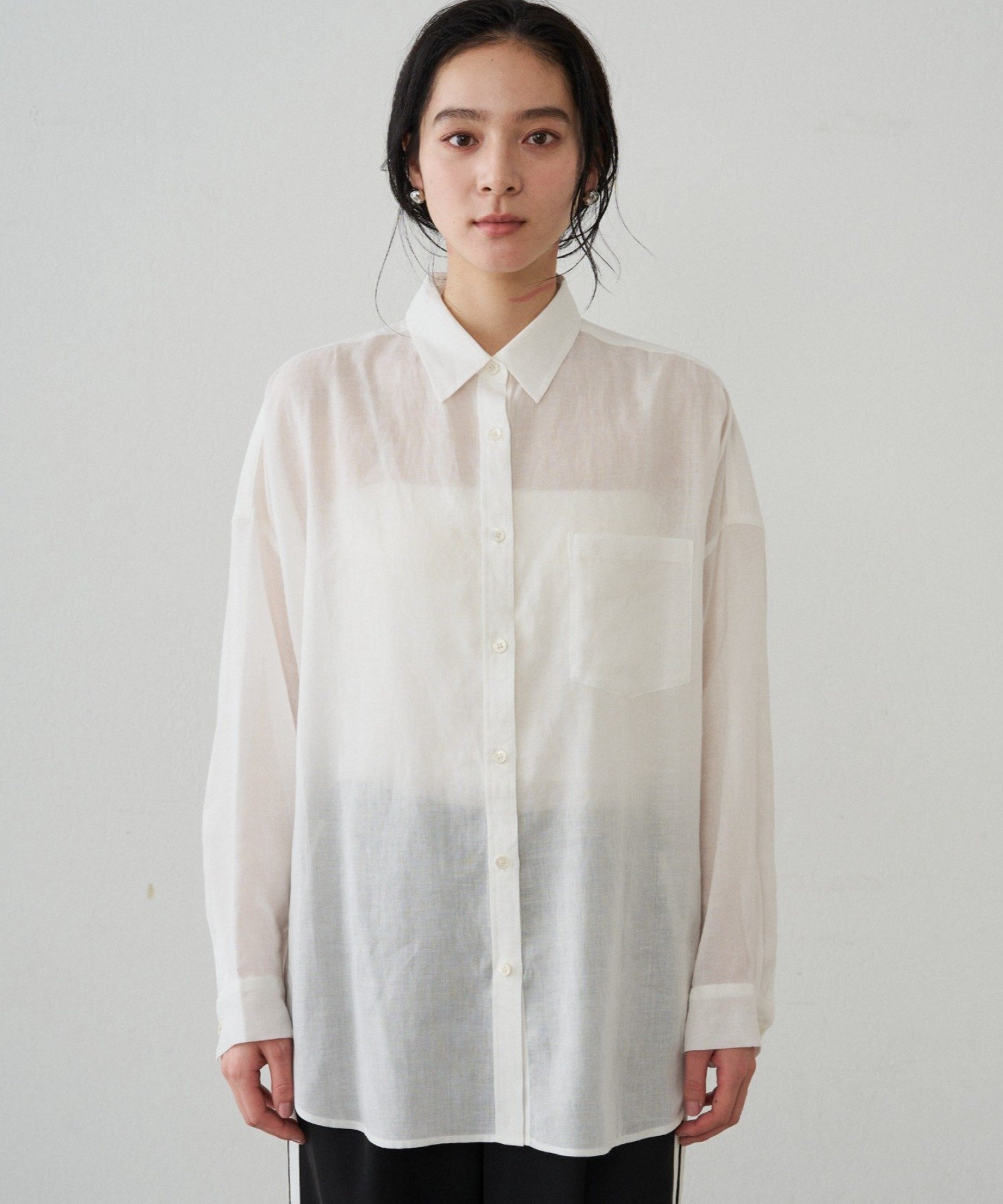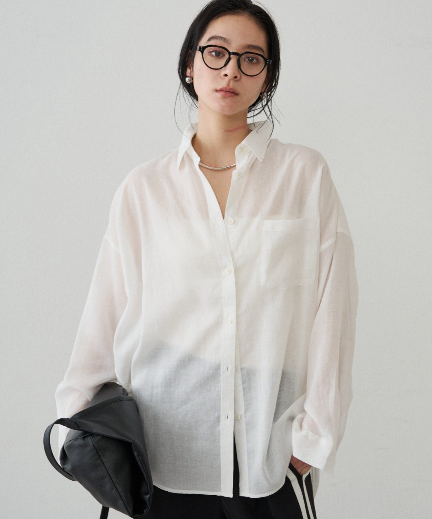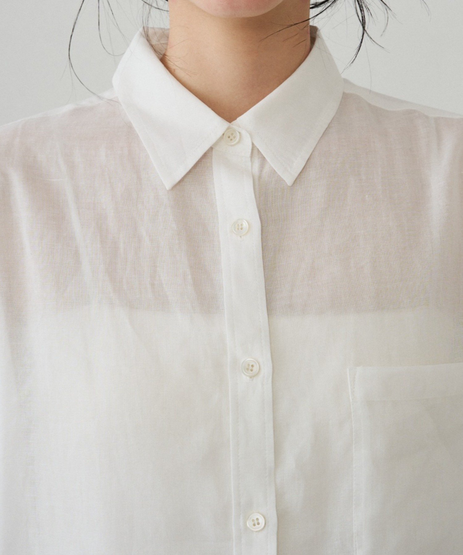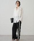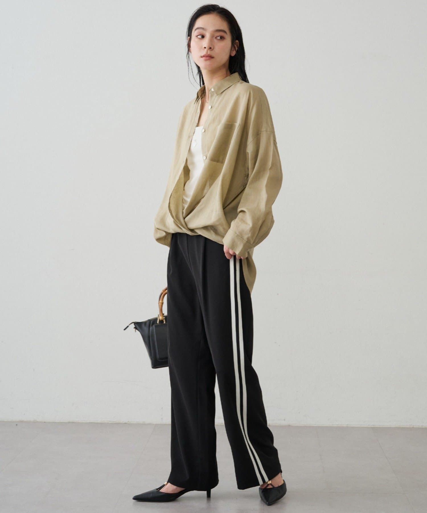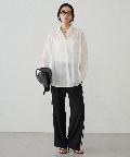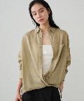 ボタンを留めてベーシックなシャツとして着るのはもちろん、ボタンを外してカシュクール風にアレンジすれば、ぐっと女性らしい印象に。