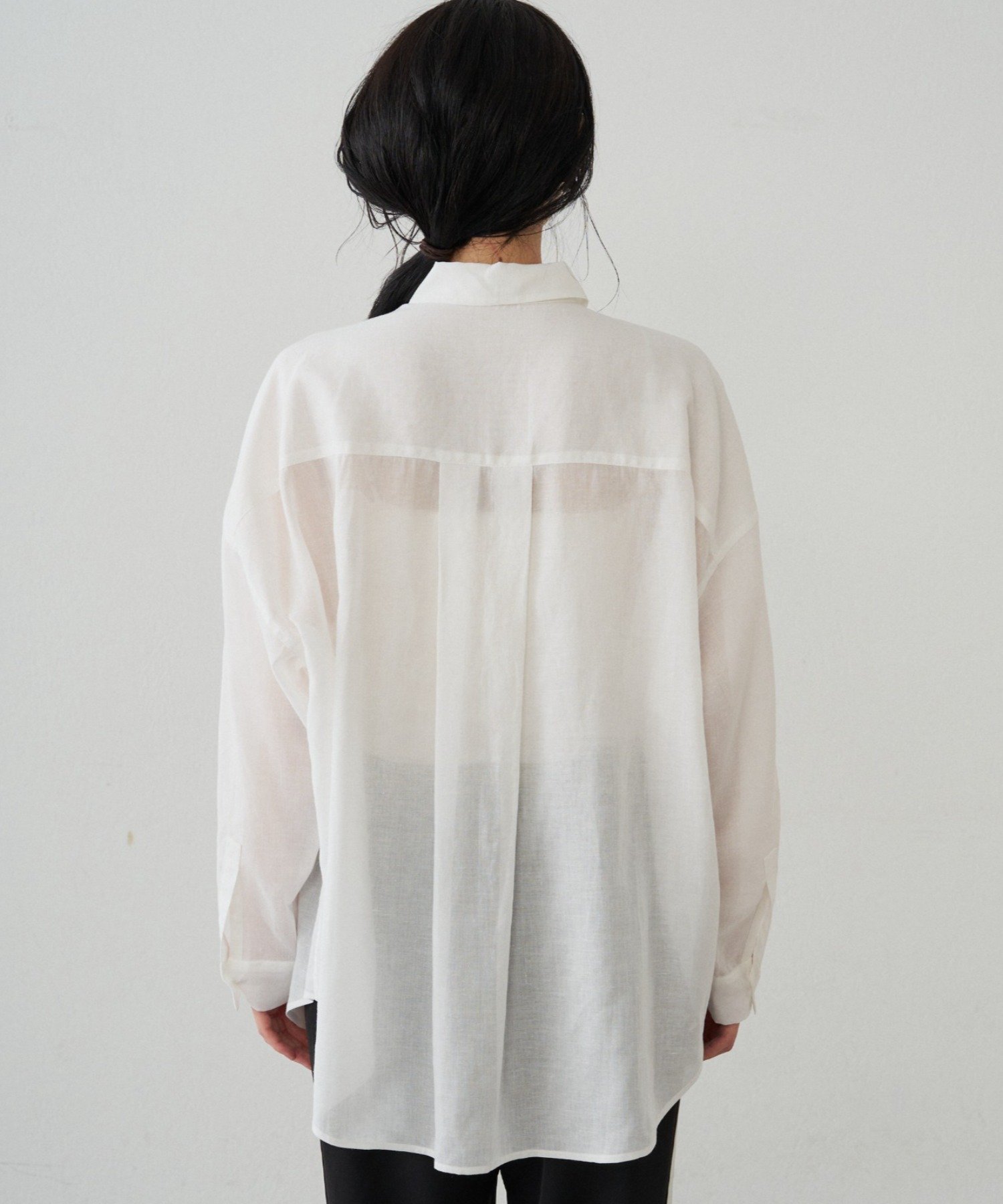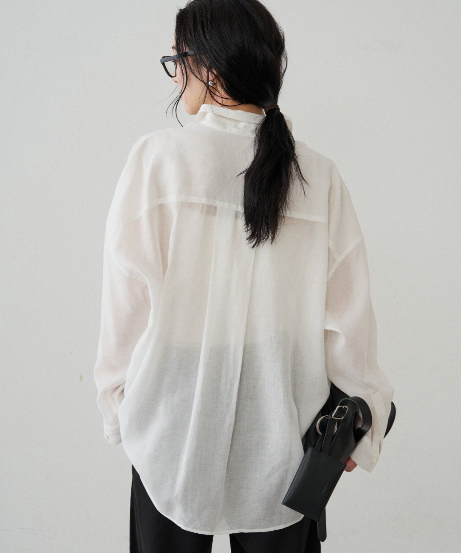 リネン素材のシンプルなシャツ。