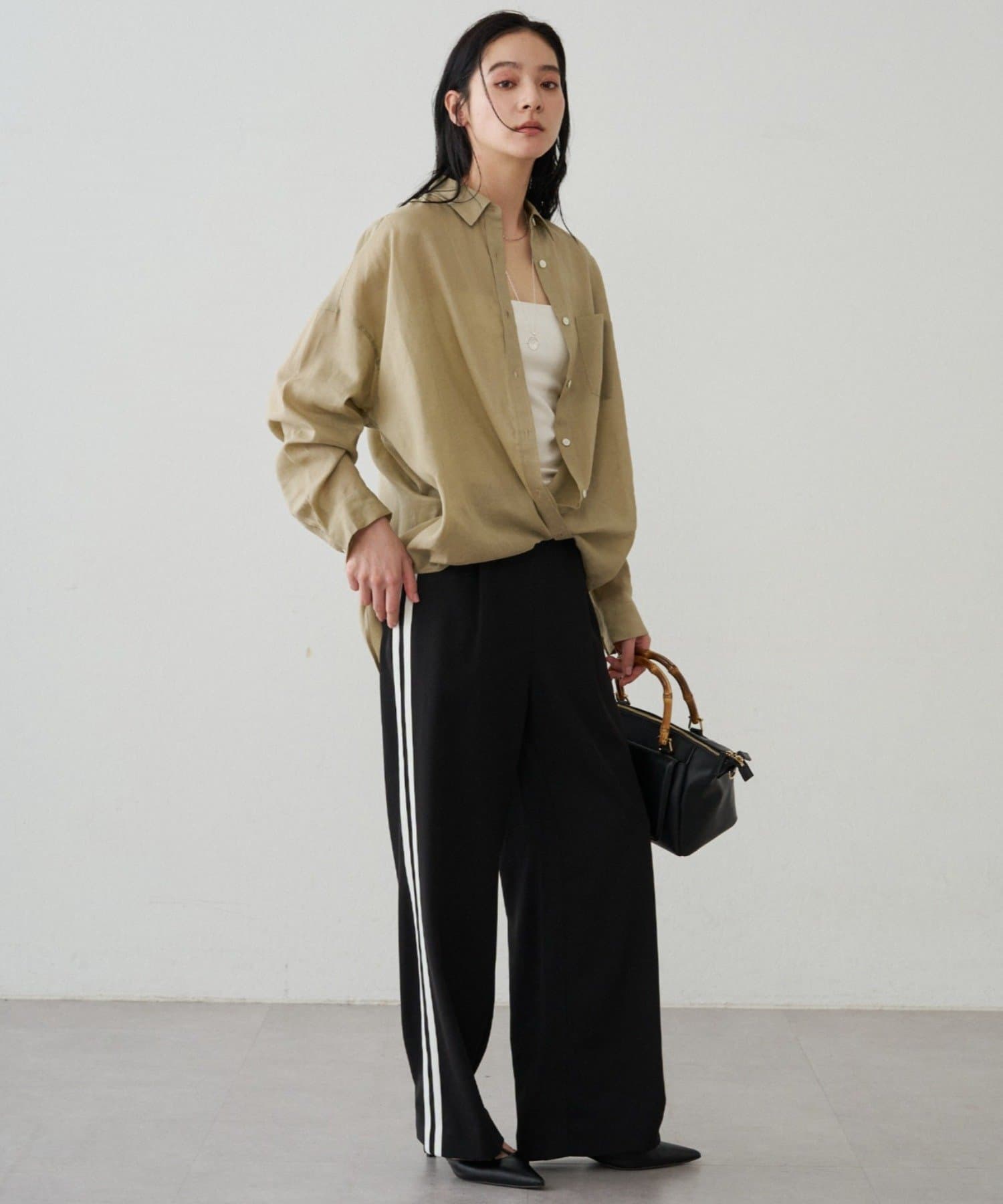 Tシャツやタンクトップにさらっと羽織れば、こなれ感のある大人のカジュアルスタイルが完成します。