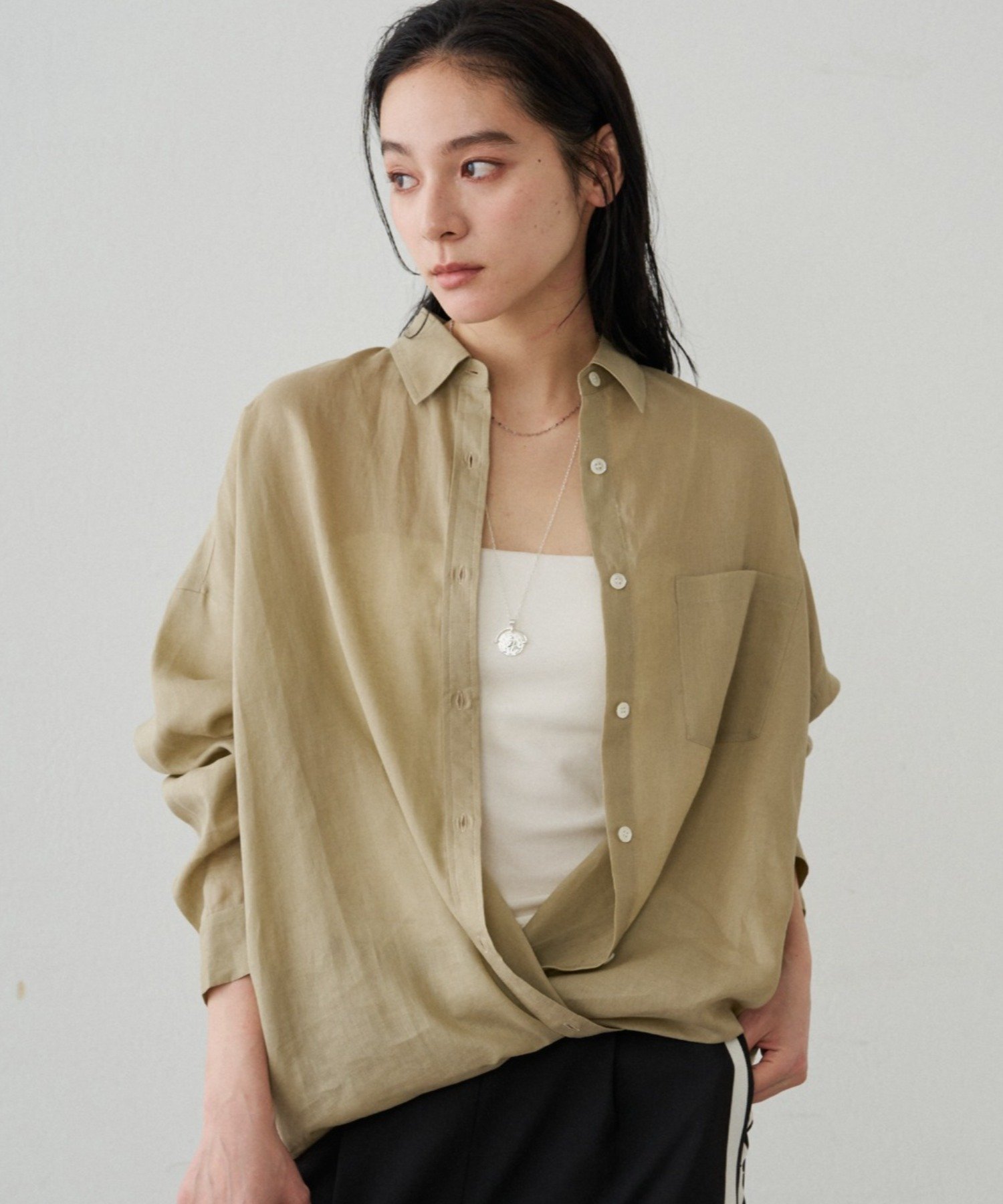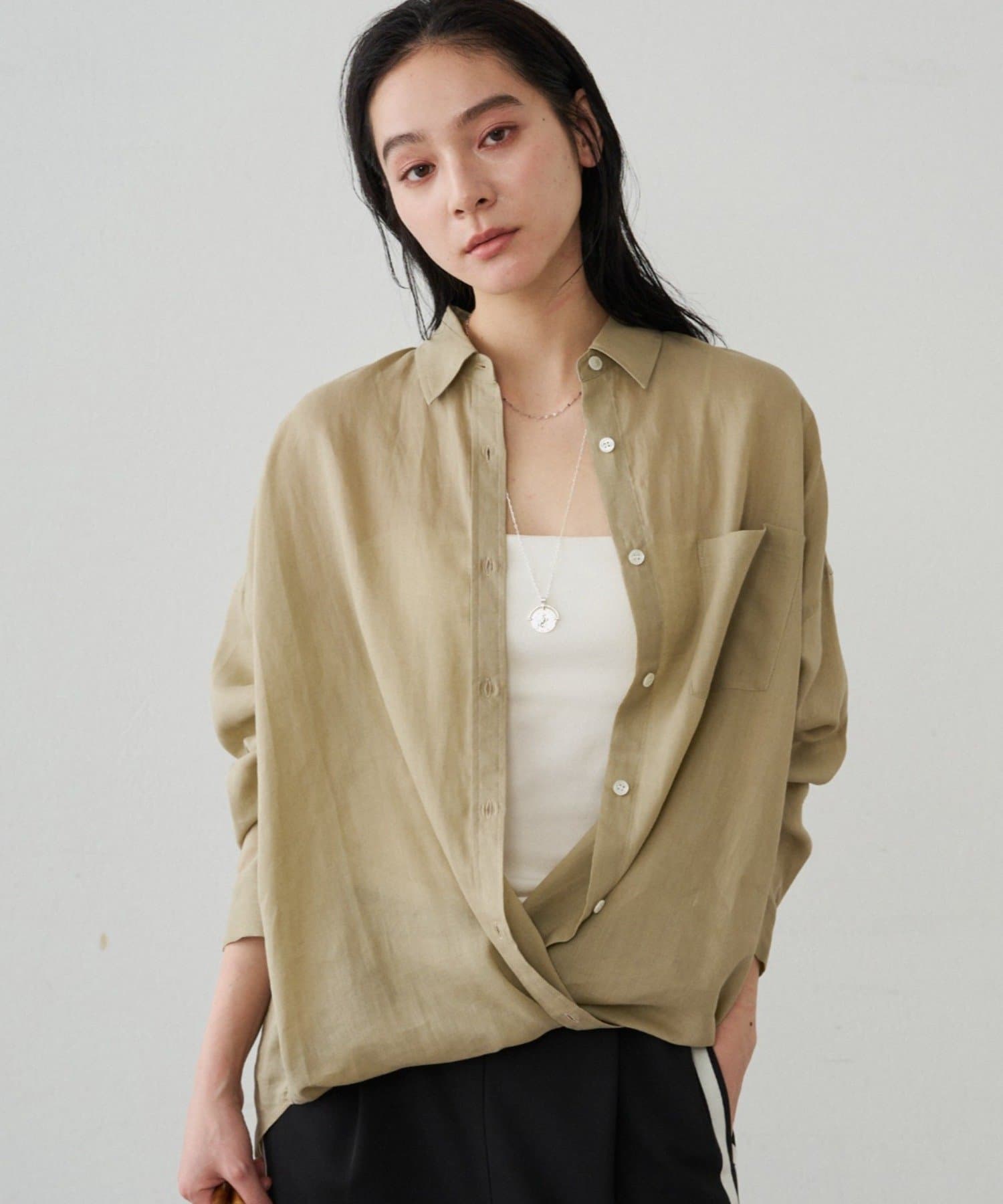 一枚で着こなし広がる。カシュクール2wayリネンシャツ
