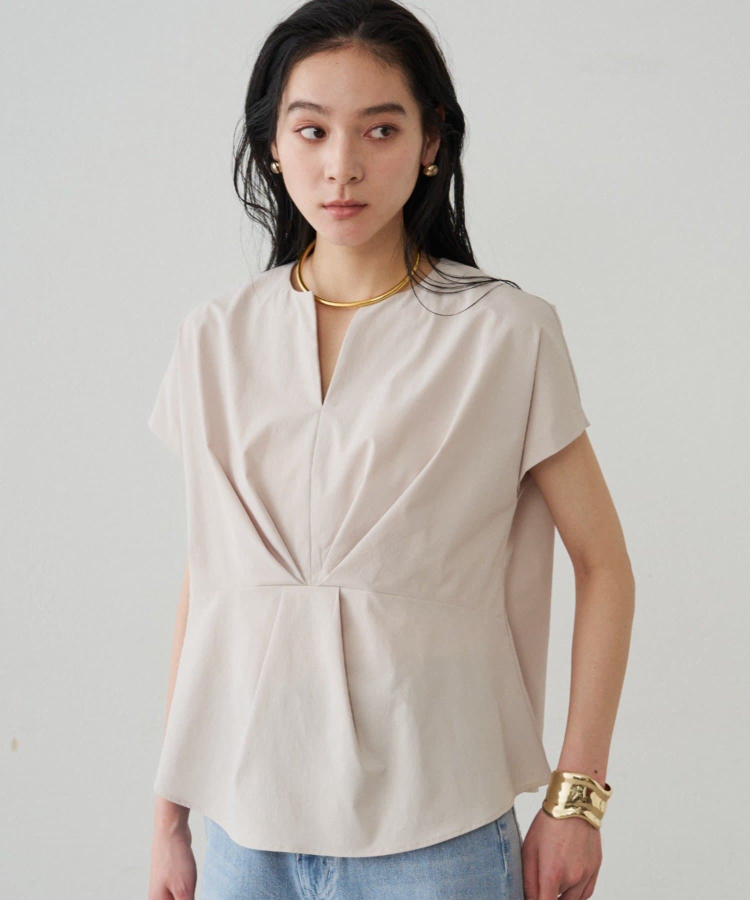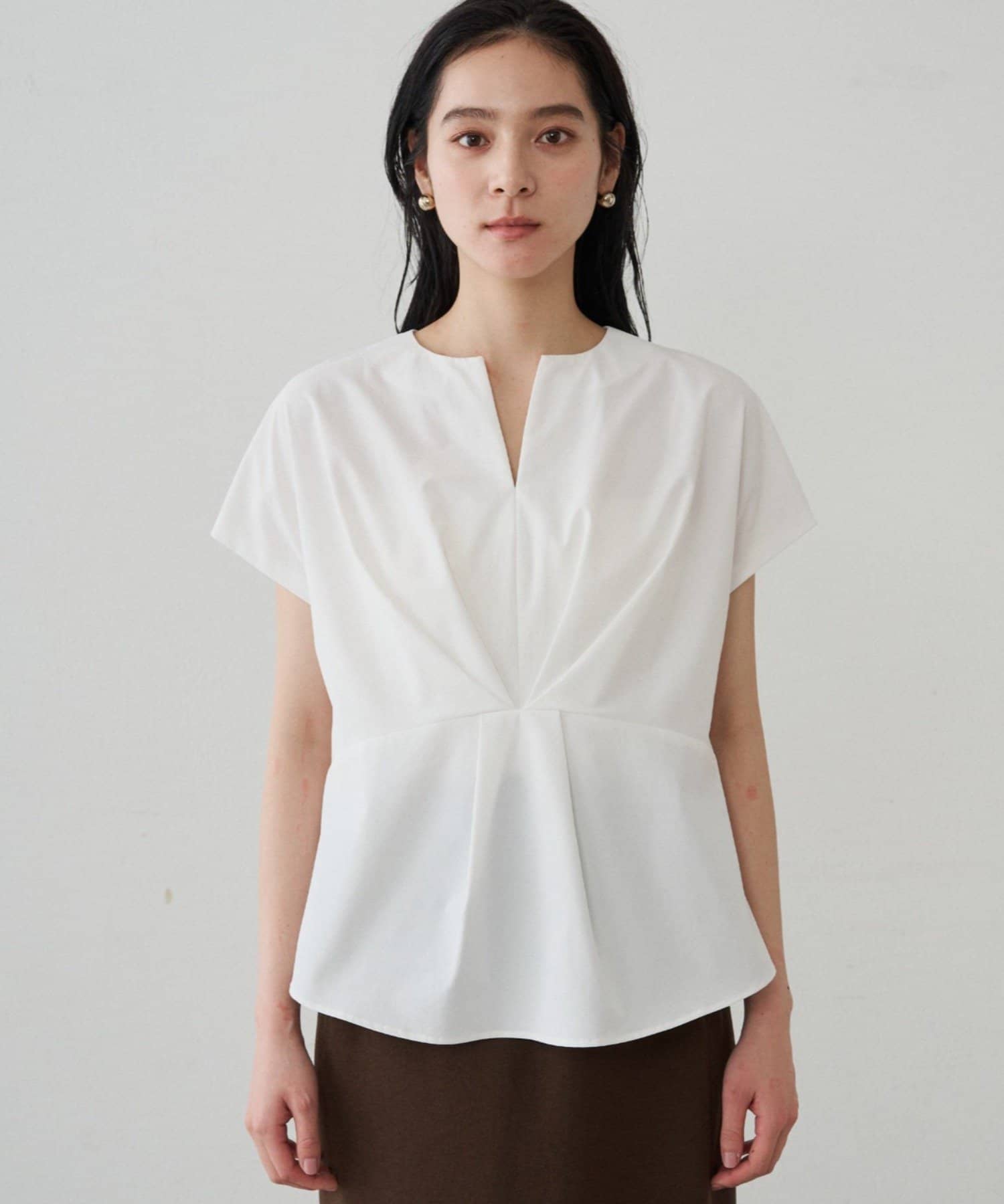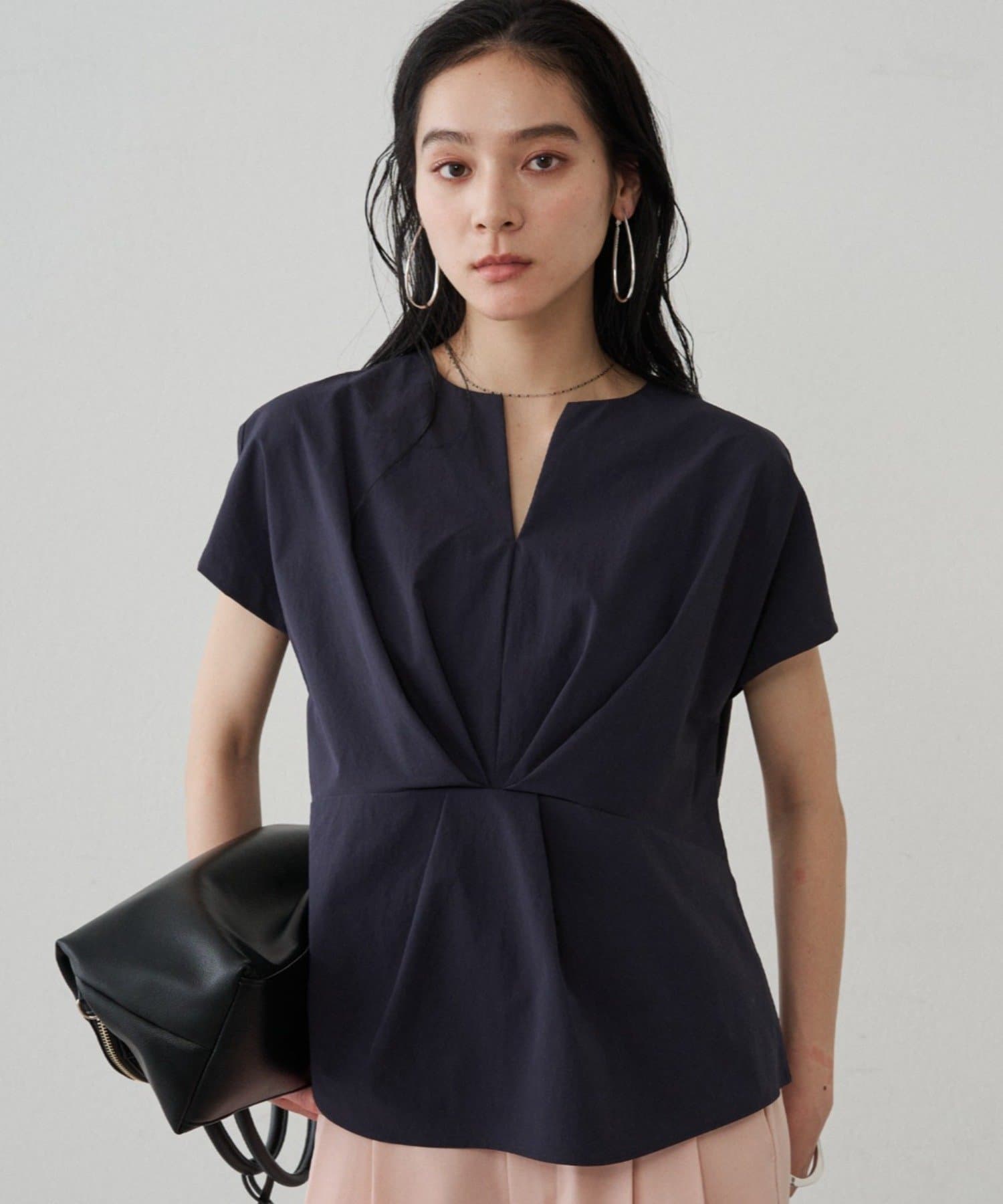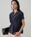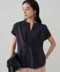 フロントに入ったタックデザインが印象的なデザインブラウス。