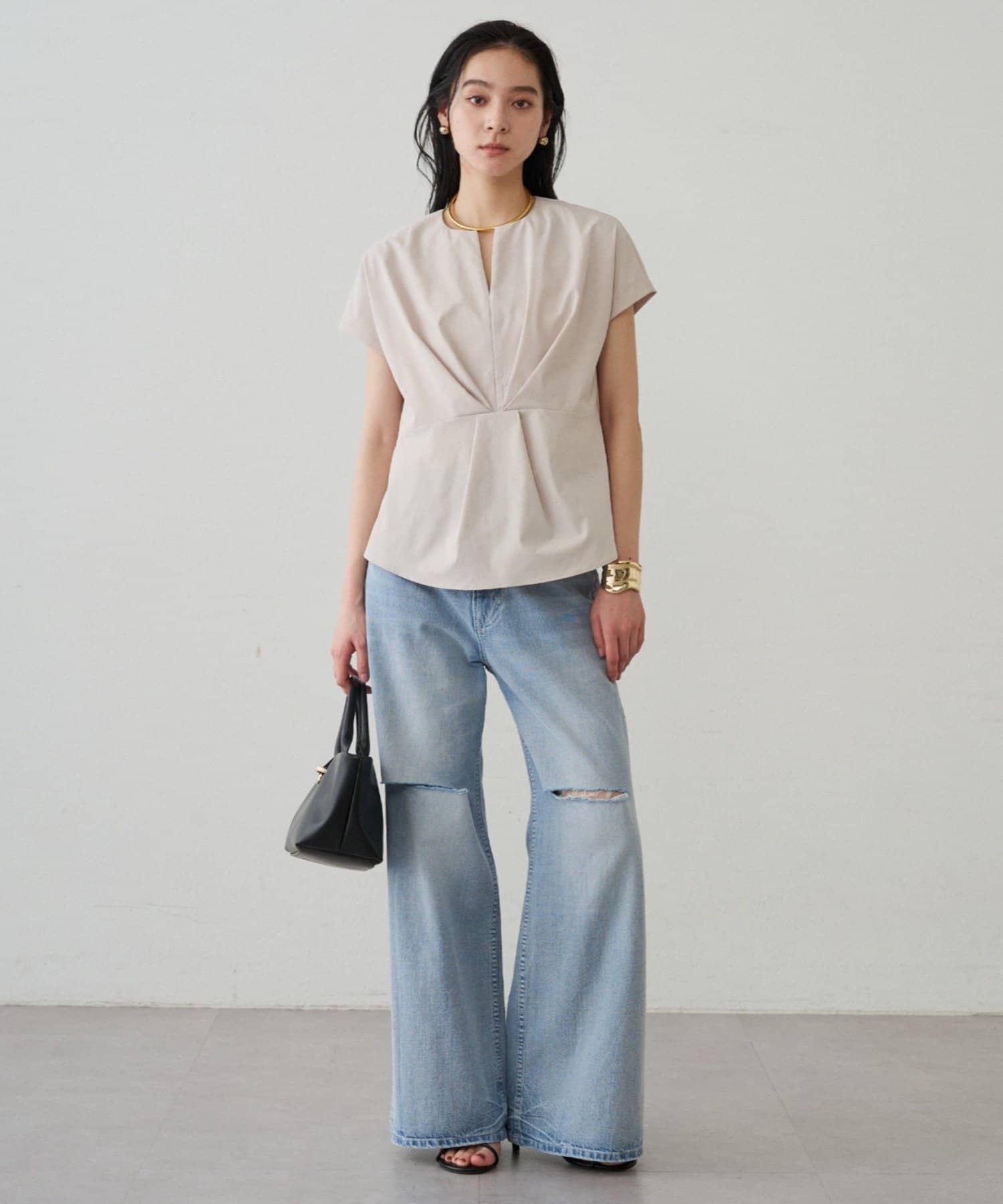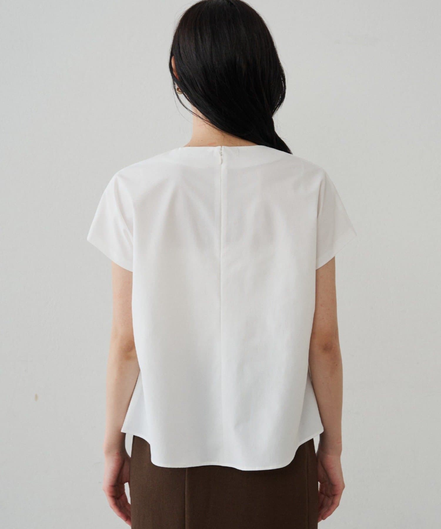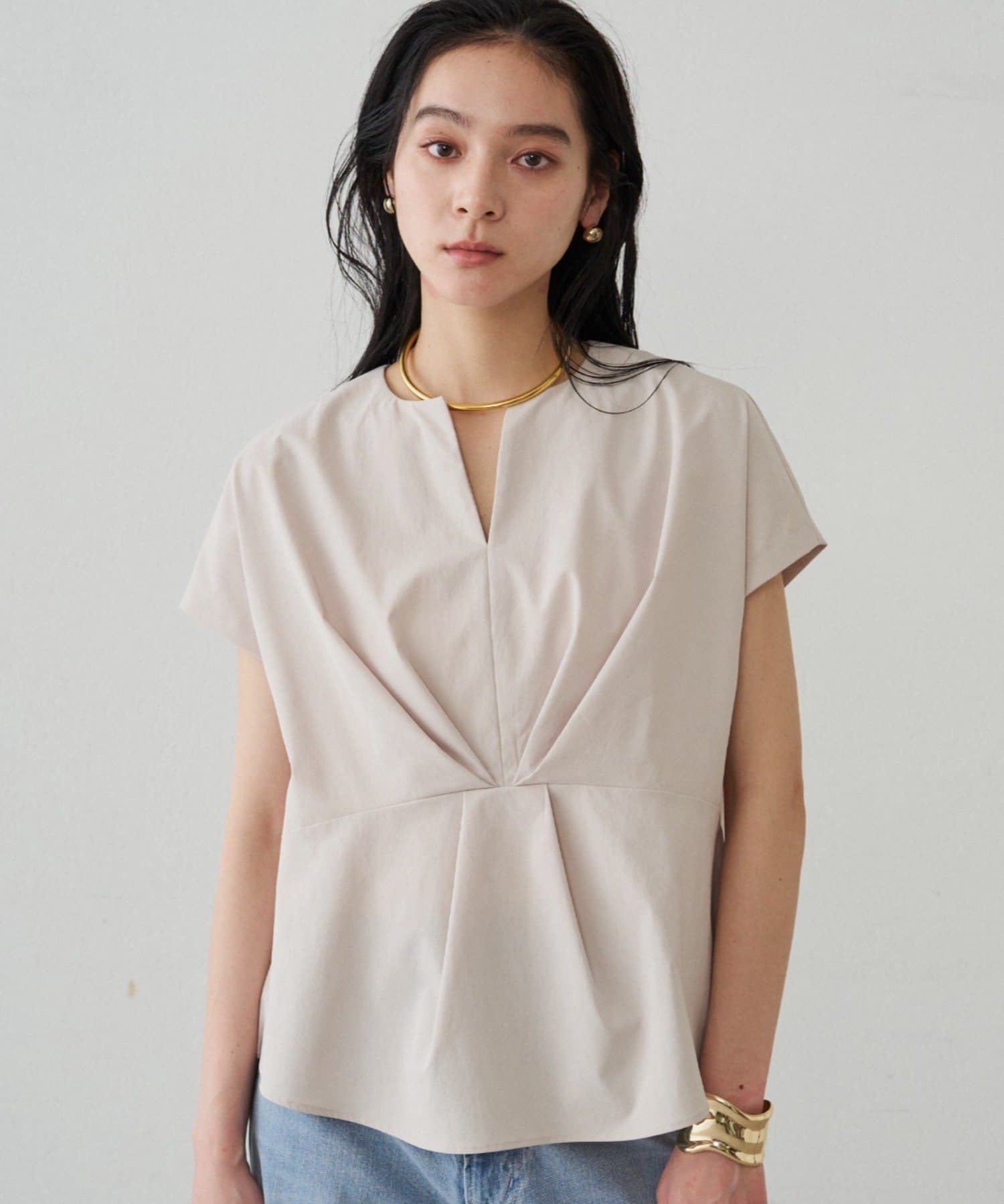 フロントに入ったタックデザインが印象的なデザインブラウス。