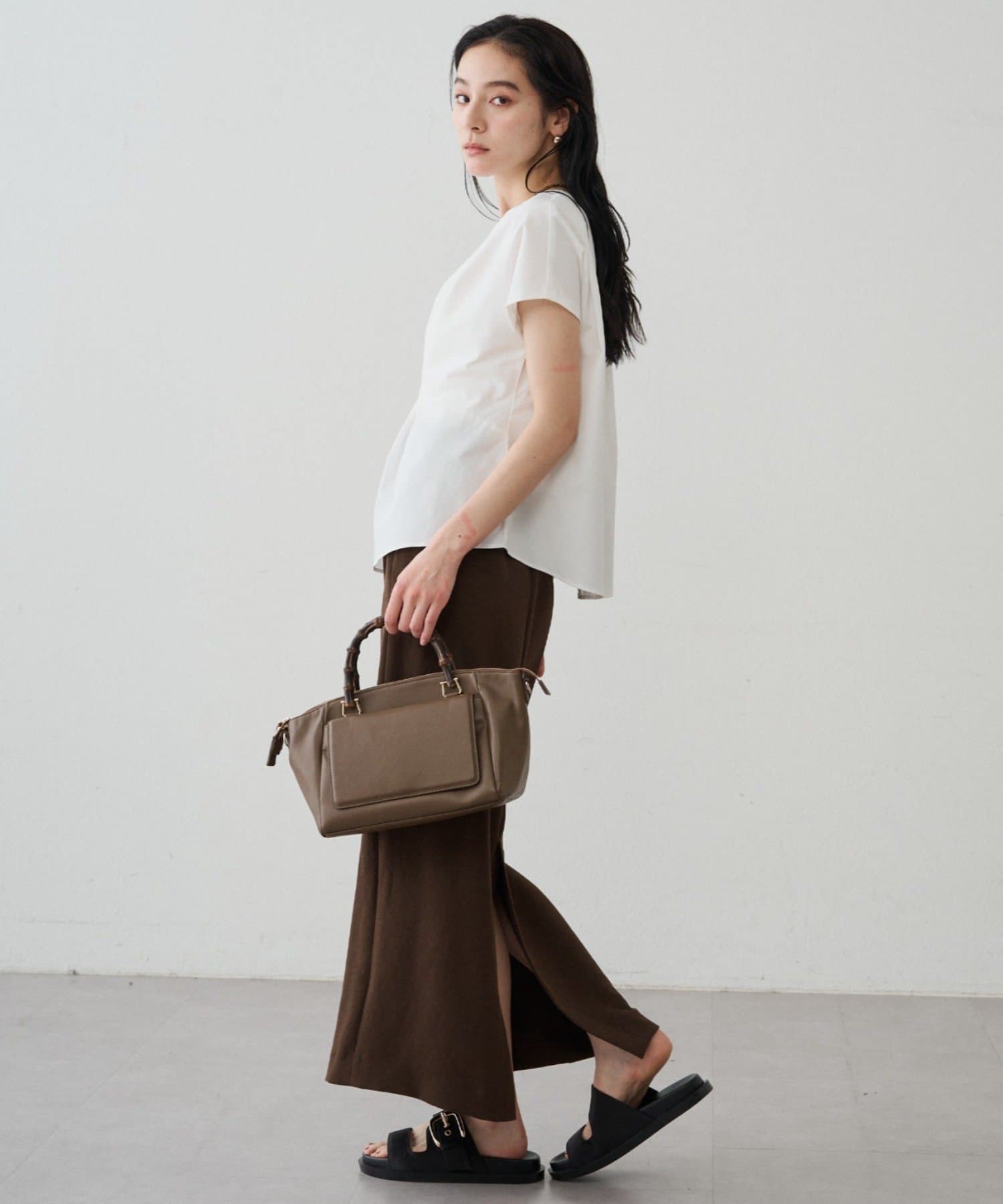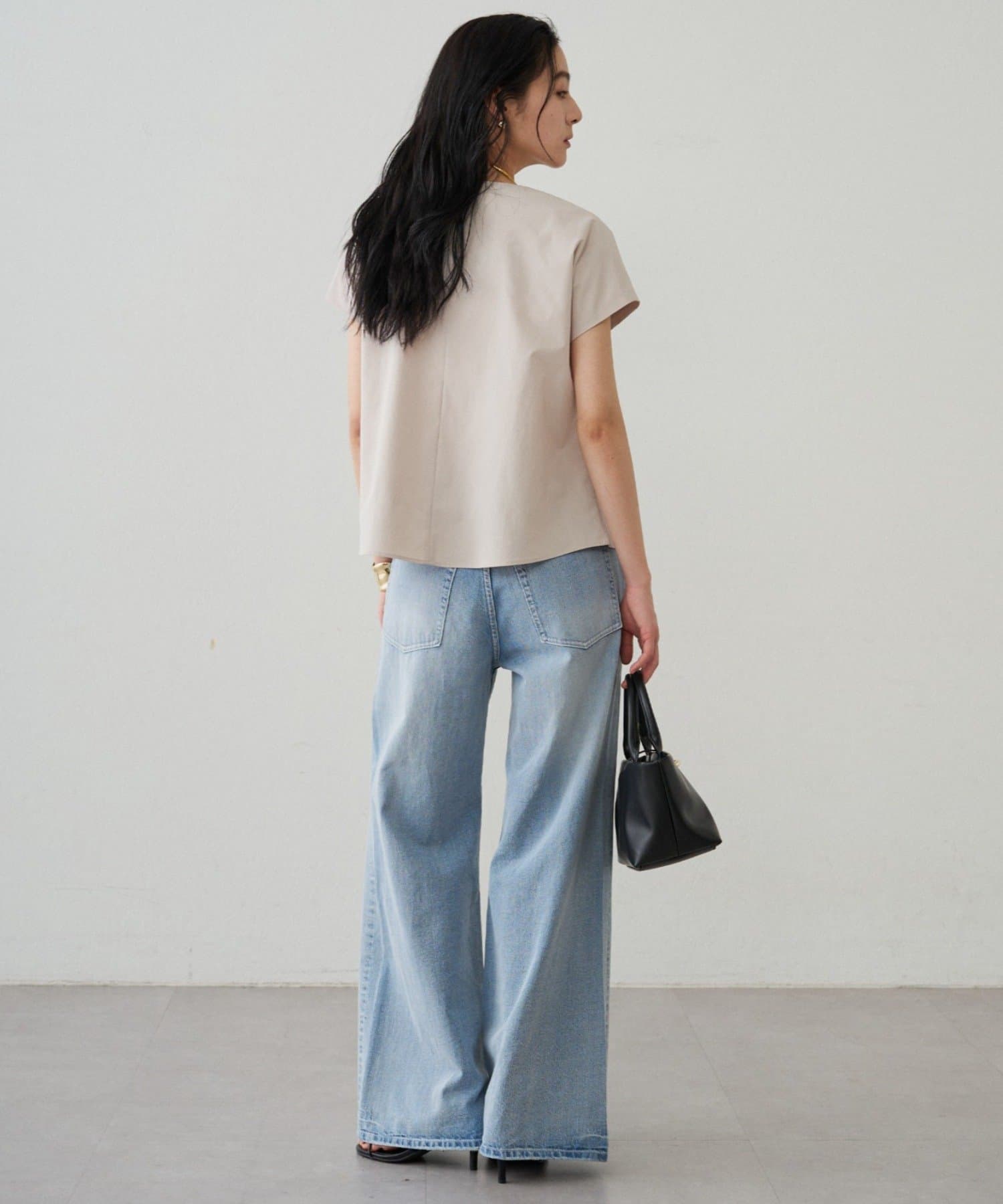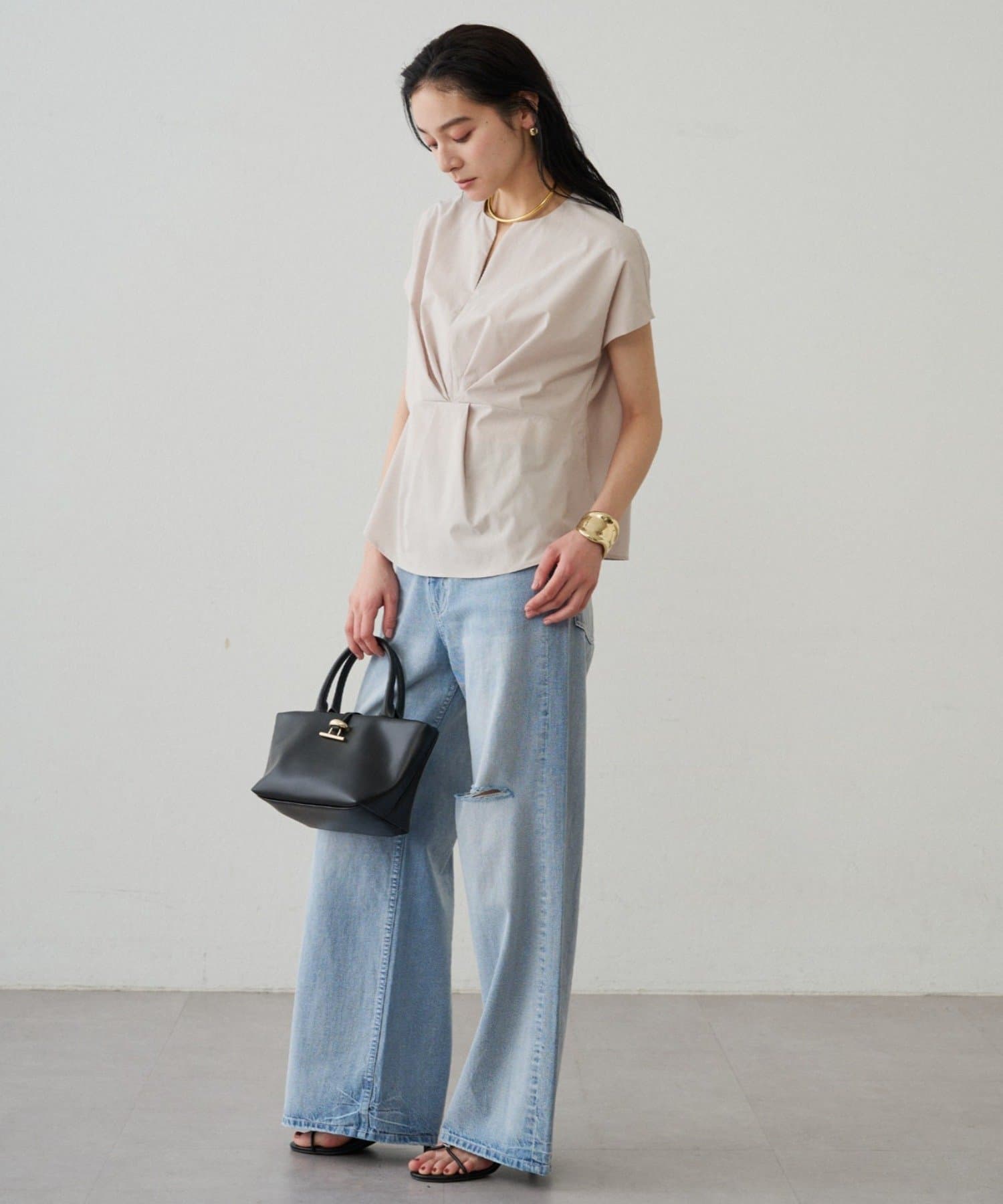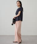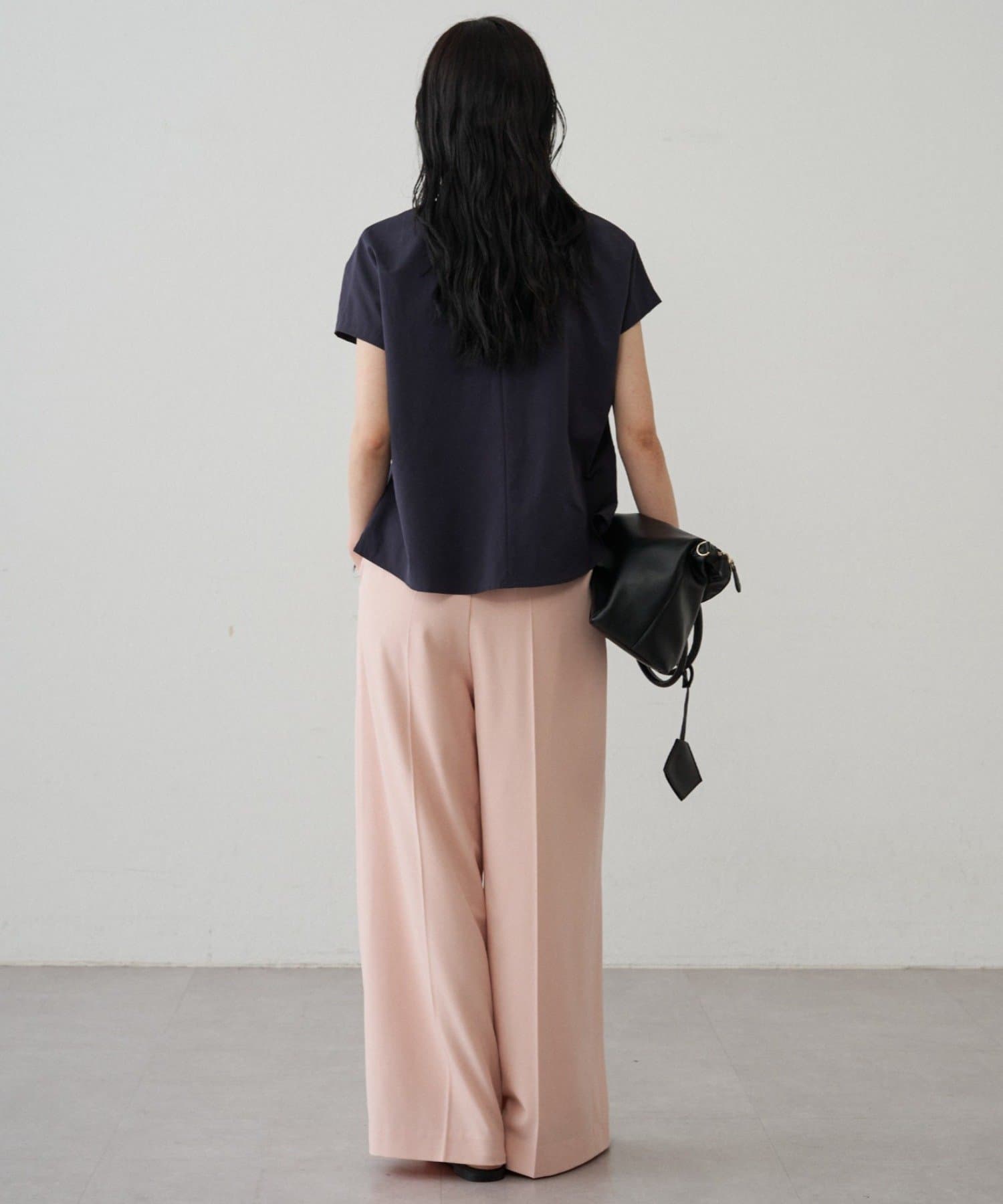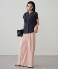 ワイドパンツと合わせて、トレンド感のある着こなしに。トップスをインして、スタイルアップ効果も狙えます。
