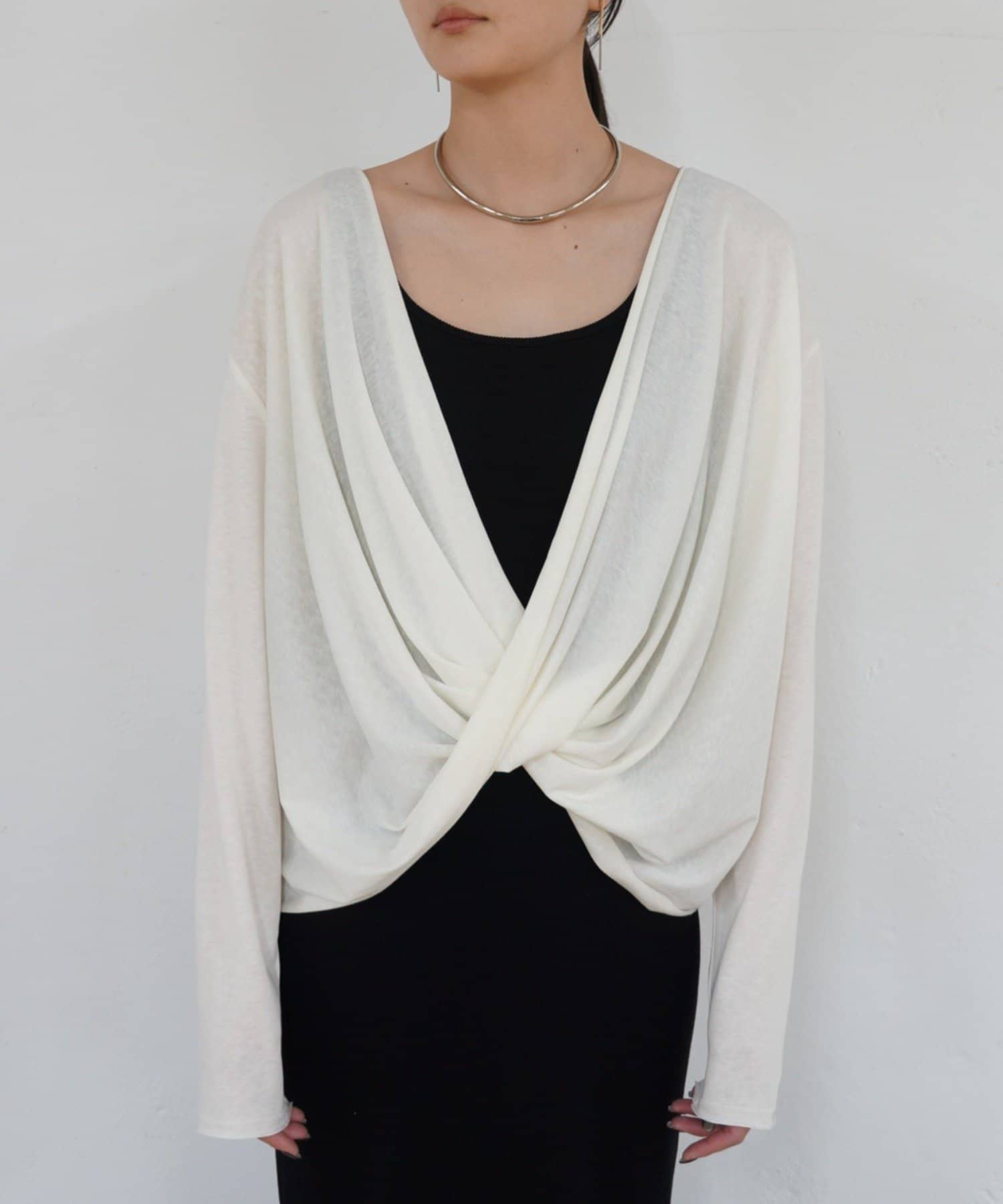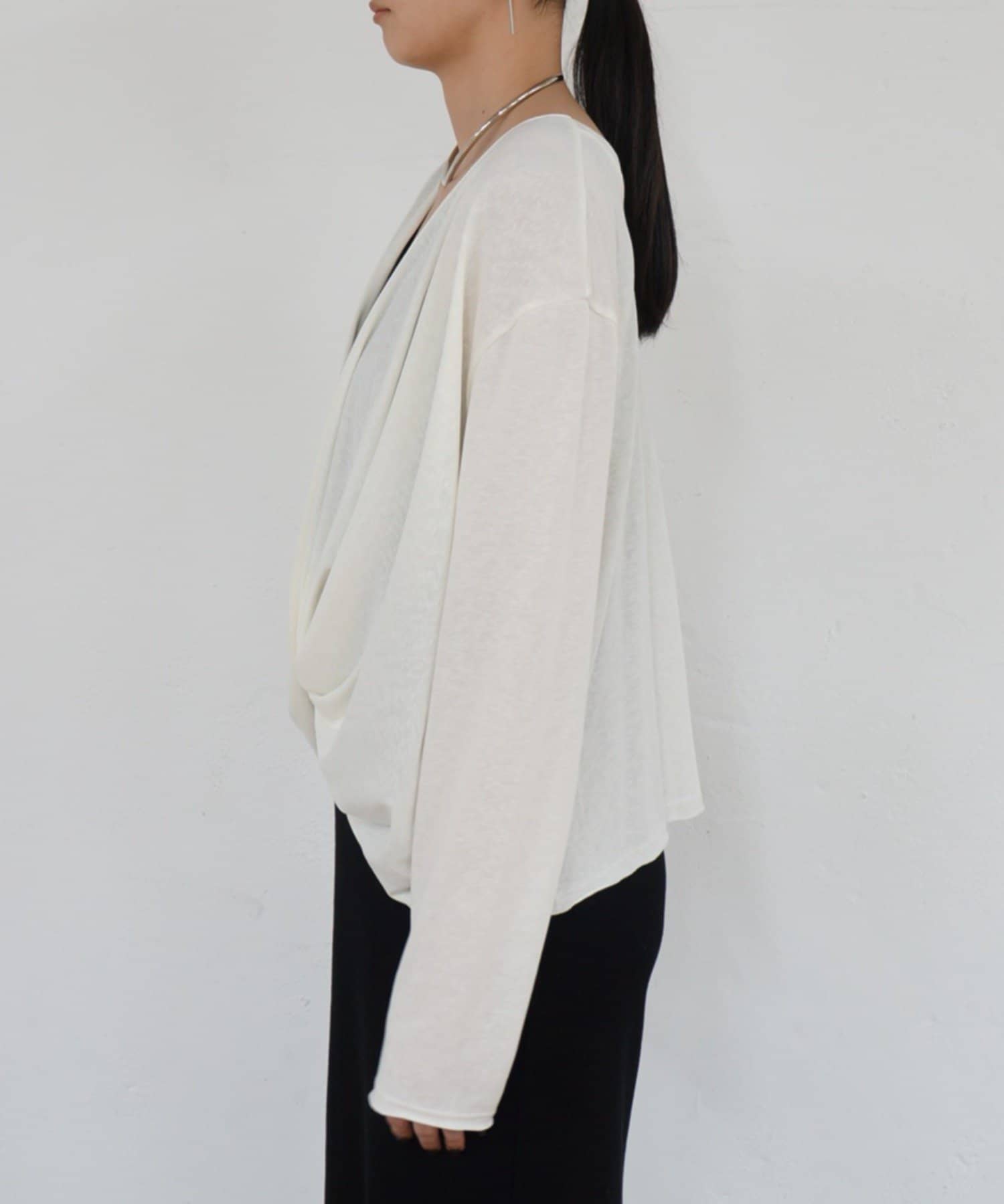 スラブ感のあるカットソー素材のカシュクールデザインのロンT