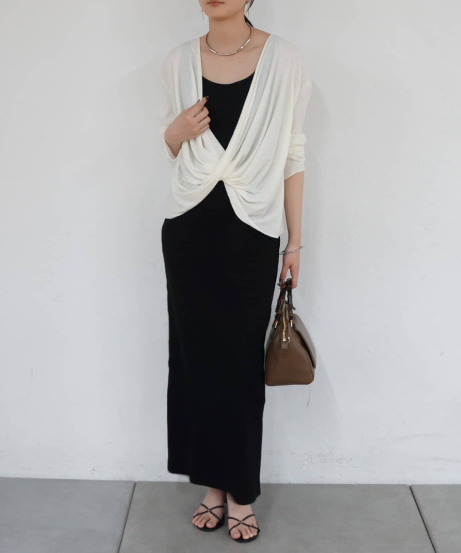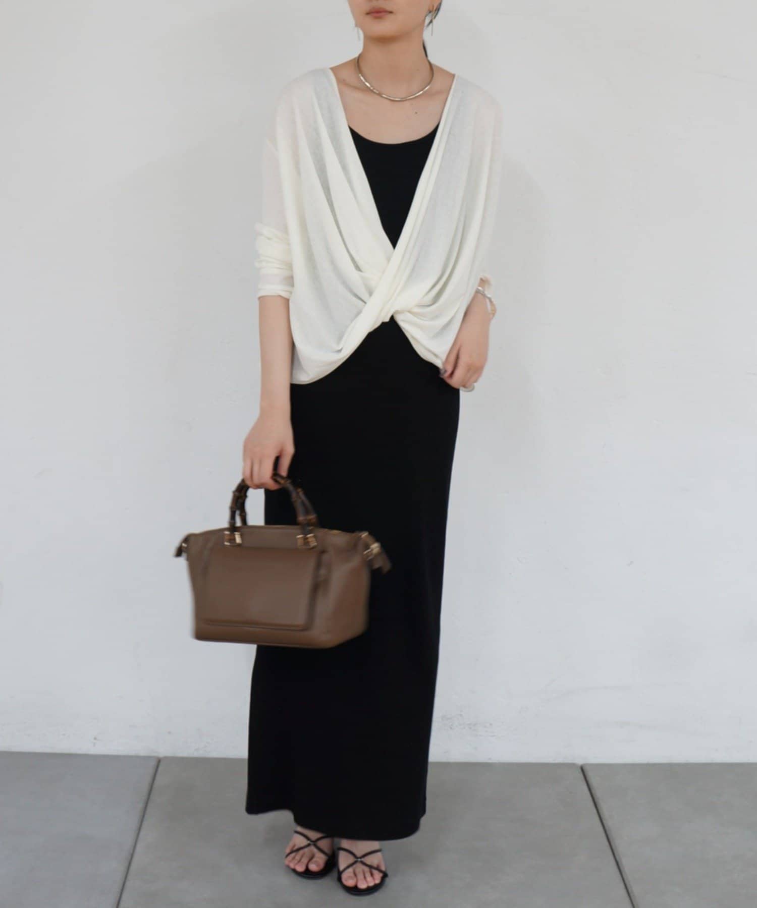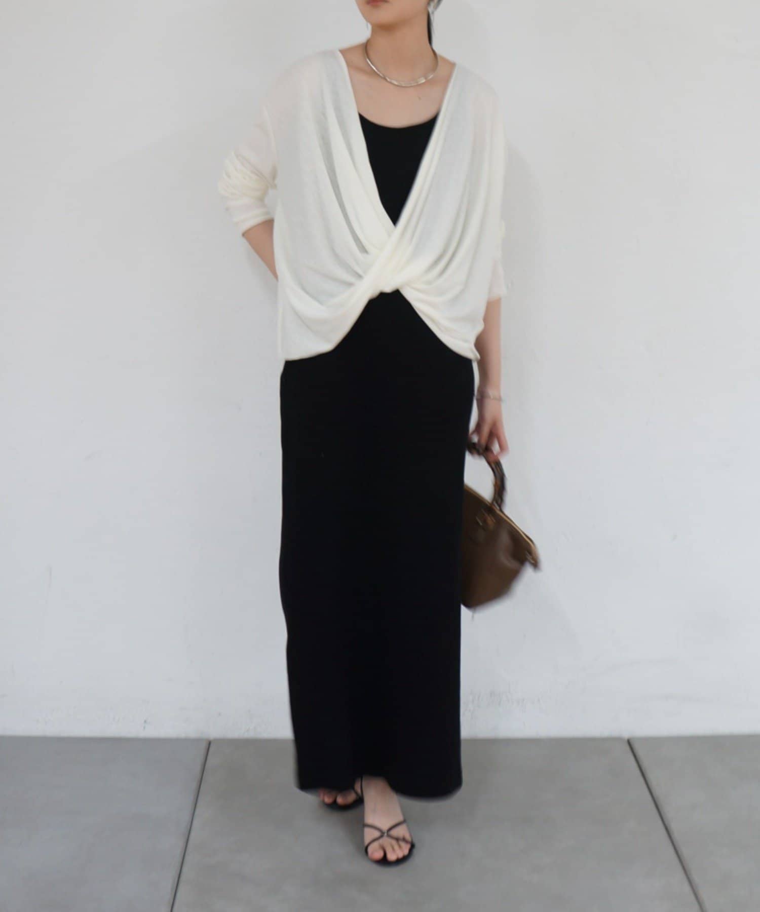 旬のレイヤードスタイルが完成する2wayカシュクールシアープルオーバー。