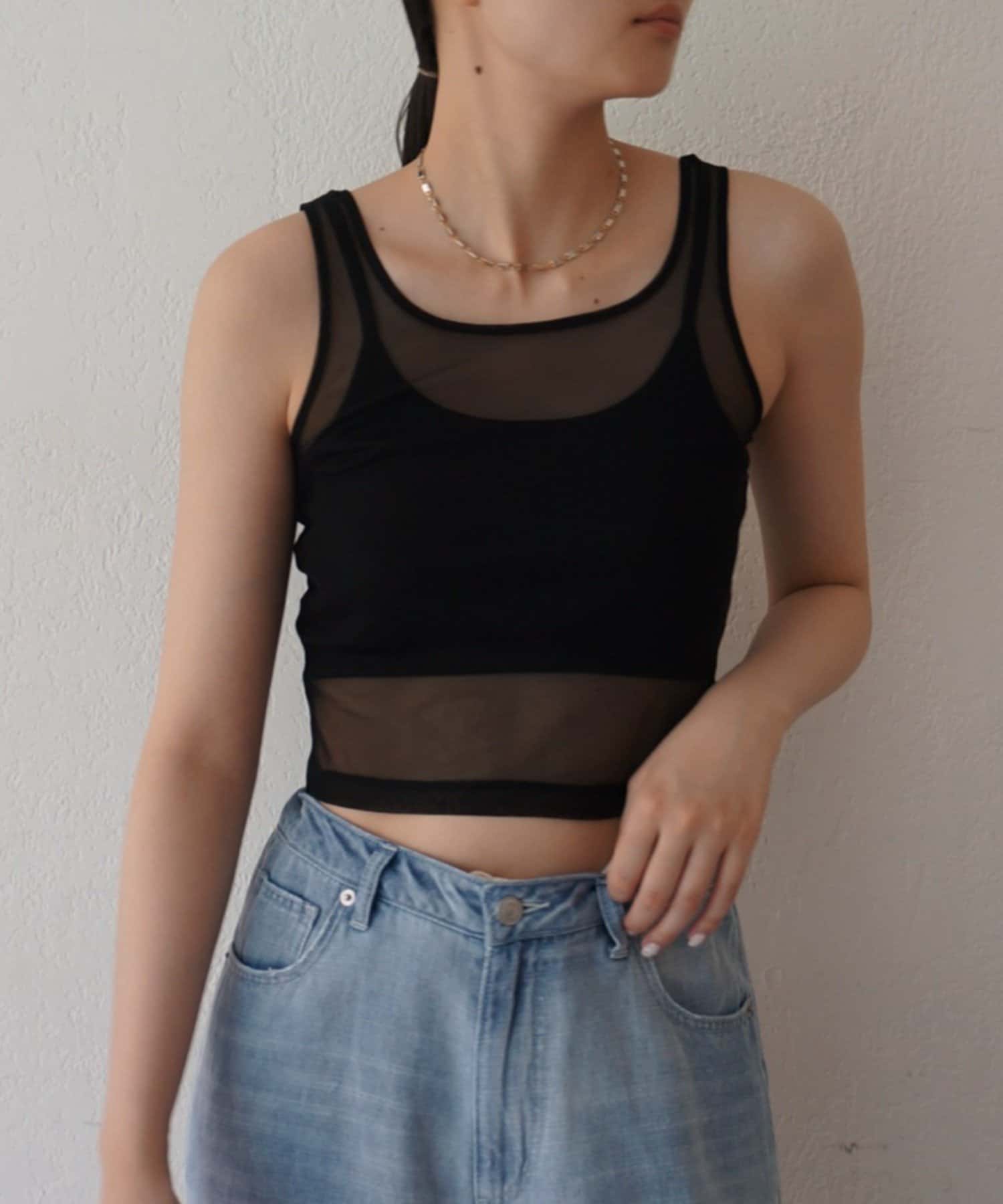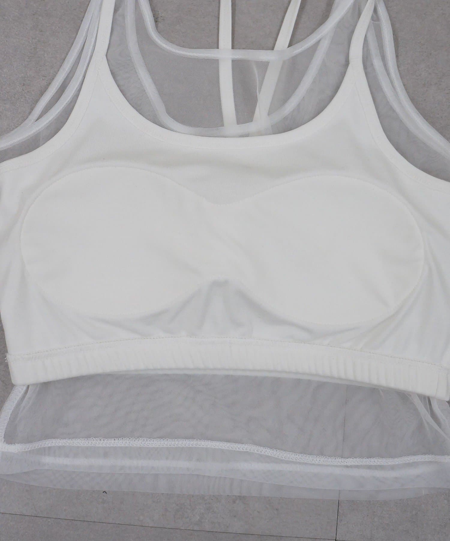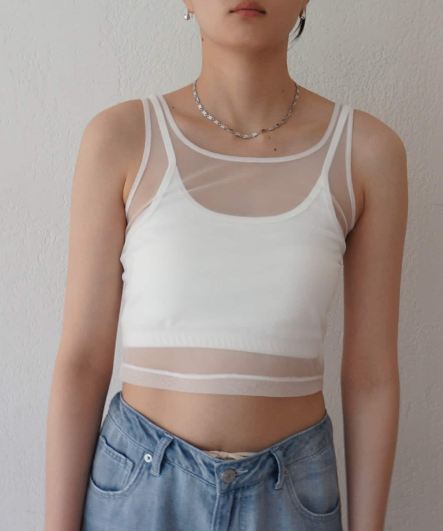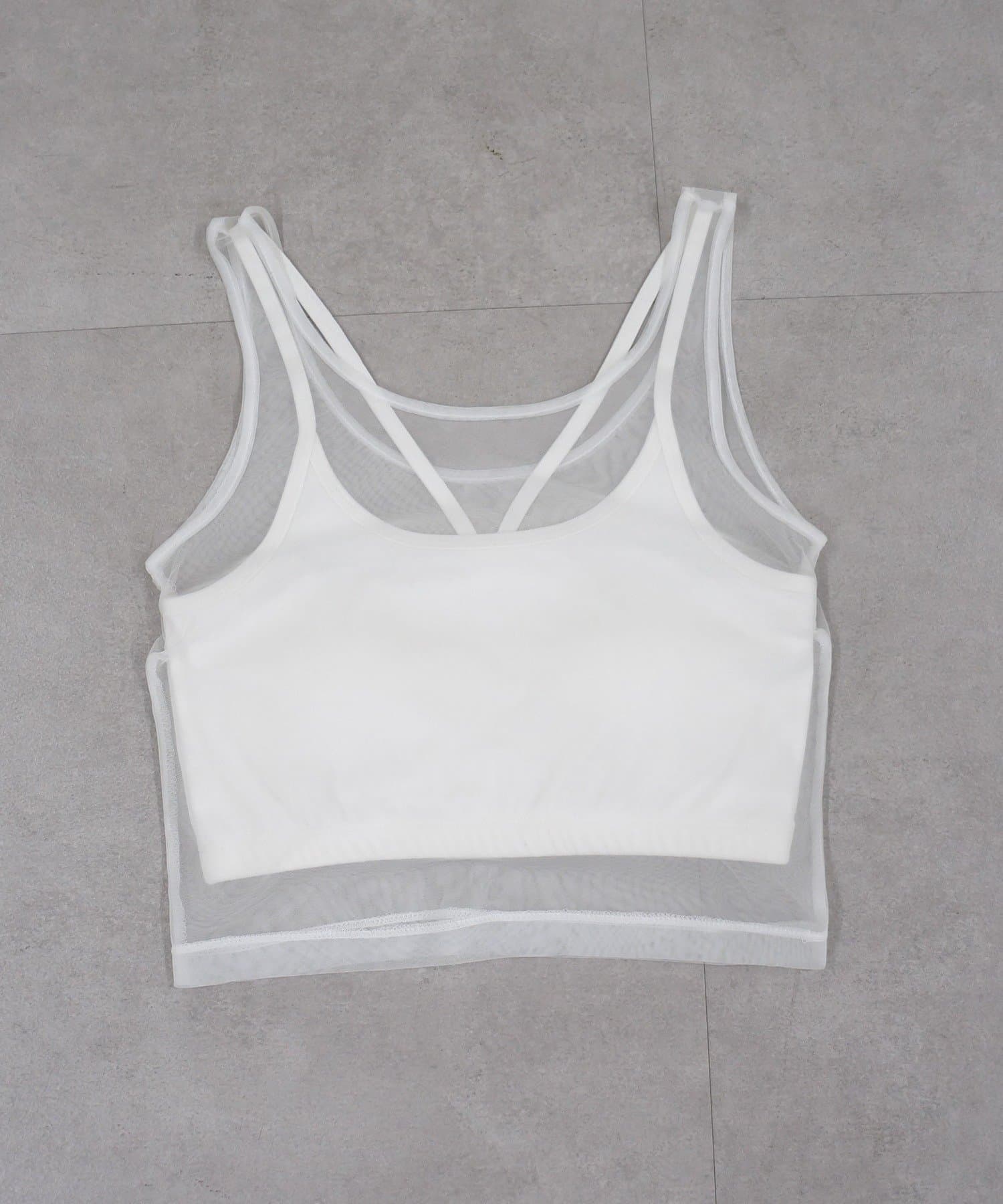 エアリーな透け感が魅力。カップ付きチュールタンク