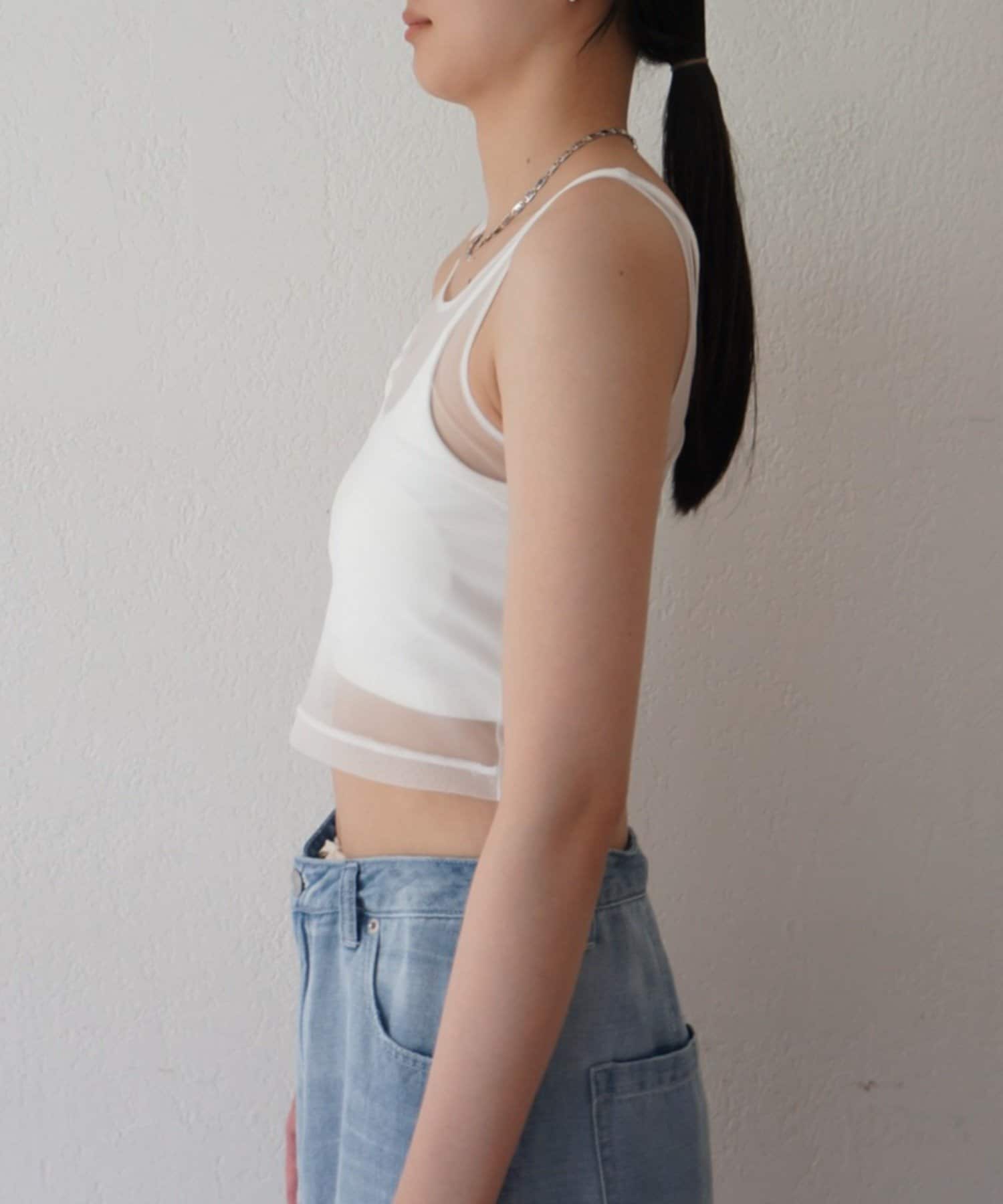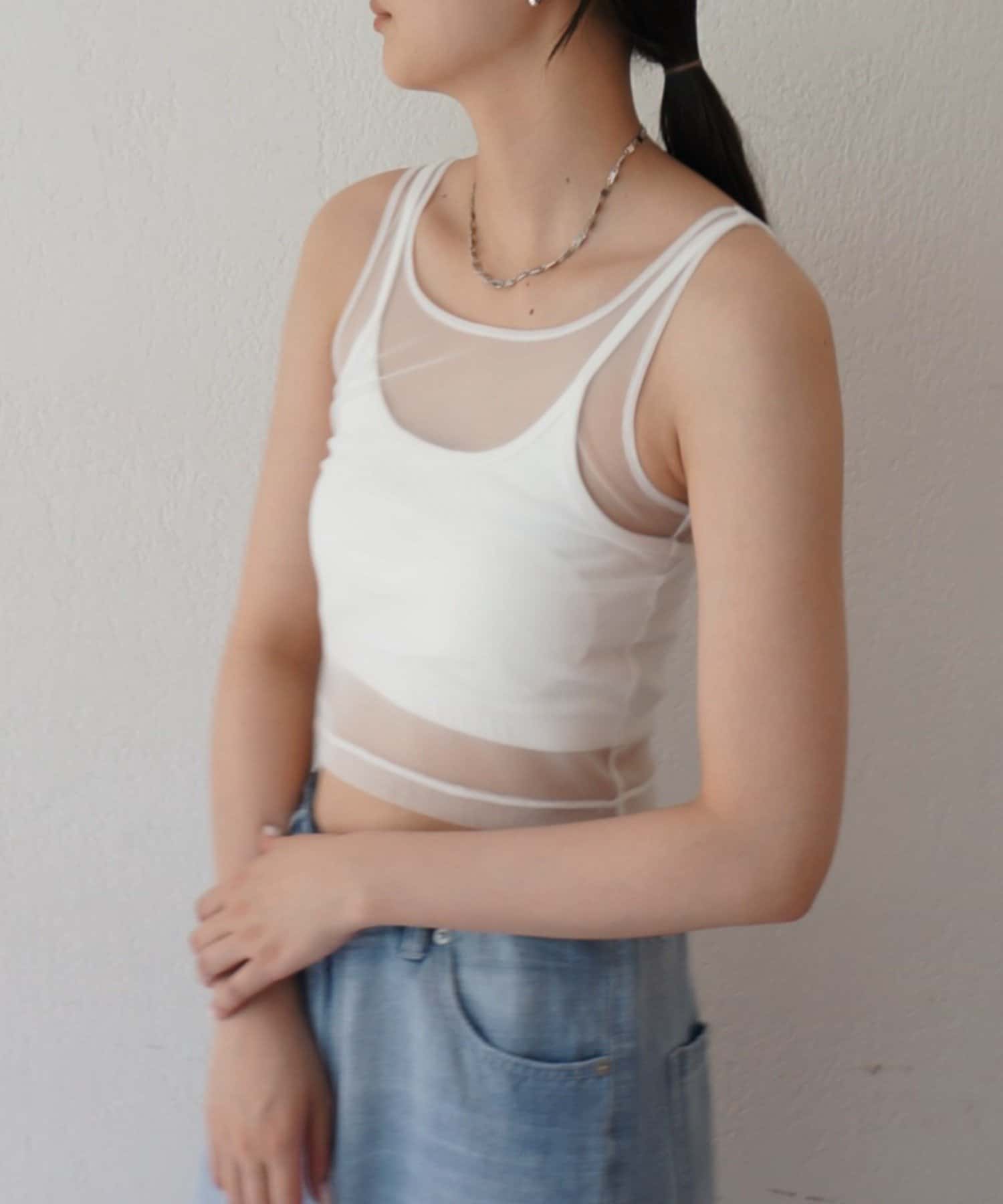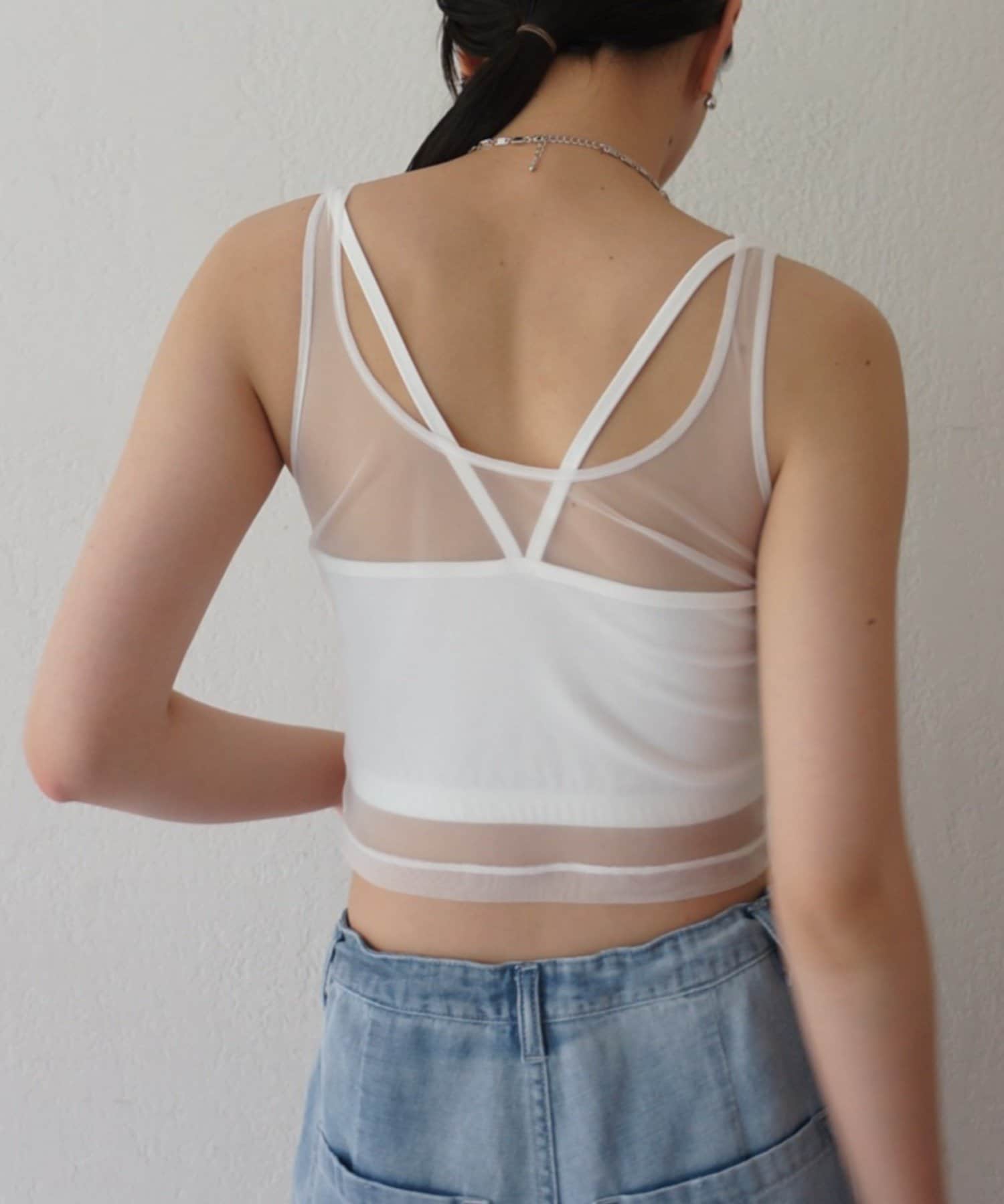 エアリーな透け感が魅力。カップ付きチュールタンク