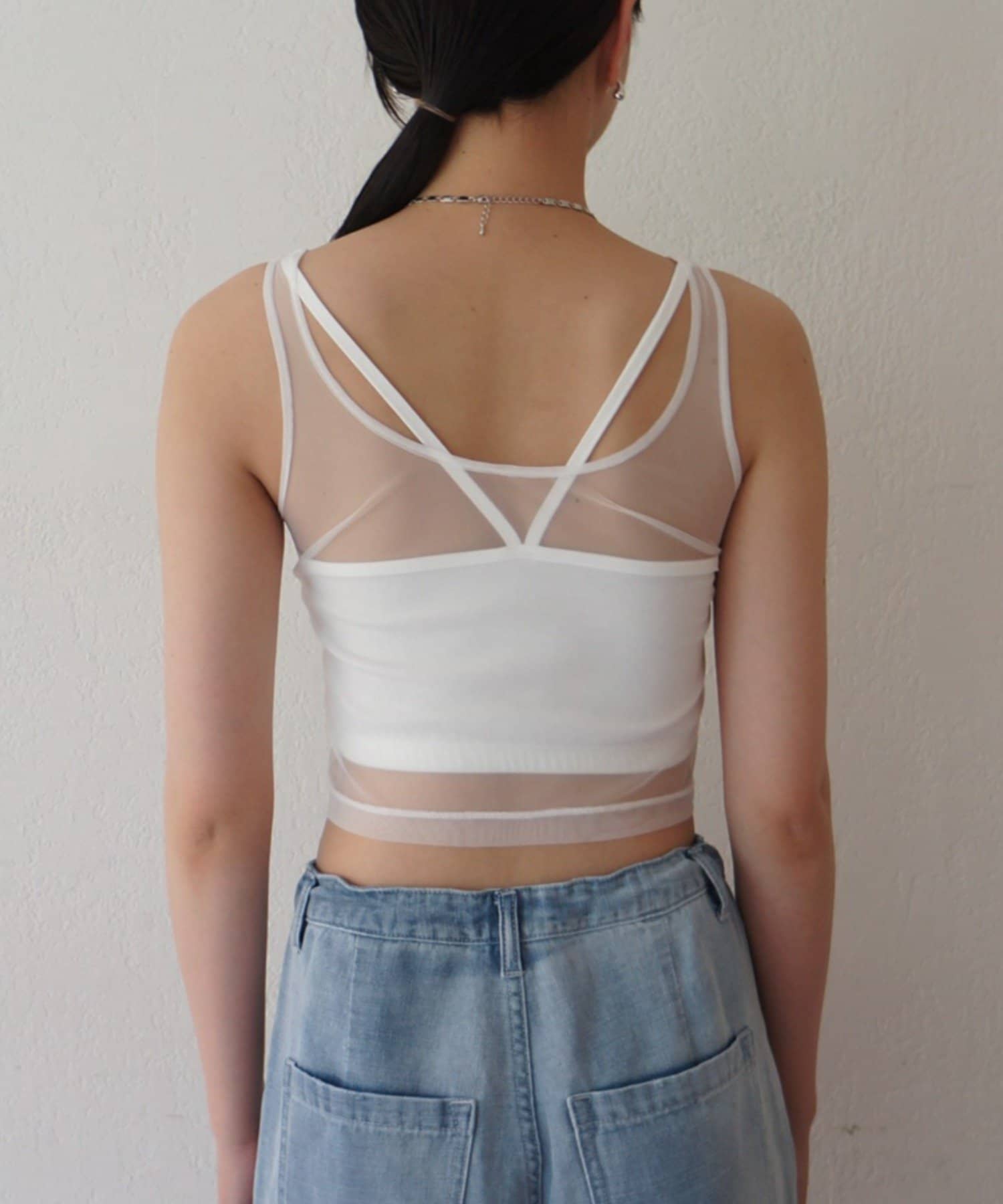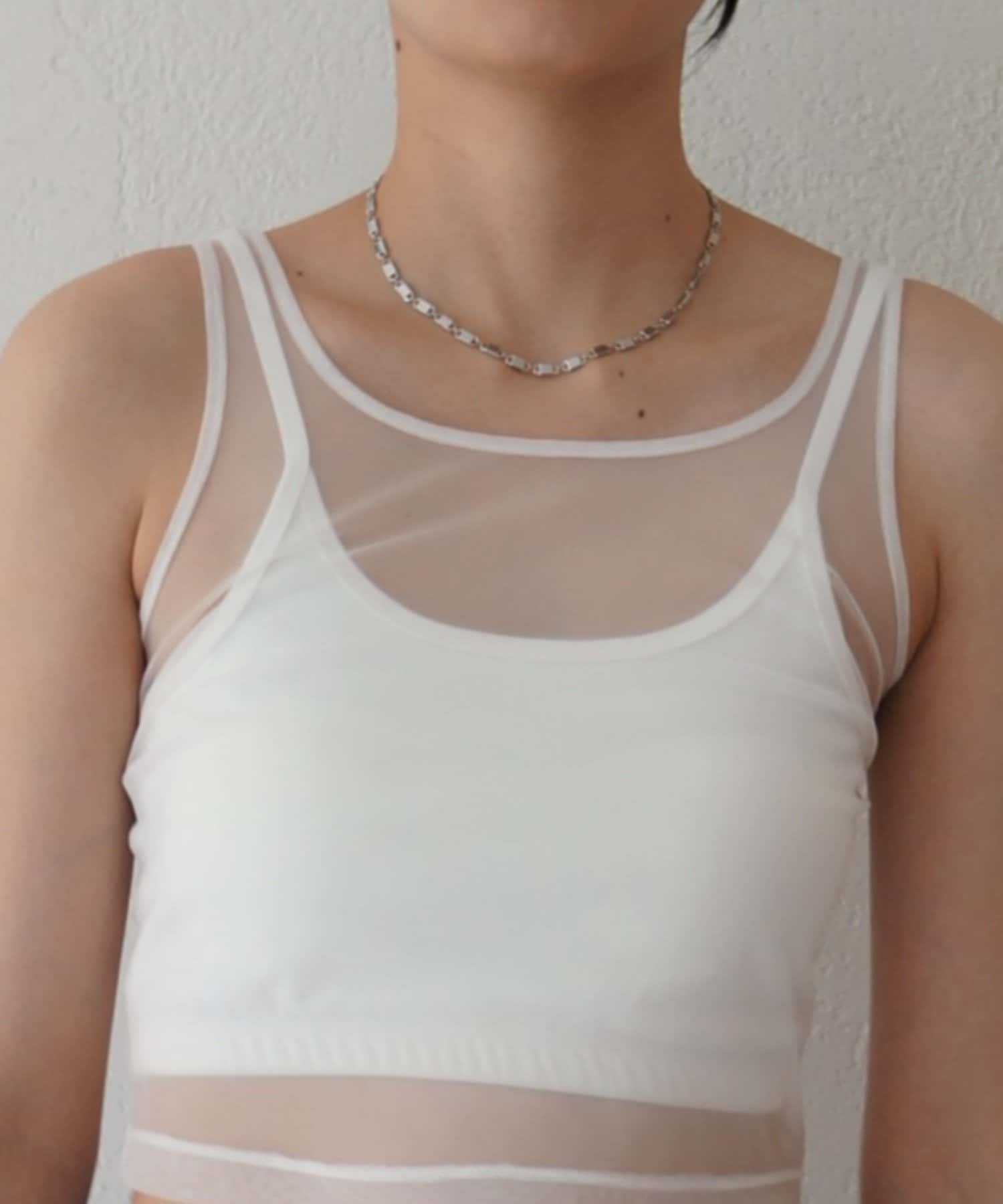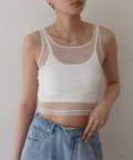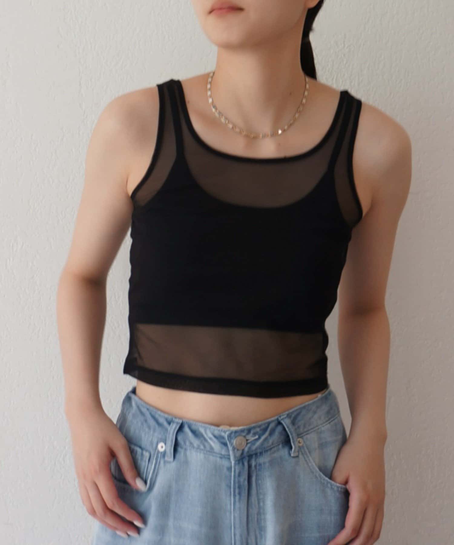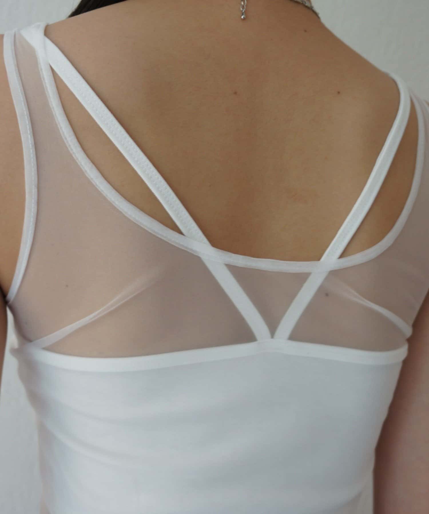 エアリーな透け感が魅力。カップ付きチュールタンク