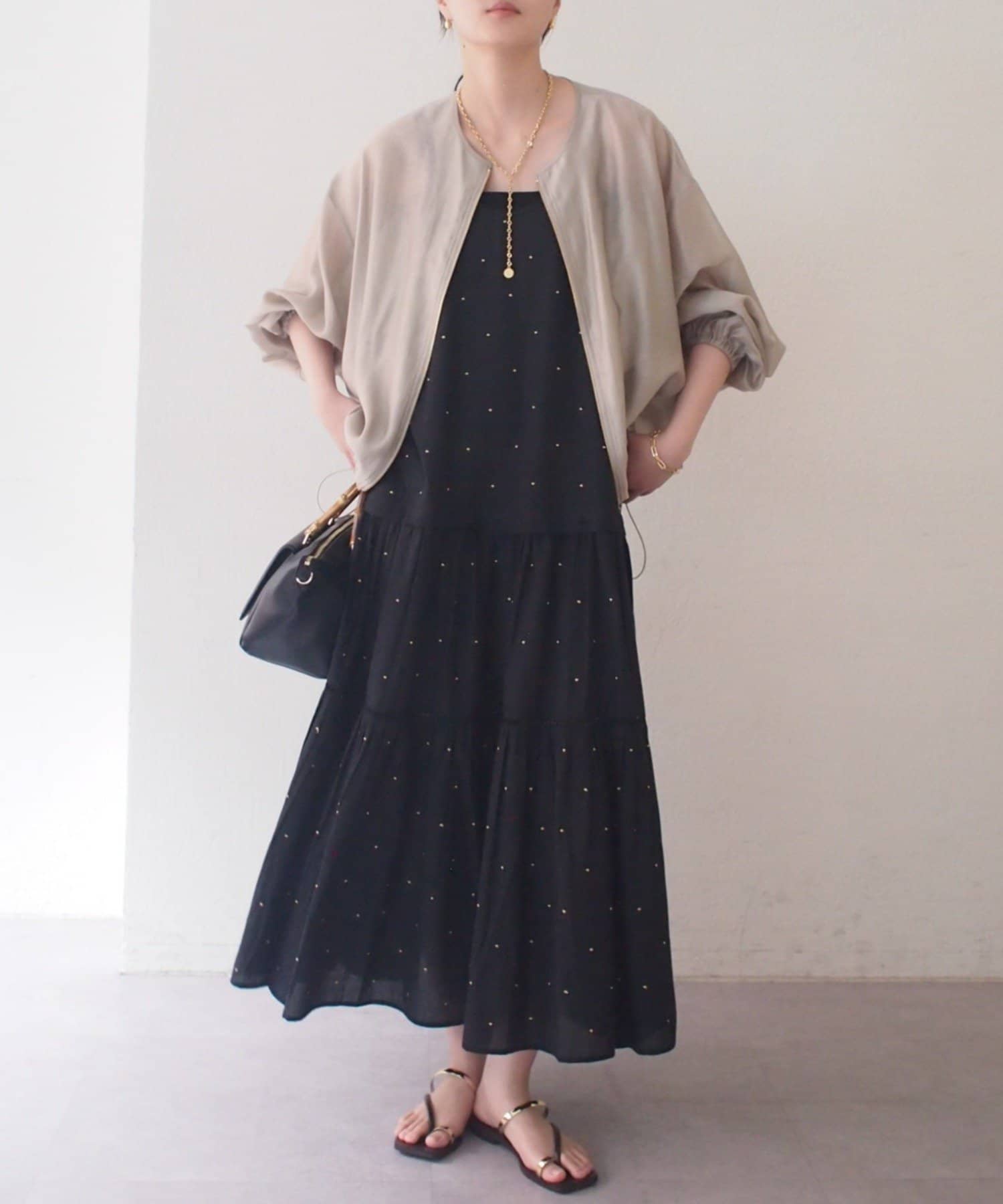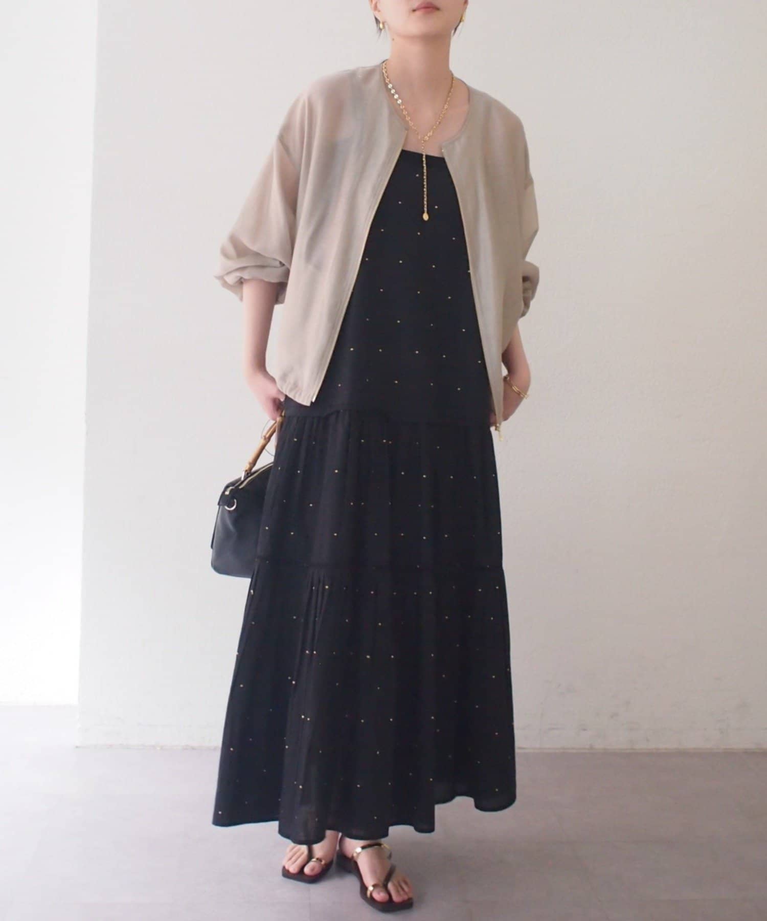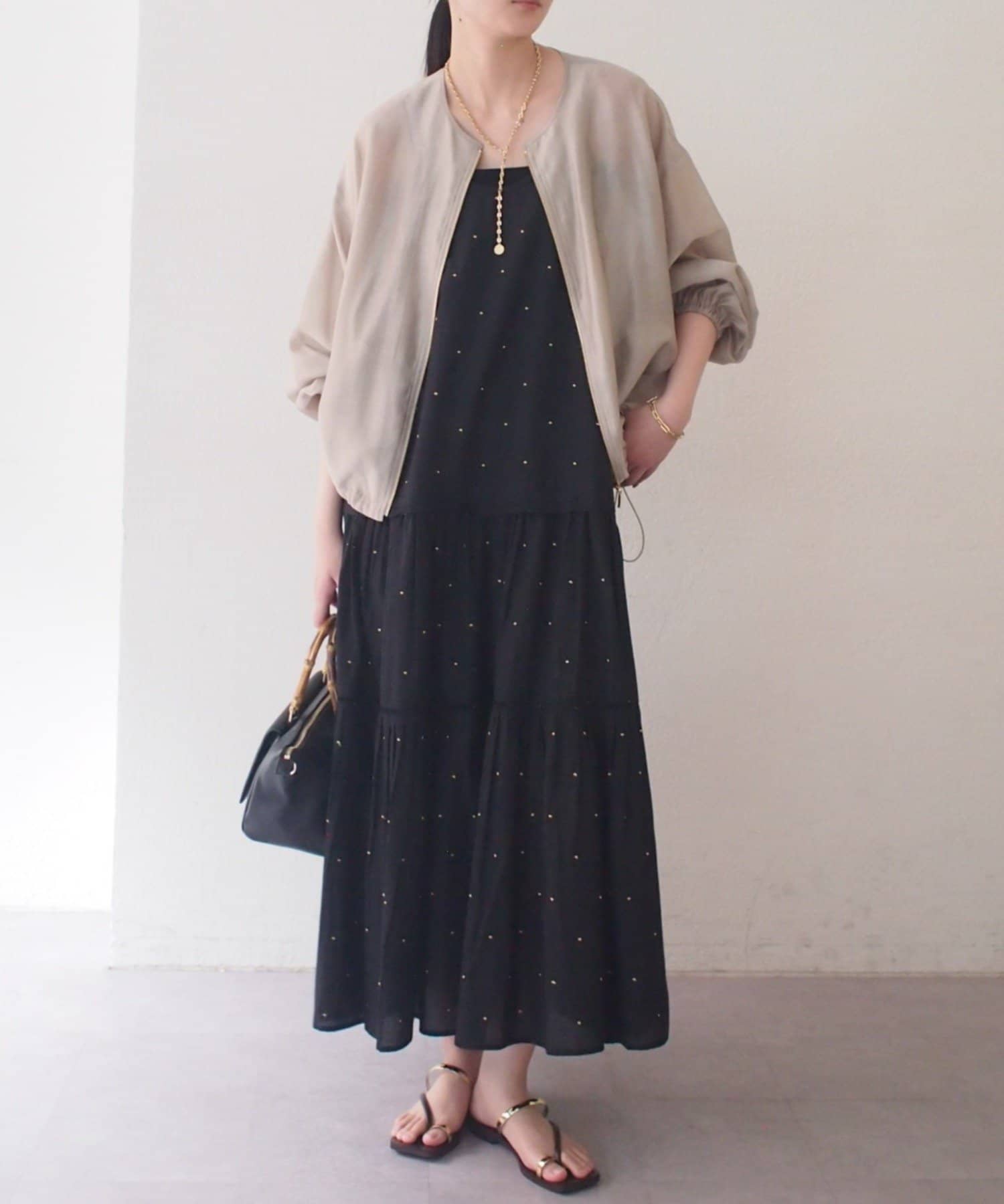 さらにゴールドのファスナーとストッパーがさりげないアクセントとなり、洗練された大人の印象を演出します。