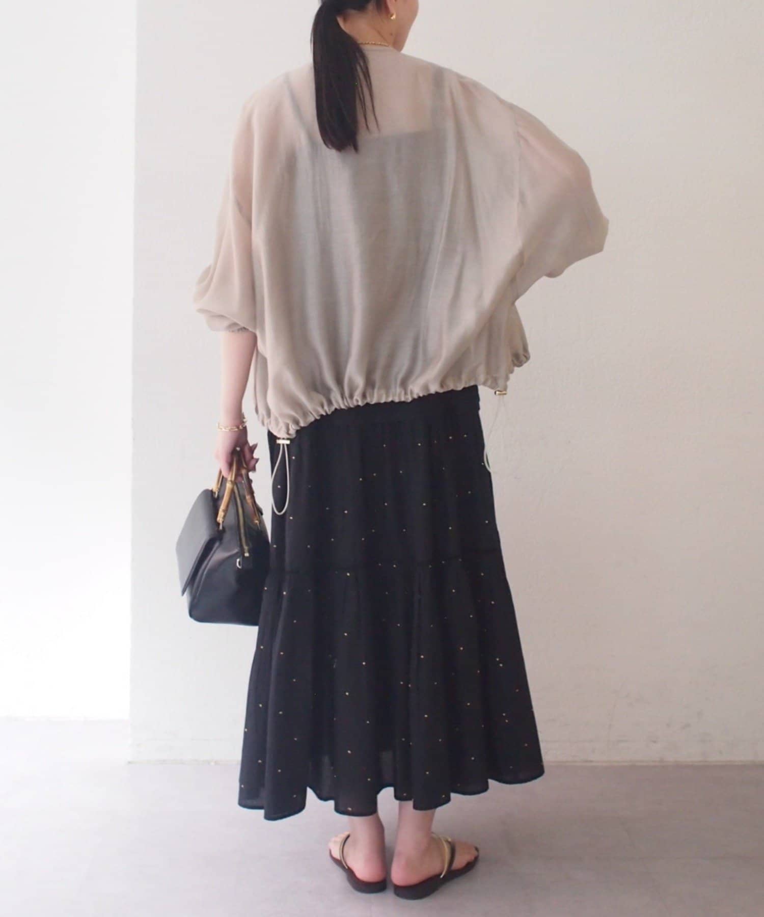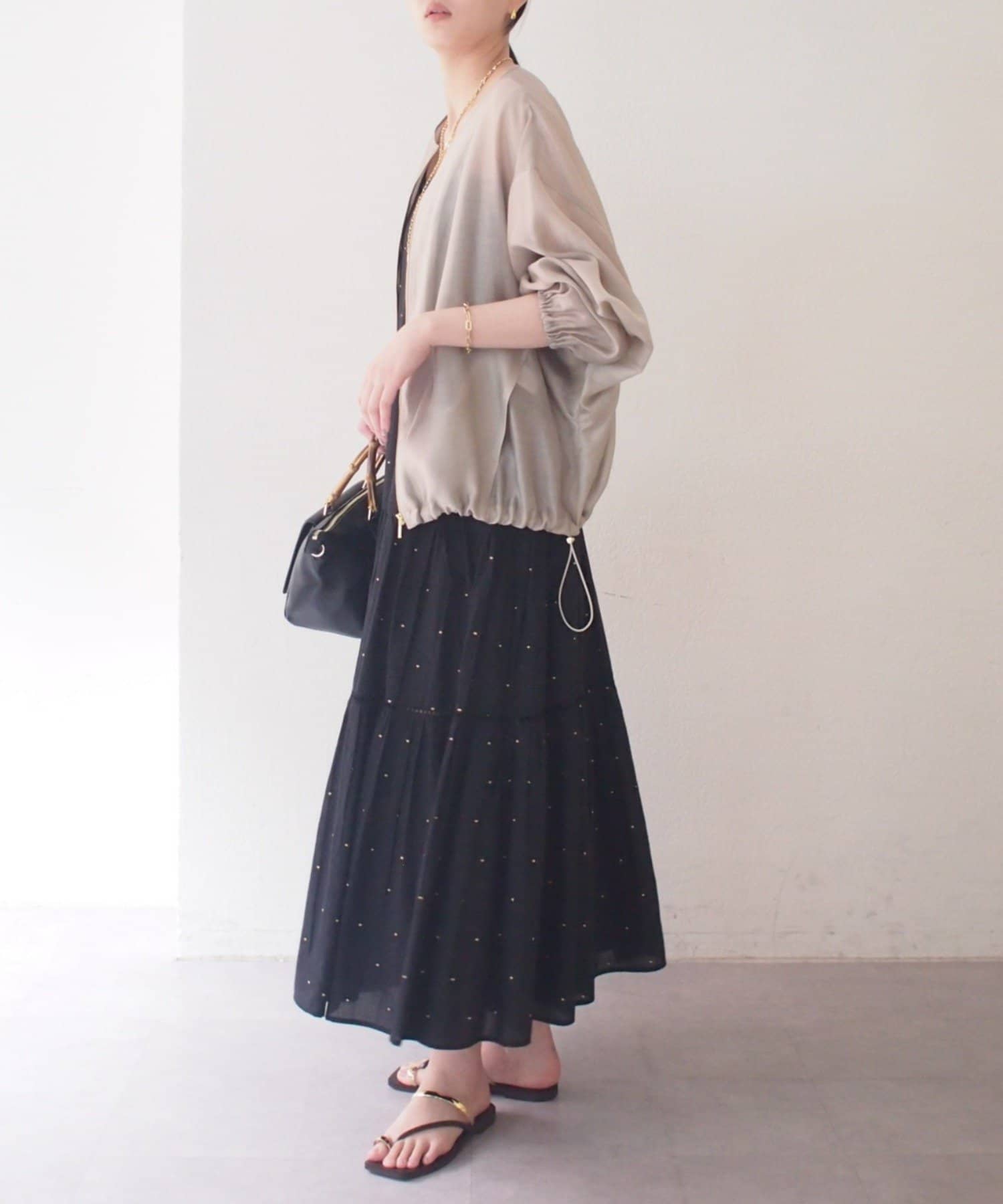 裾のドロスト仕様で絞り具合を調整でき、ふんわりとしたバルーンシルエットを楽しめるのも魅力。
