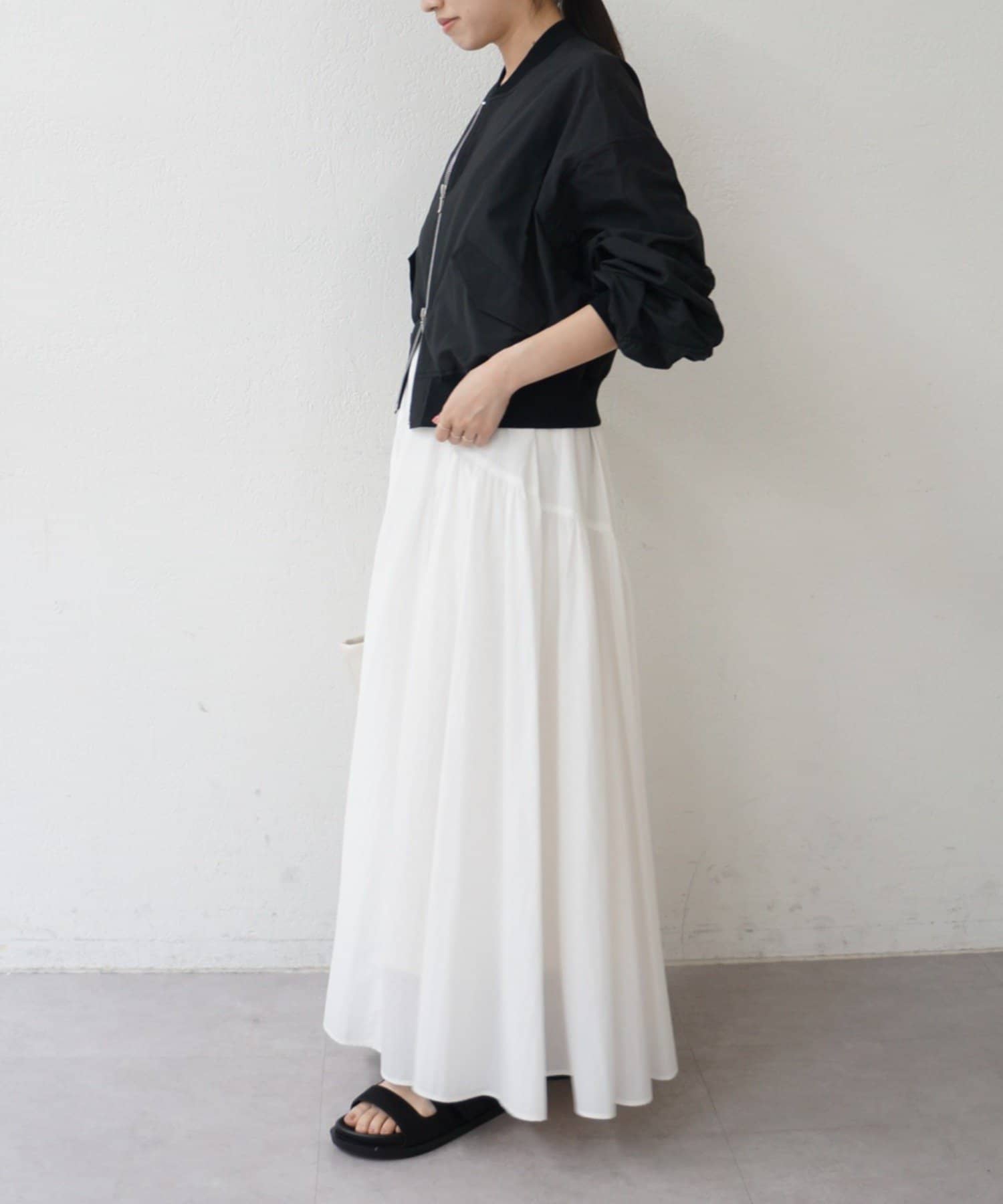 短めの丈感とゆったりとした身幅のバランスが、こなれた雰囲気を演出。