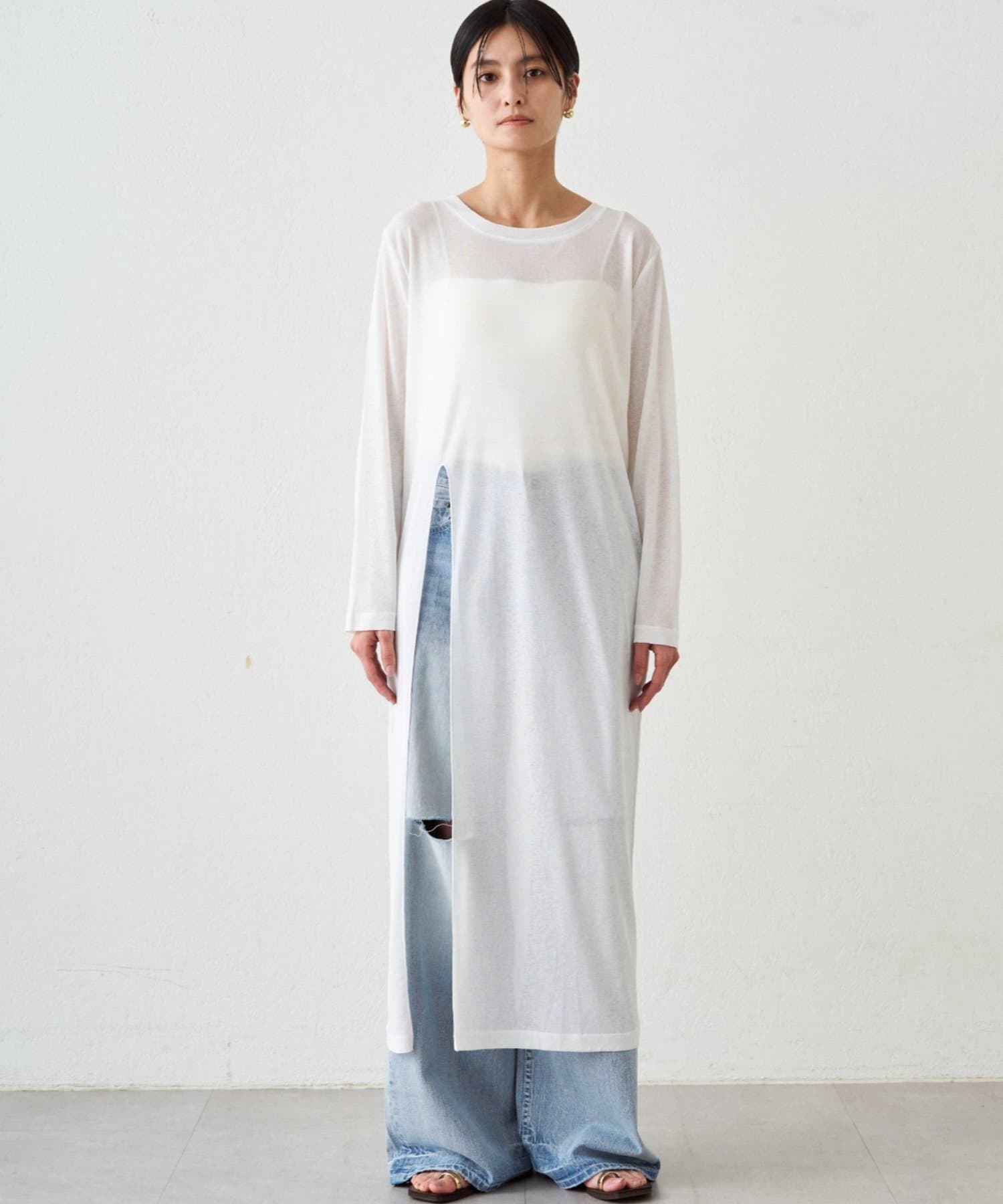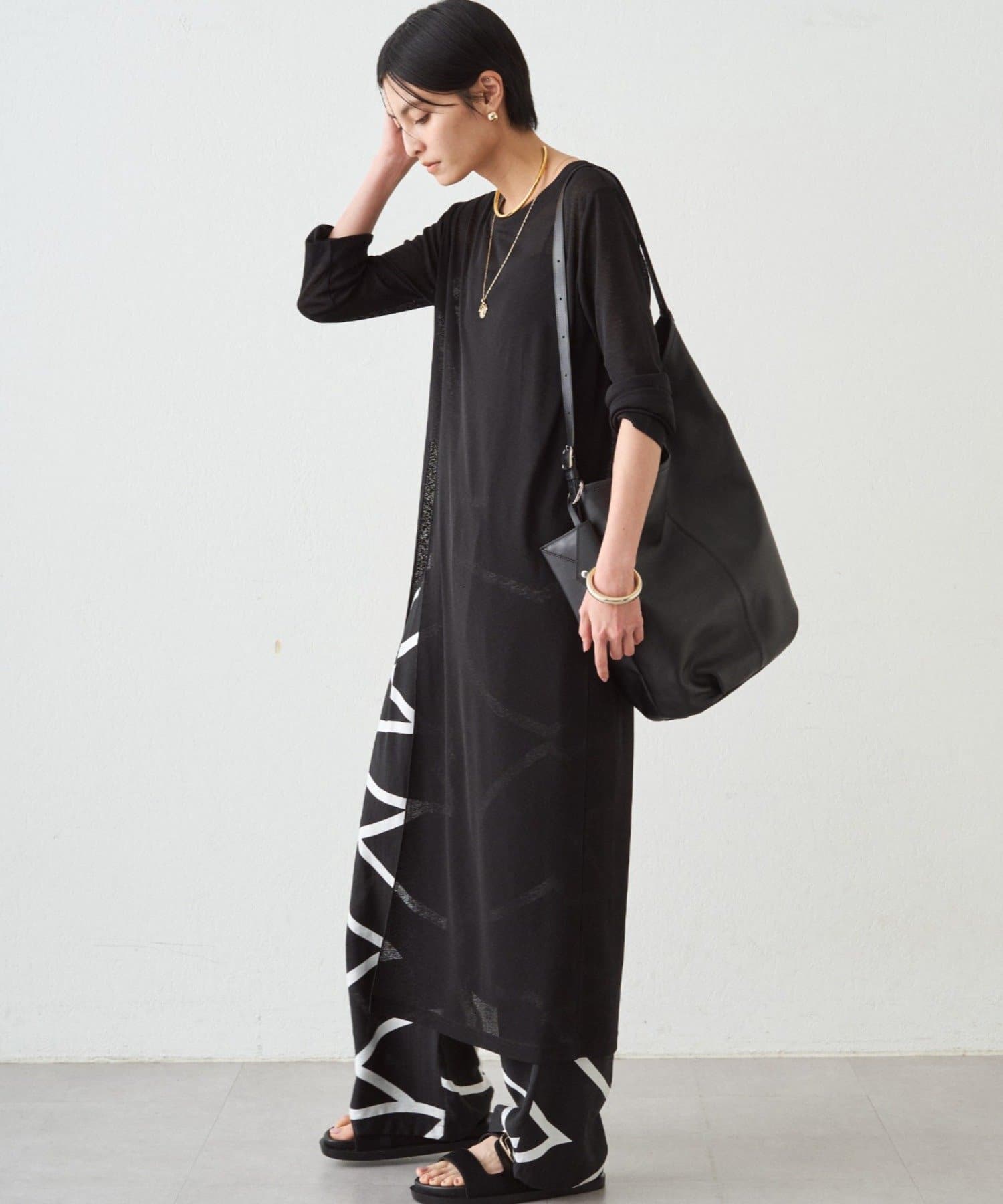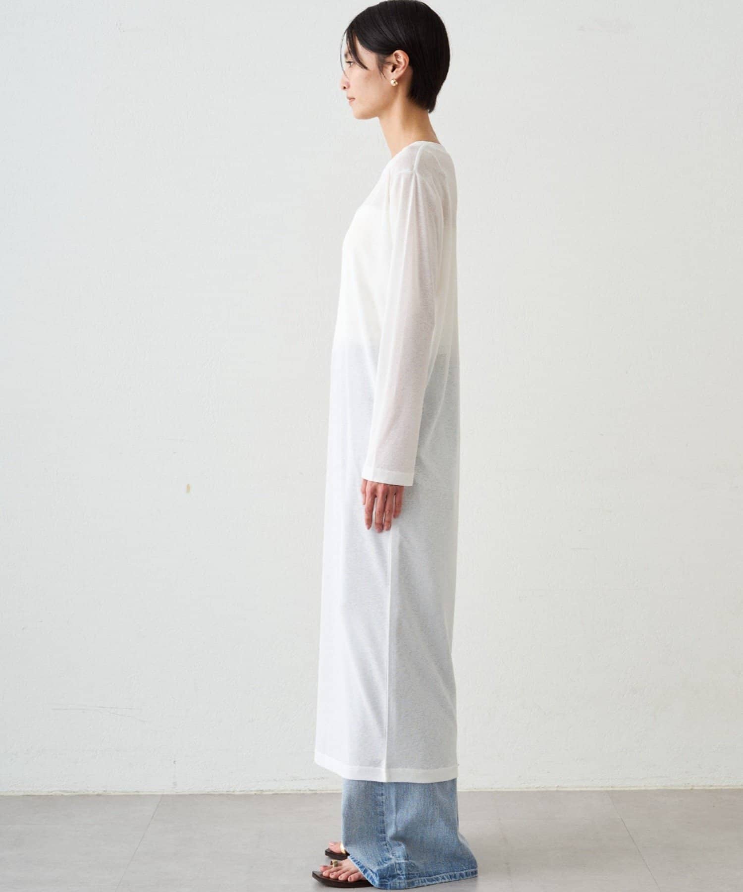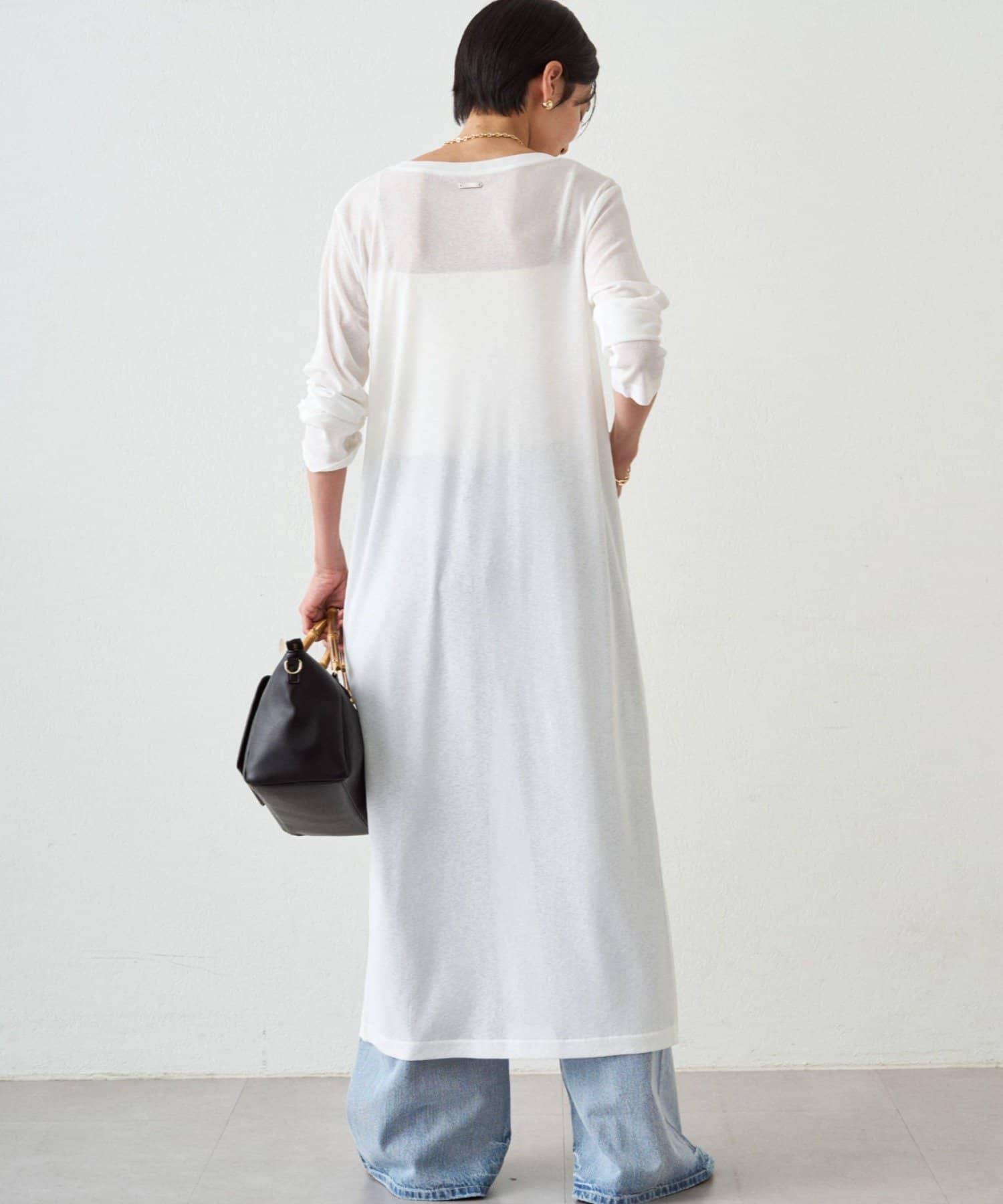 纏うだけで洗練されたレイヤードスタイルが完成。シアーカットソーロングワンピース