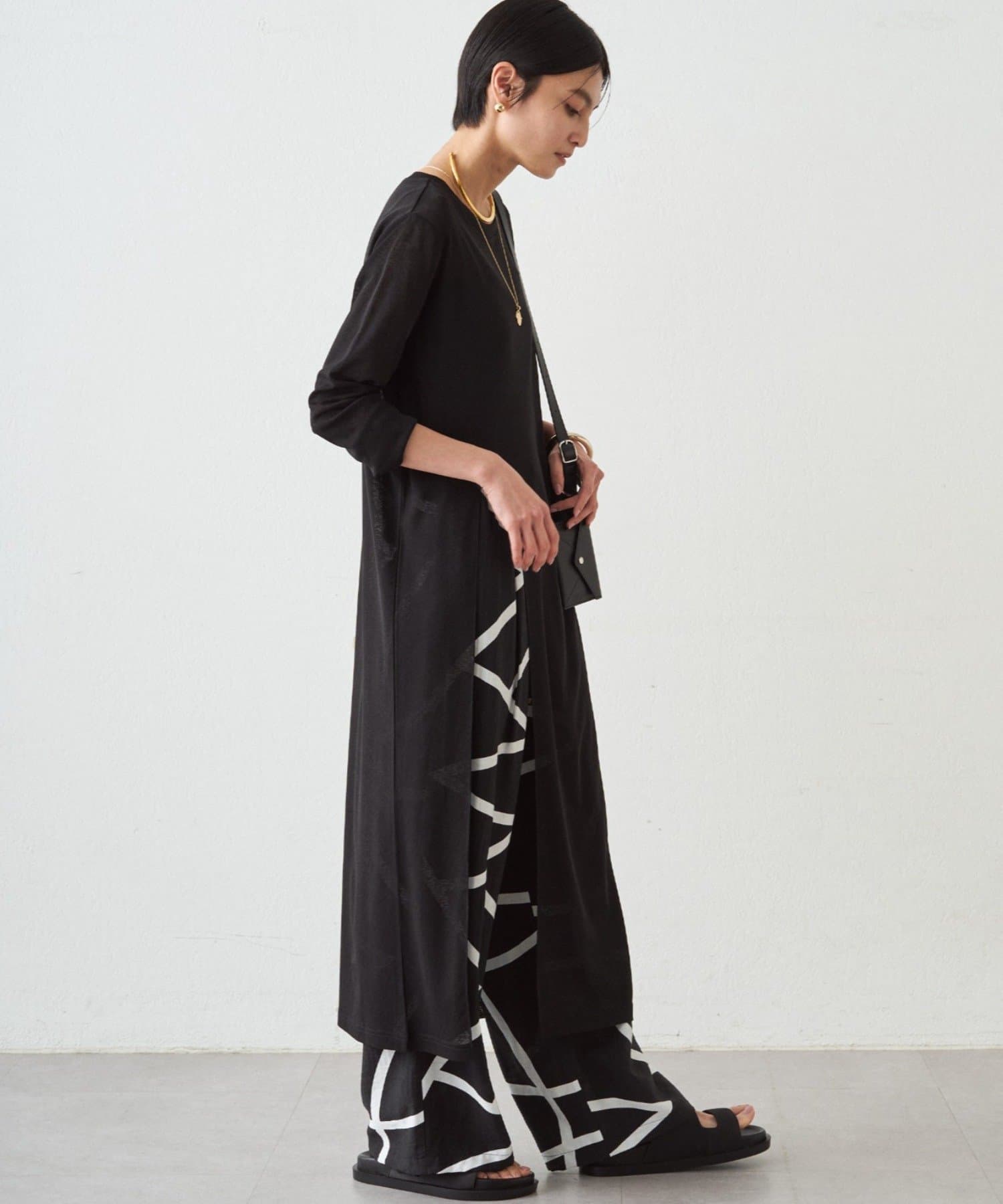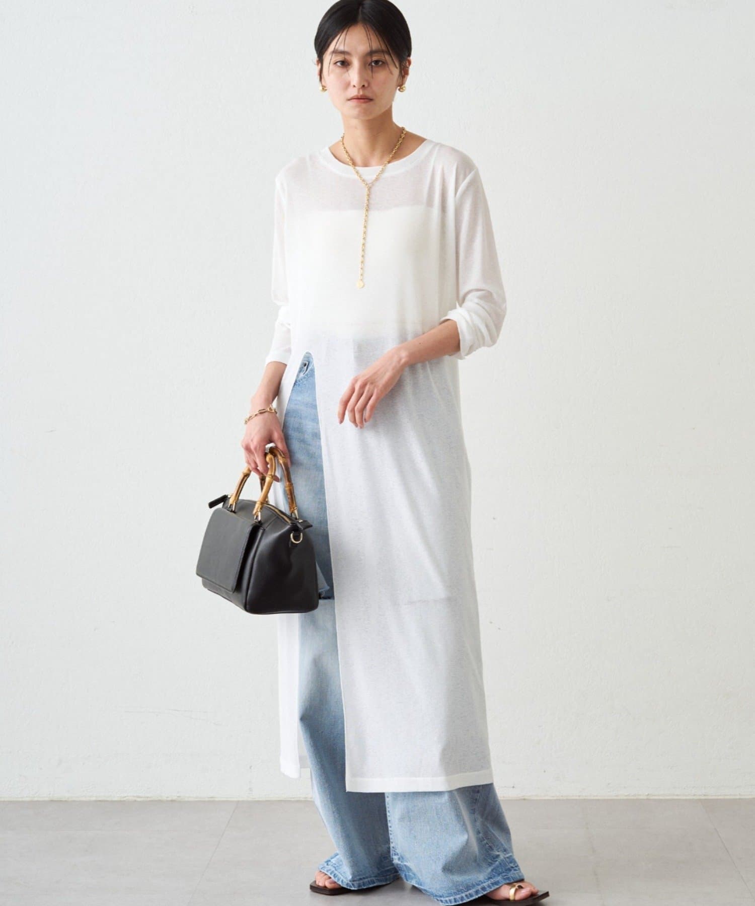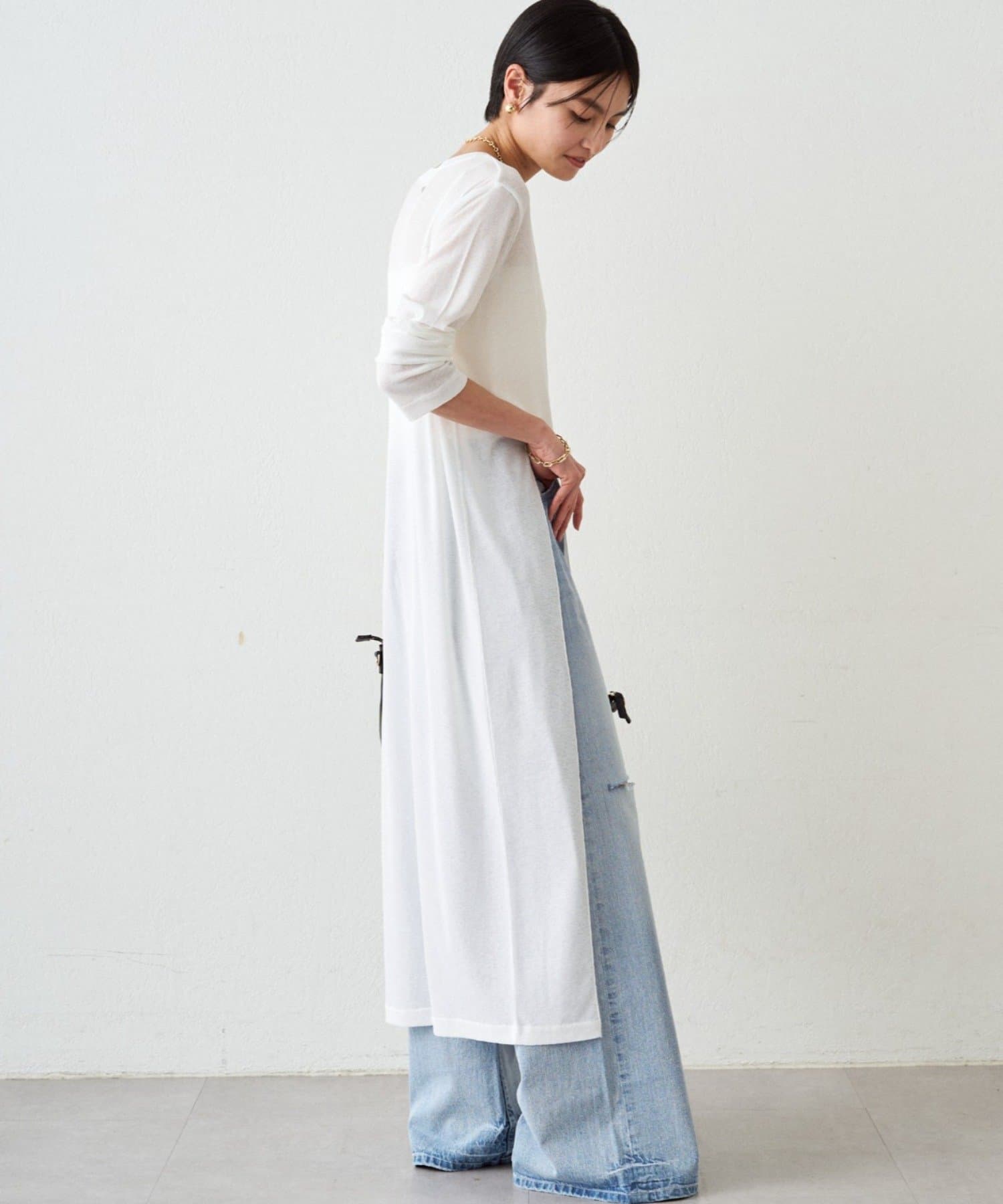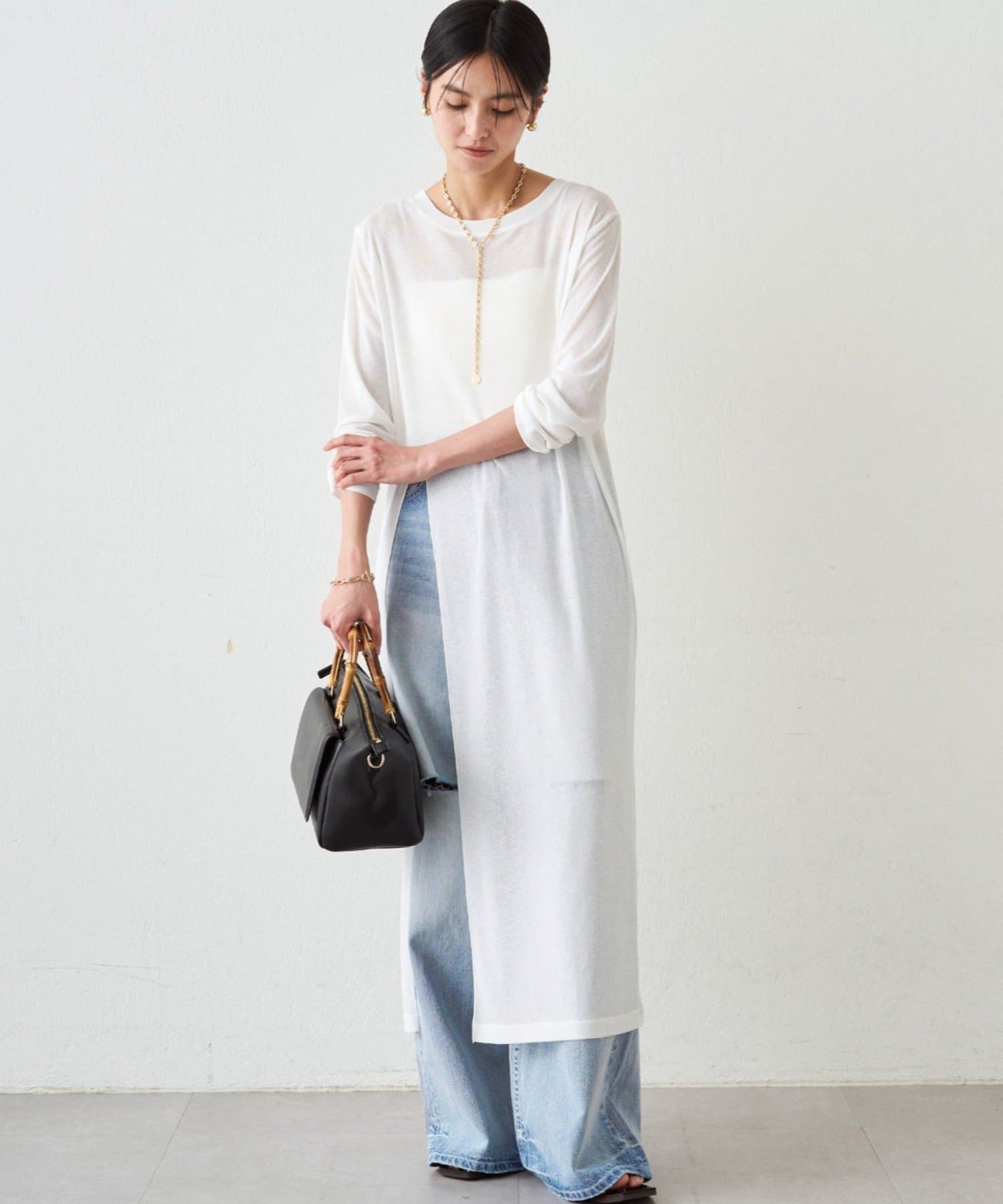 纏うだけで洗練されたレイヤードスタイルが完成。シアーカットソーロングワンピース
