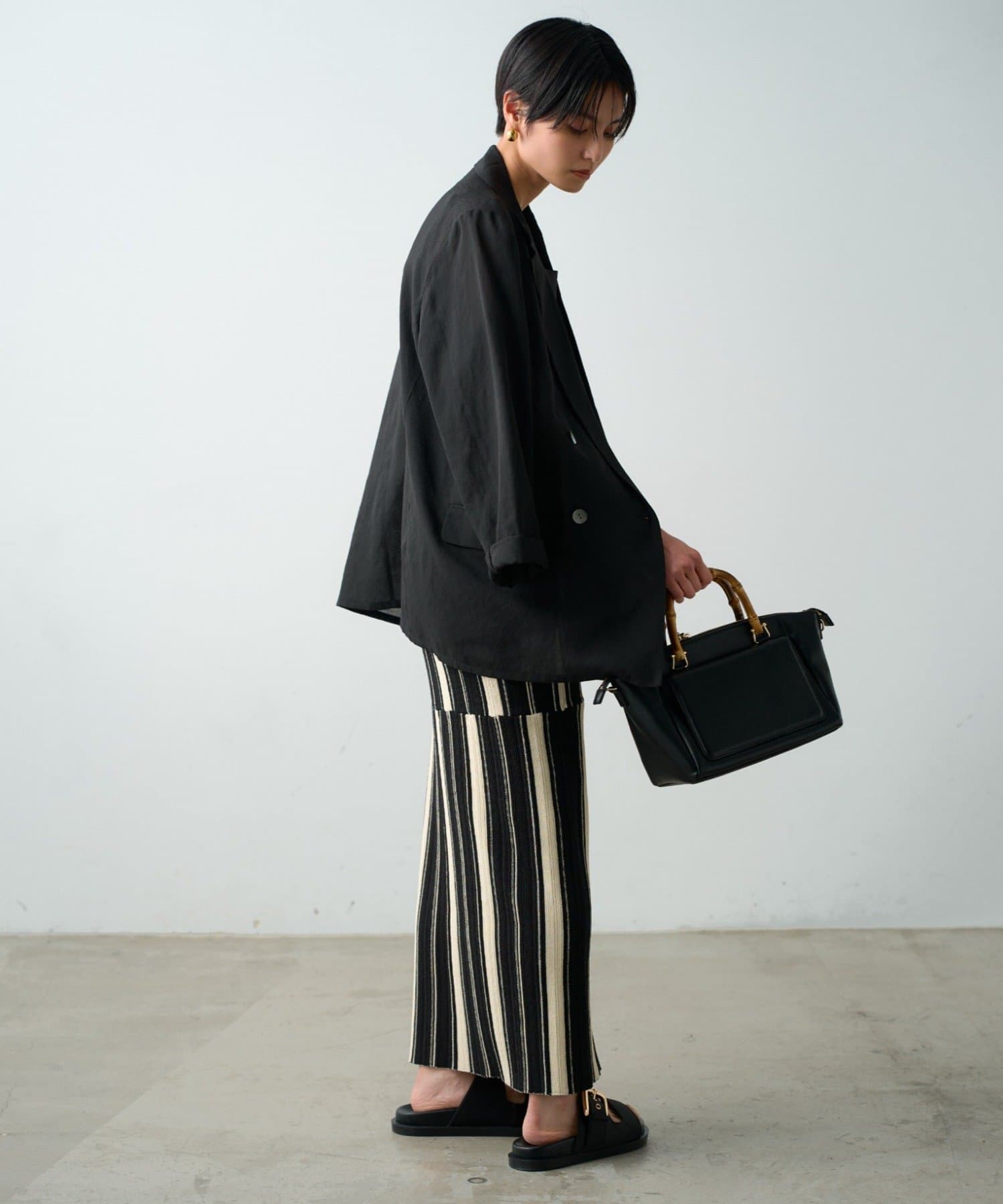 足元はサンダルやフラットシューズで抜け感をプラスしたり、スニーカーでカジュアルダウンさせたりと、様々なスタイリングが楽しめます。