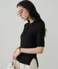 大人の余裕を醸し出す、リブ編みニットポロシャツ
