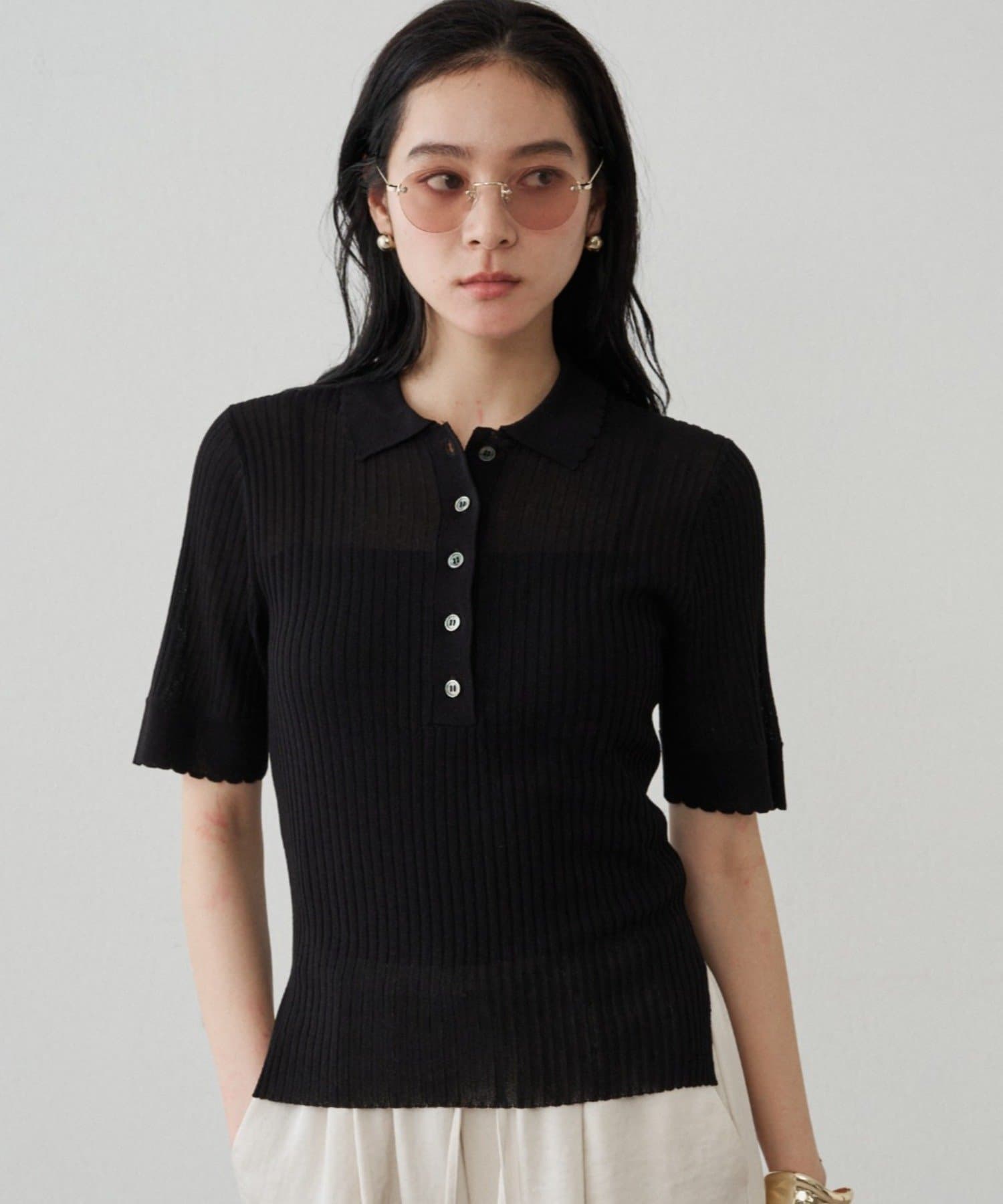 袖口のさりげないスカラップデザインが、フェミニンな印象をプラス。