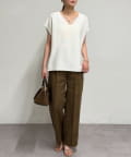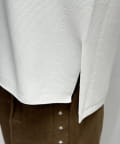 身幅にゆとりを持たせたリラックス感のあるシルエットで、気になる体のラインを拾いにくいのも嬉しいポイントです。