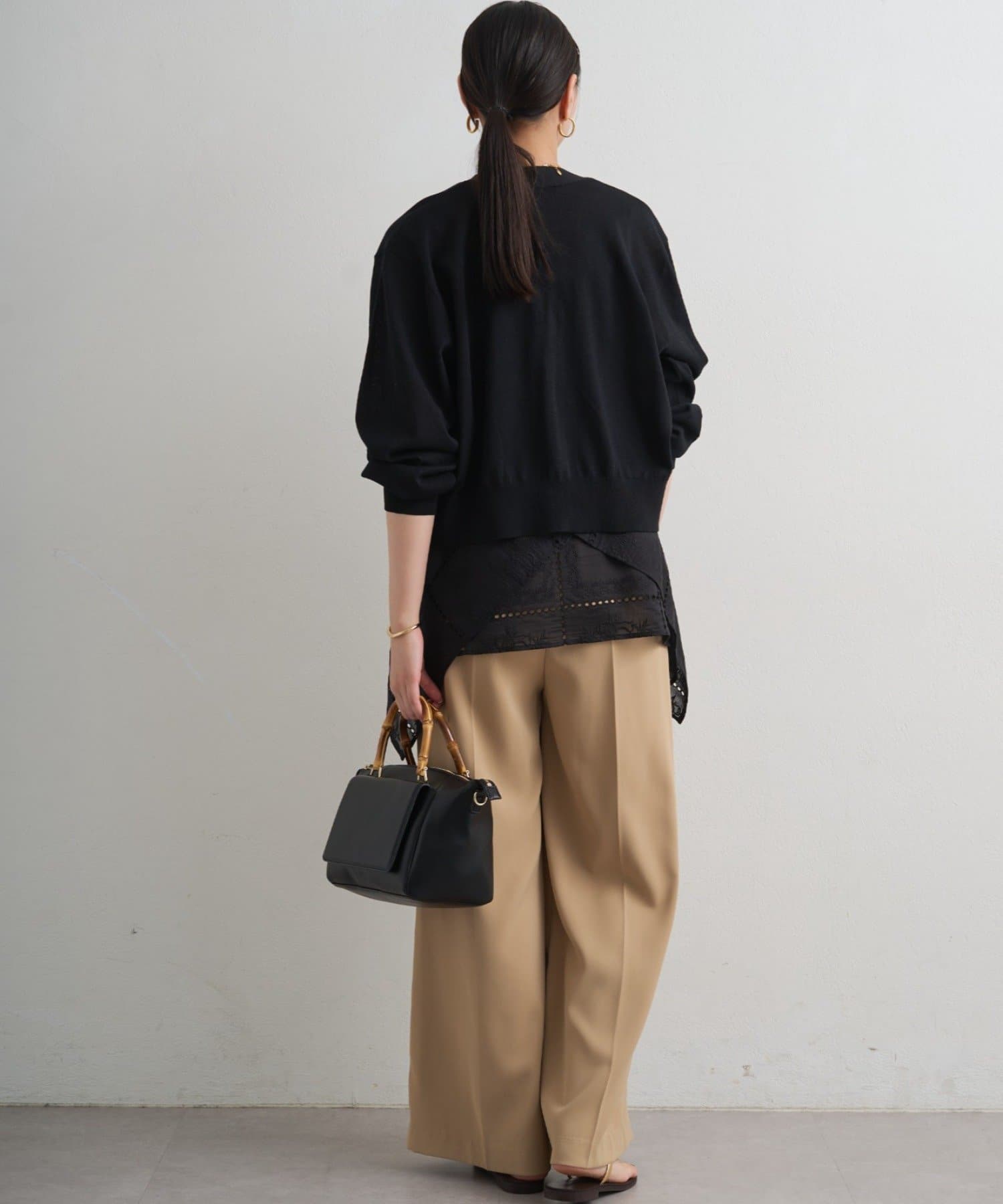 デコルテを美しく見せる深めのVネックが、女性らしさを引き立てます。