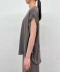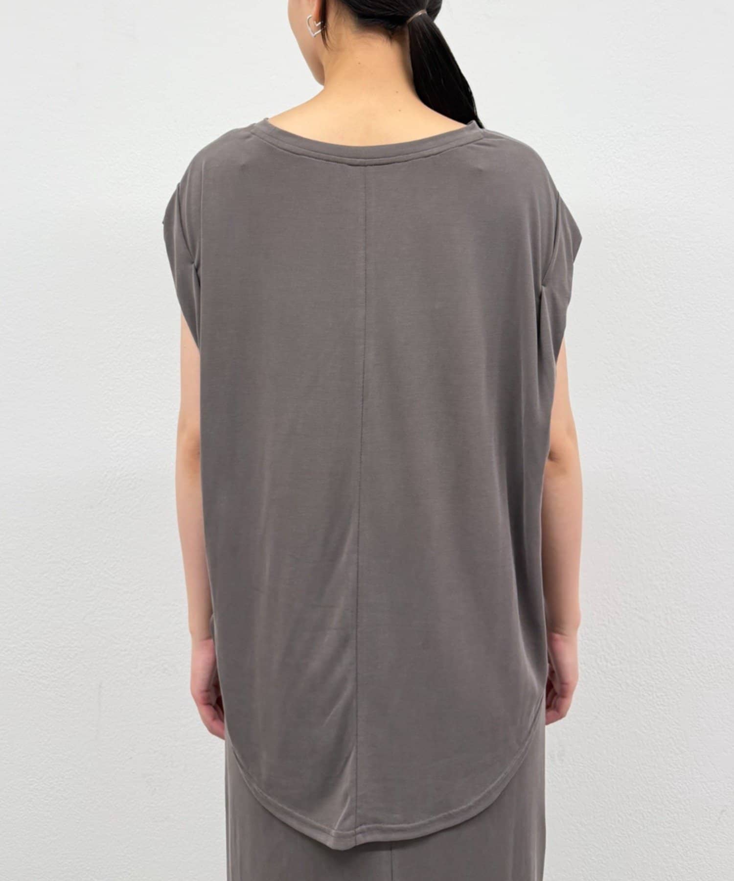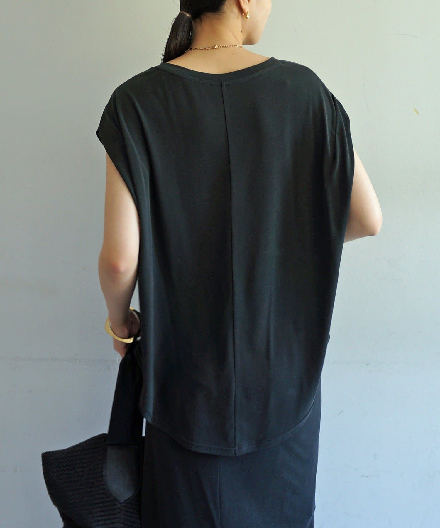 ゆったりとしたシルエットと、フレンチスリーブが、気になる二の腕をカバーしつつ、抜け感を演出してくれます。