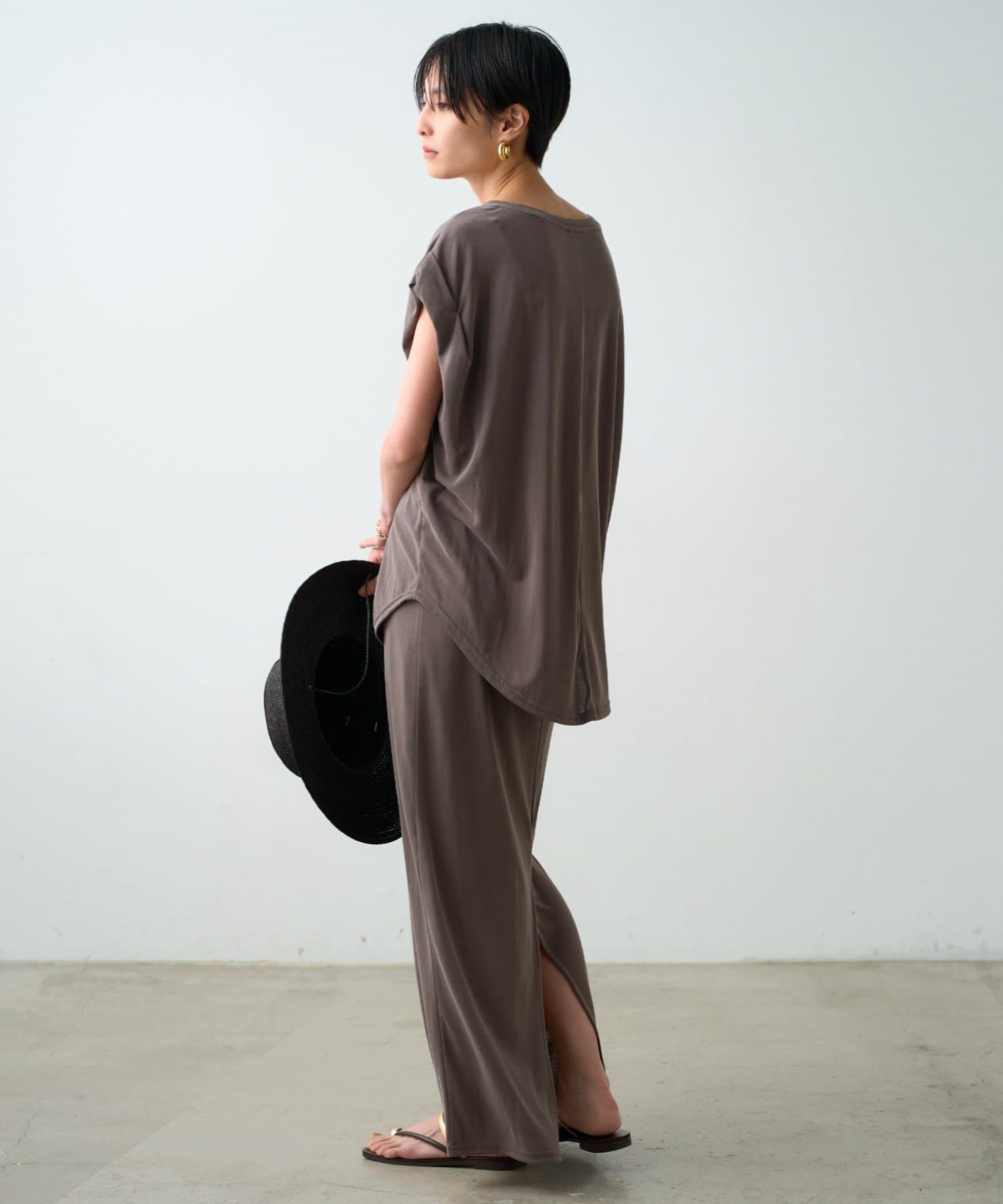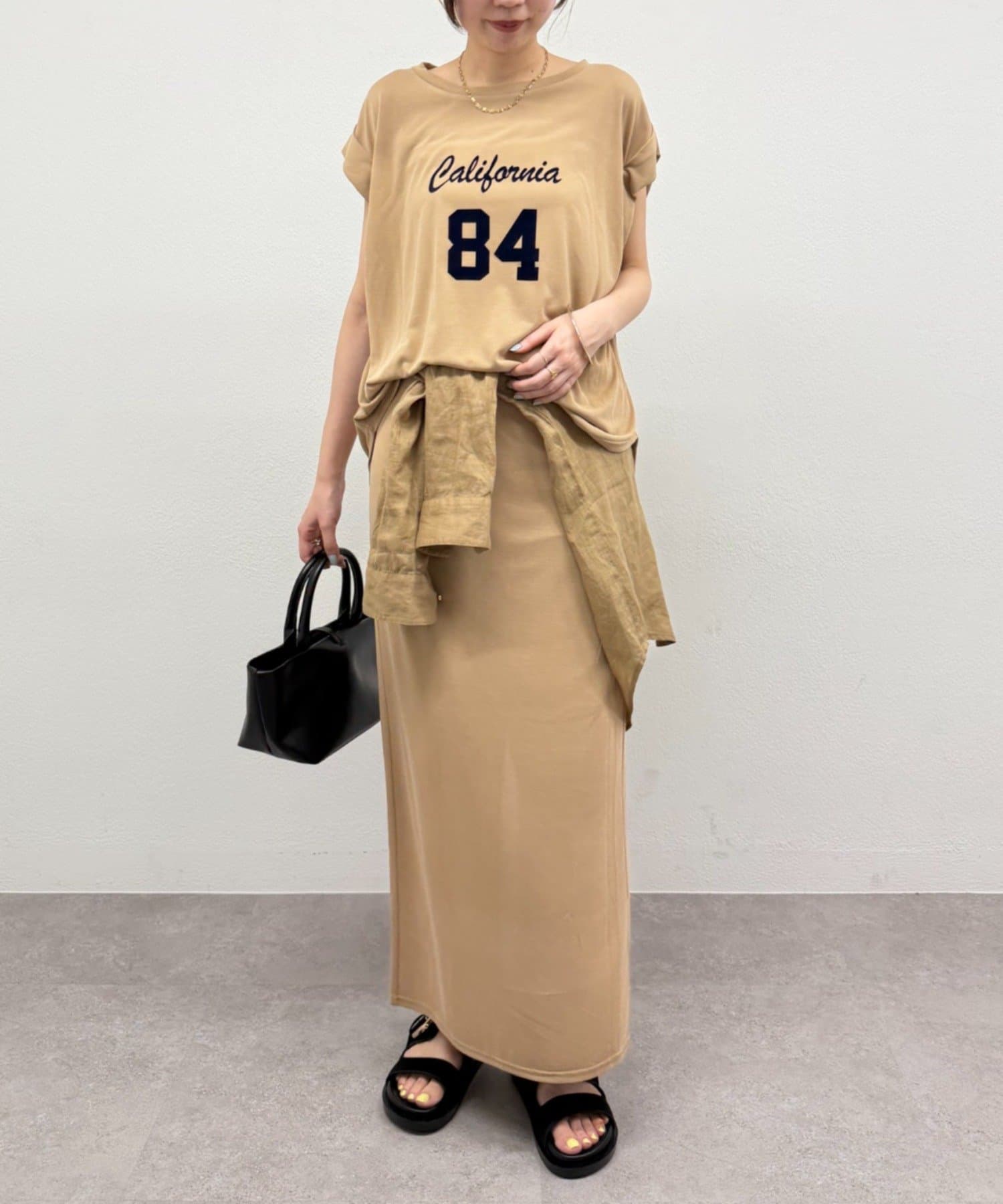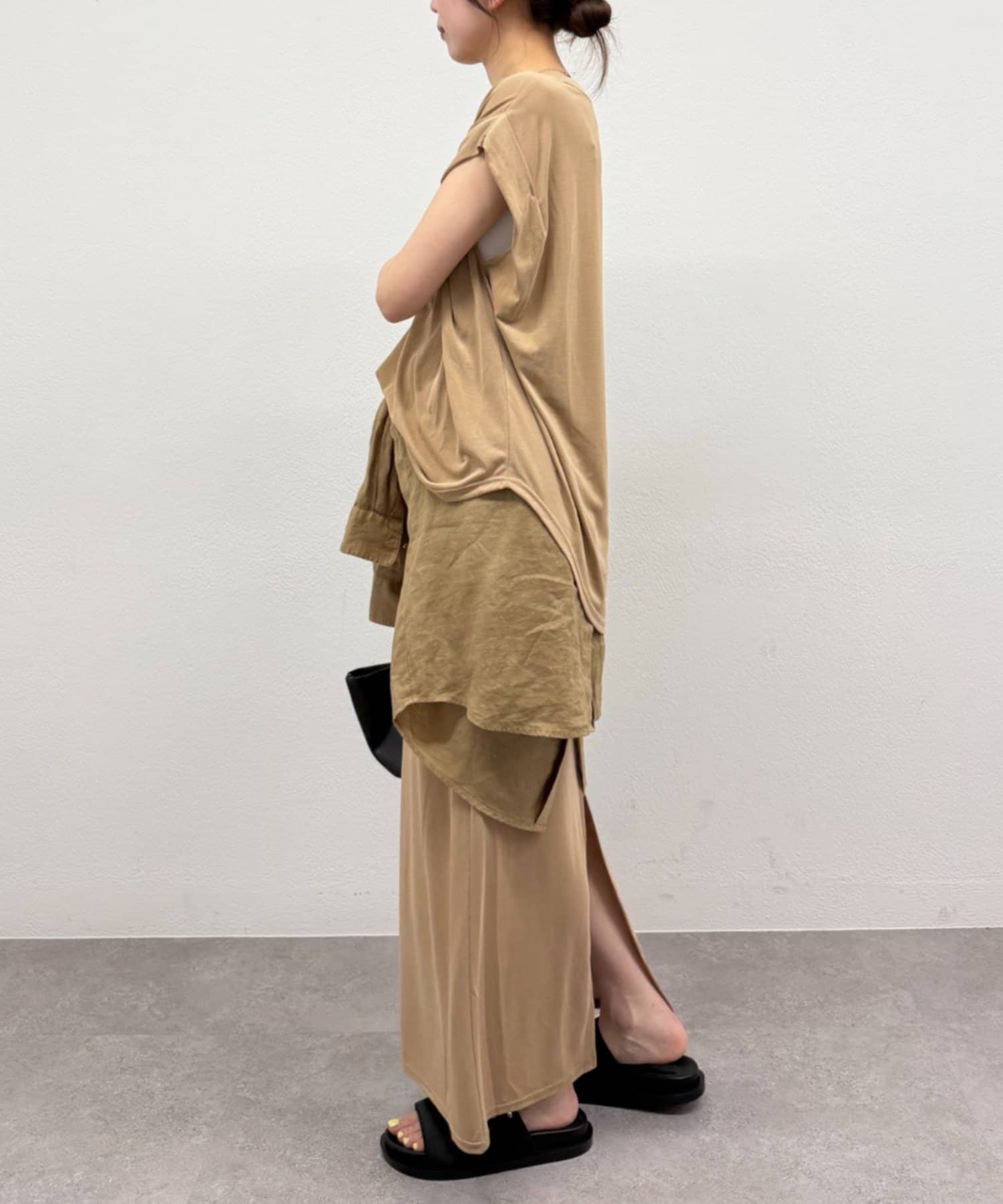とろみのあるカットソー生地がカジュアルになりすぎず、こなれ感を演出してくれます。