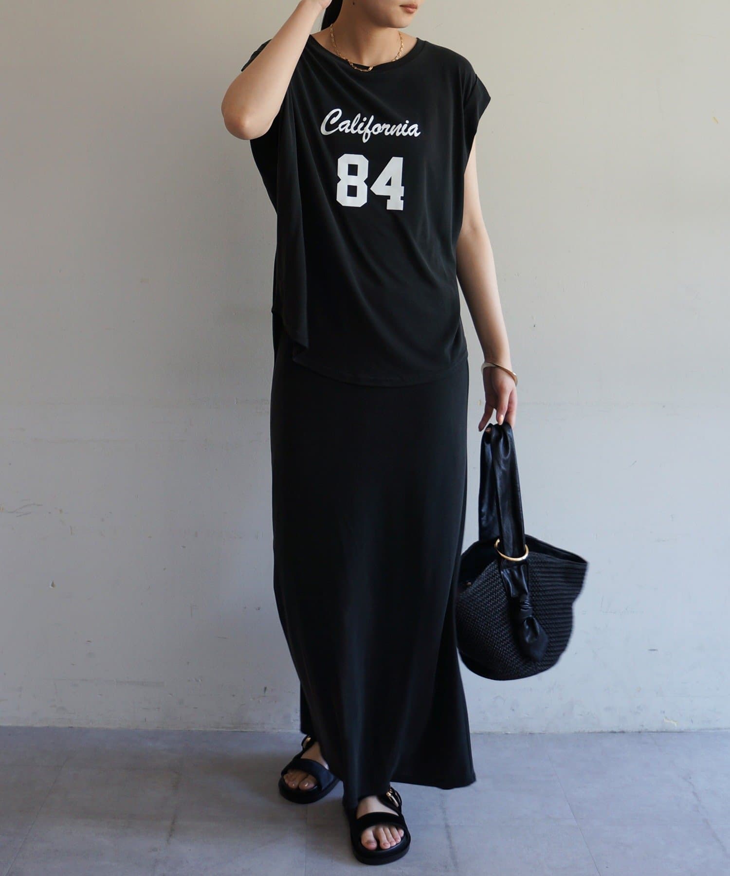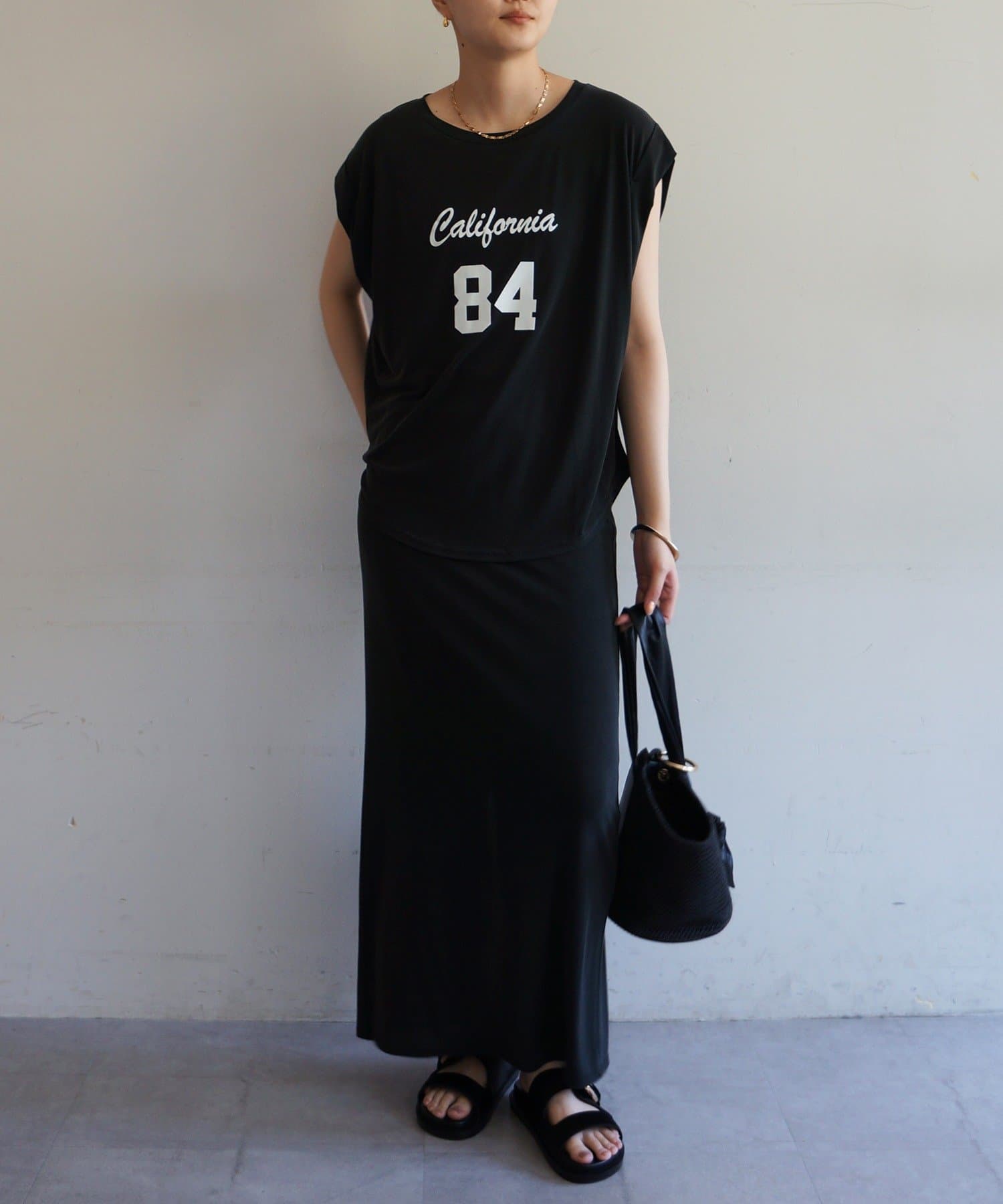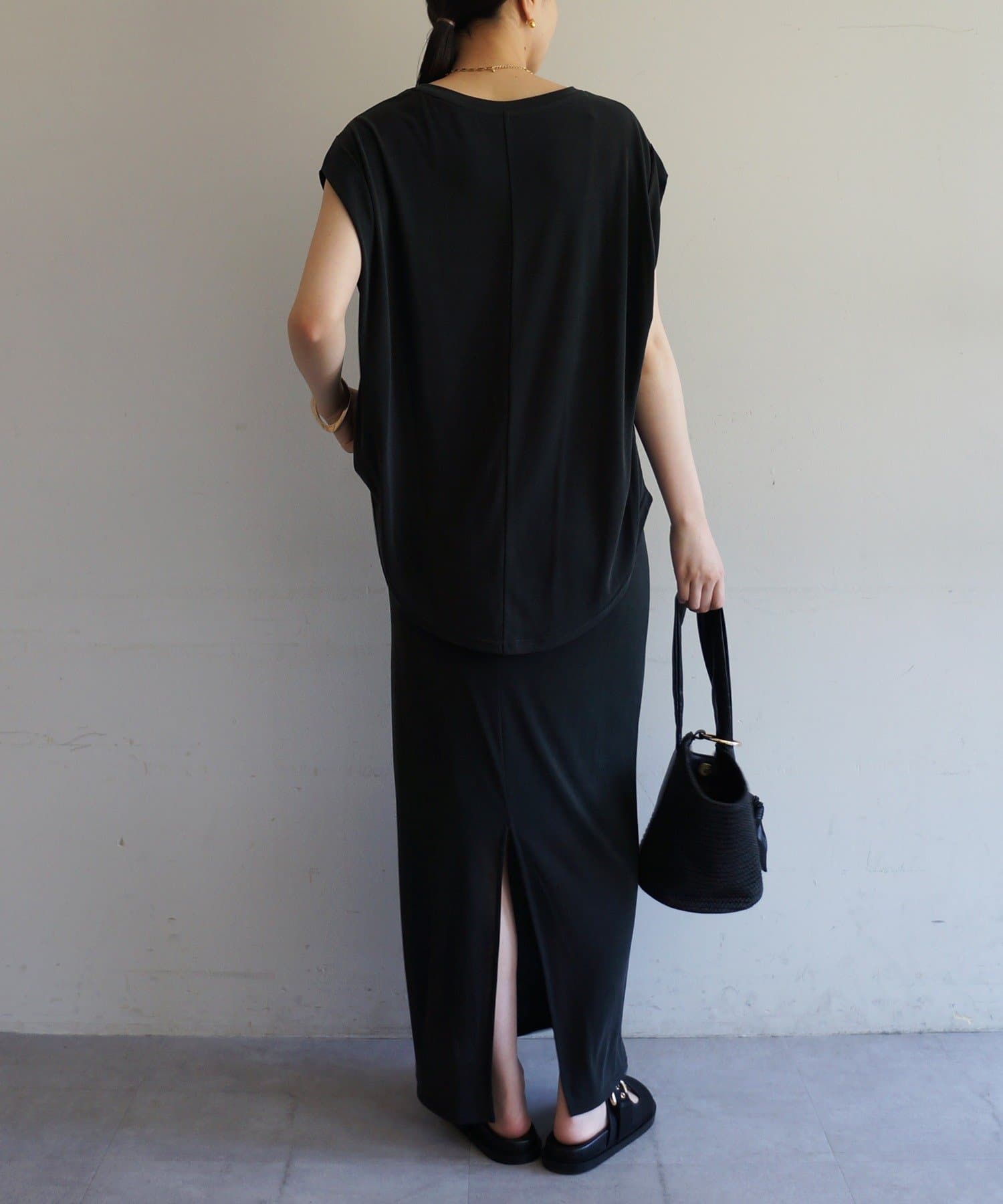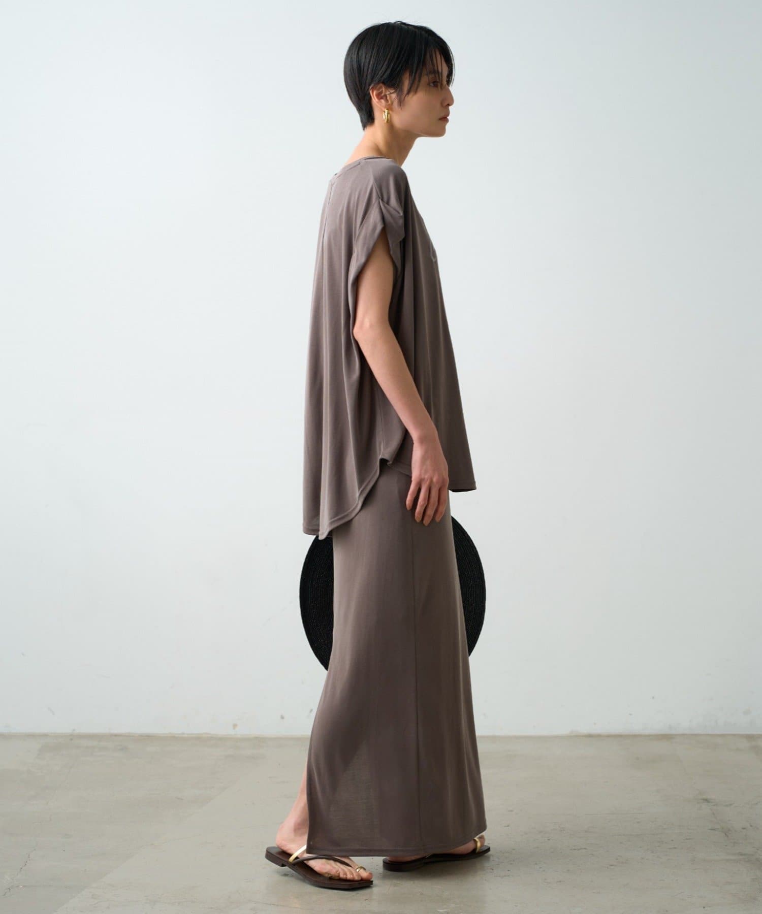 とろみのあるカットソー生地がカジュアルになりすぎず、こなれ感を演出してくれます。