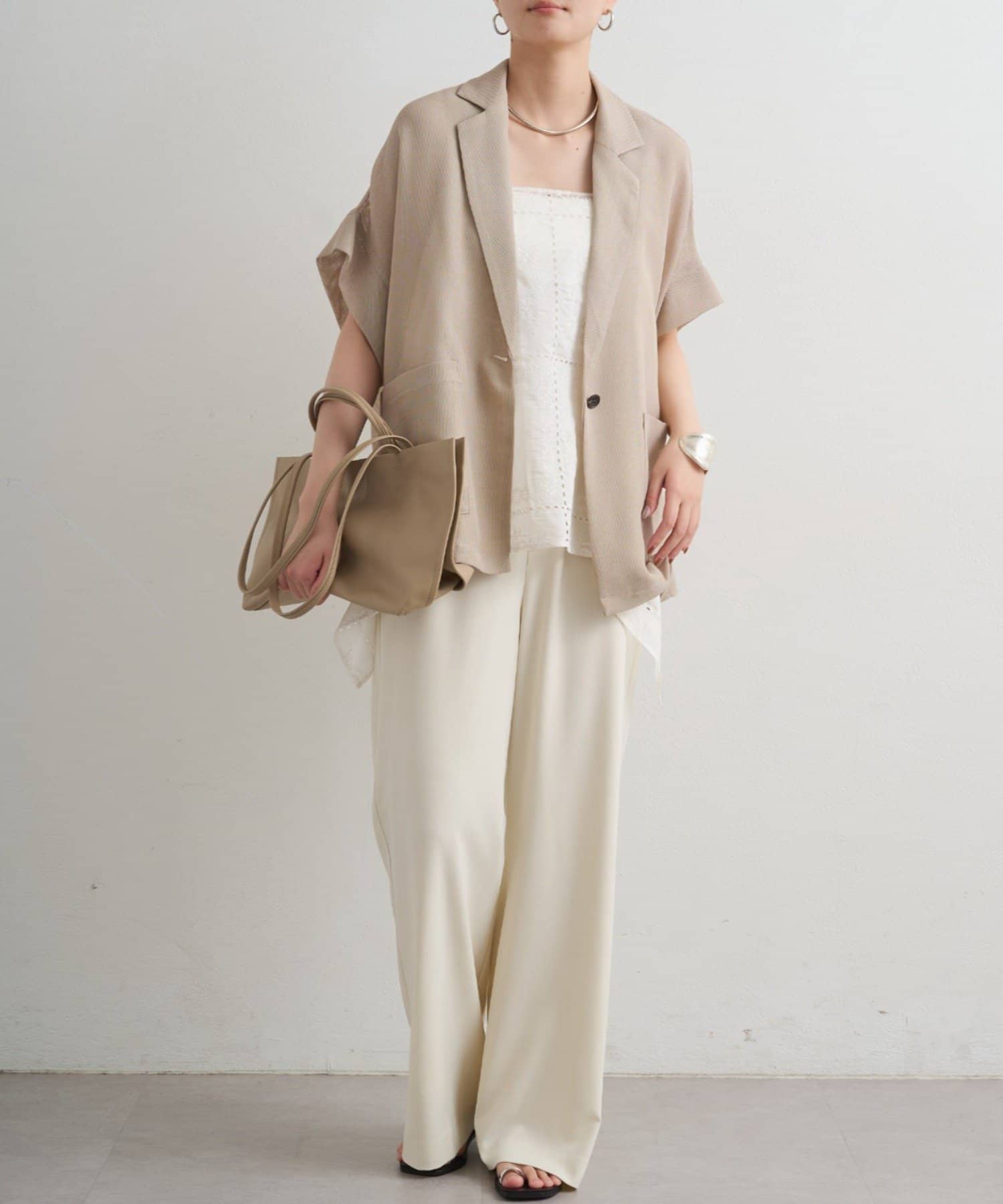 ワンピースやブラウスに羽織って、きれいめな着こなしに。