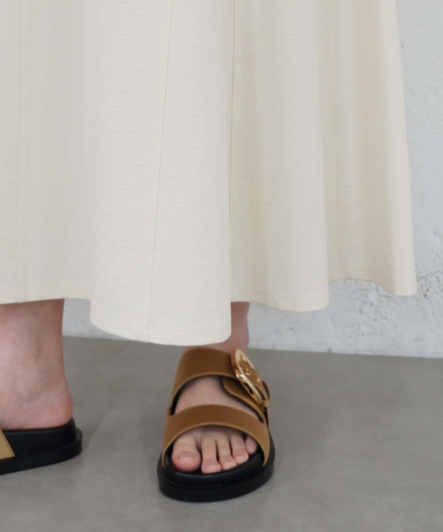 広がりすぎない上品なフレアシルエットが、大人の女性らしさを引き立てます。