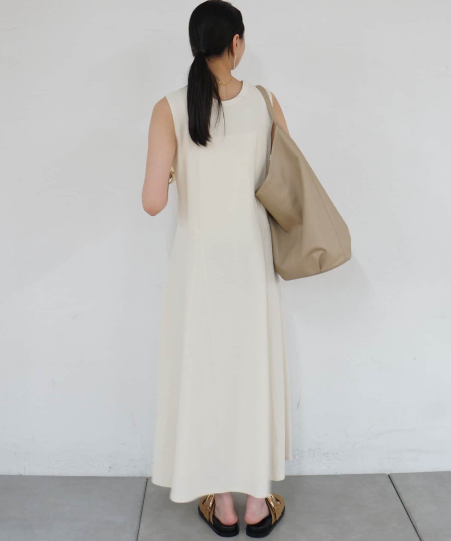1枚で着回しが楽しめる、前後2WAYのカットソー素材のワンピース
