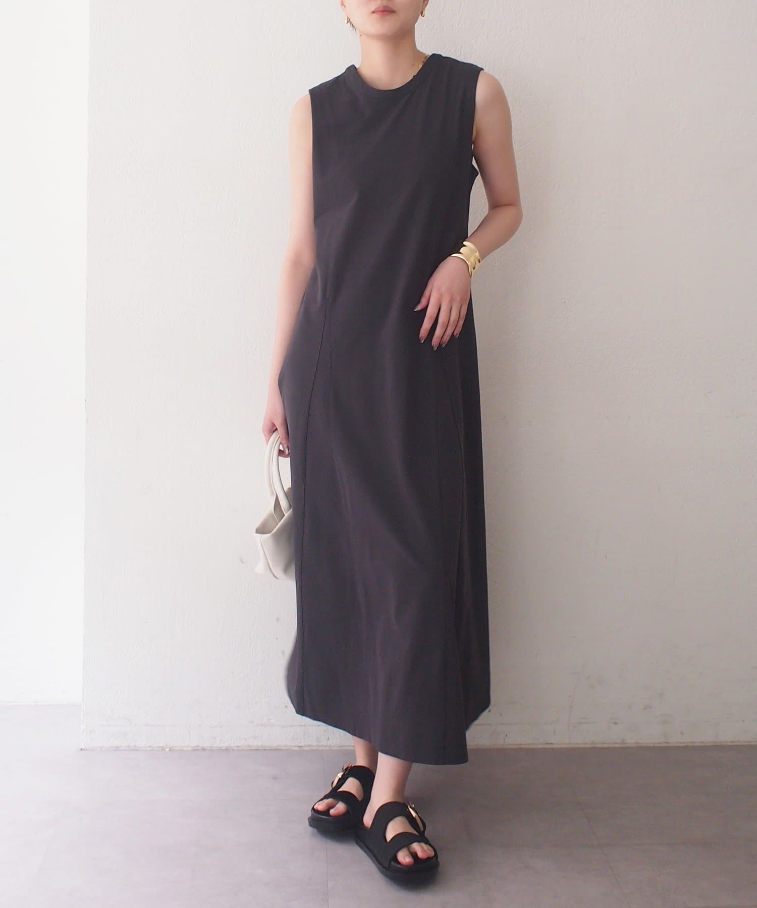 1枚で着回しが楽しめる、前後2WAYのカットソー素材のワンピース