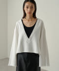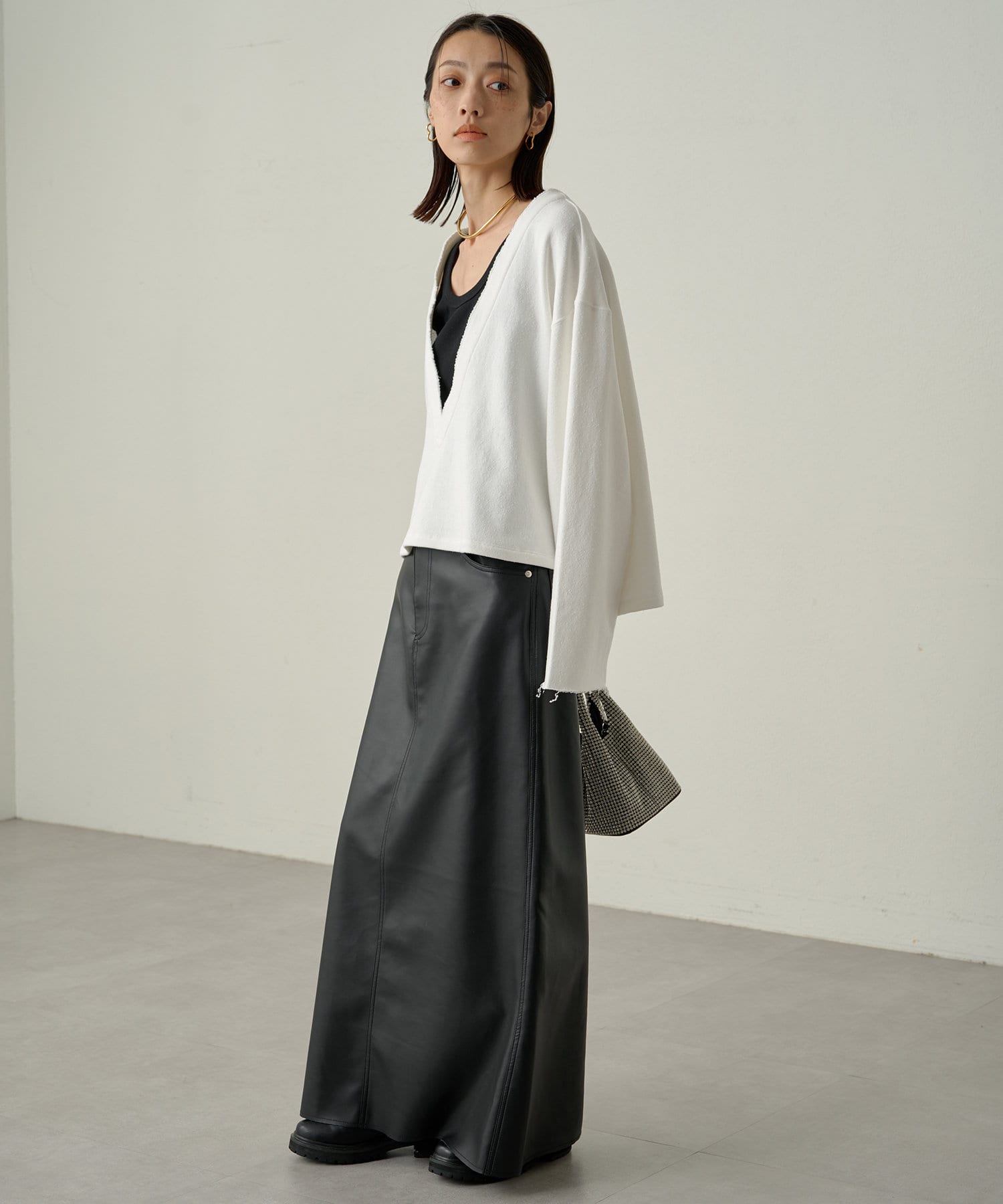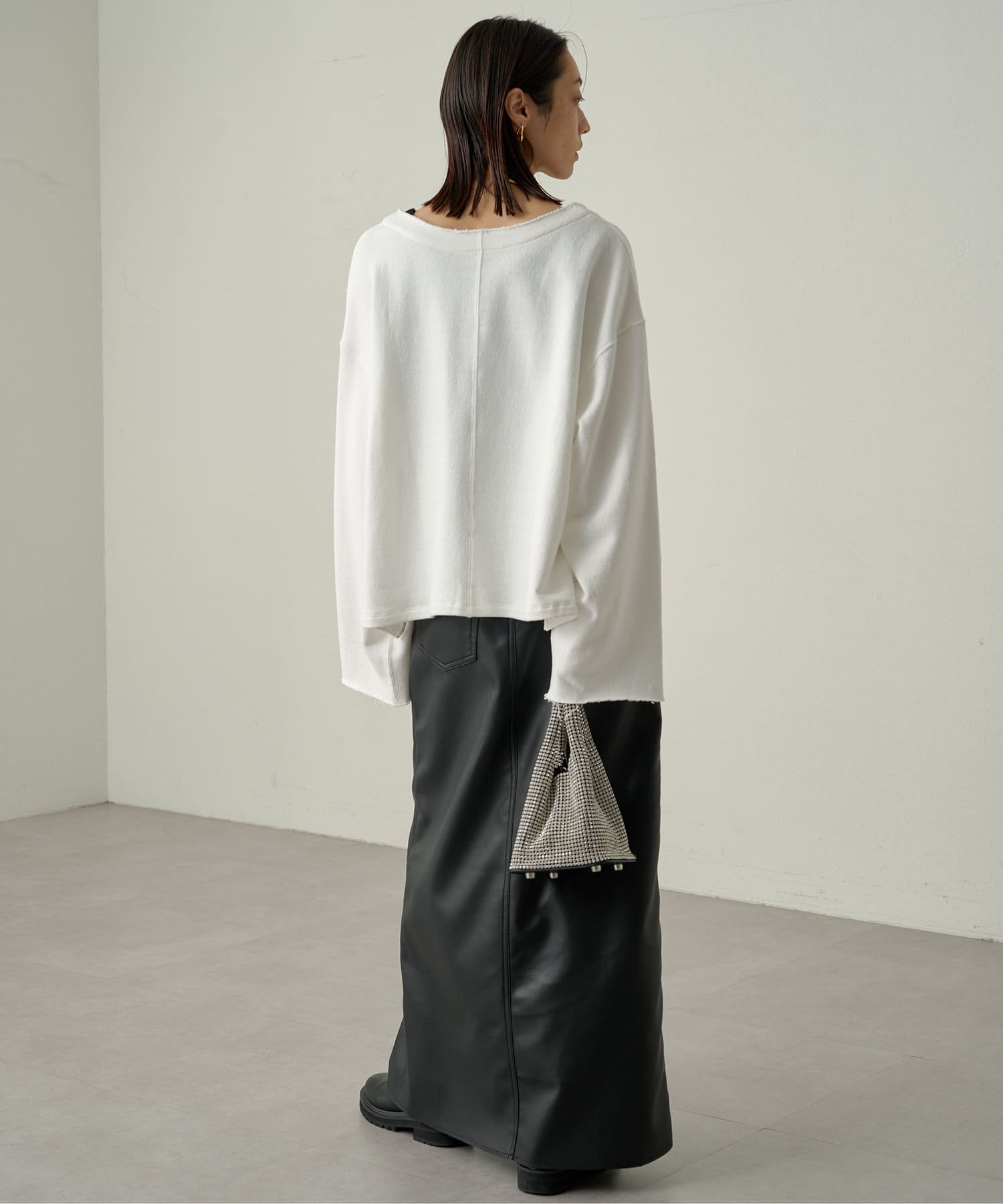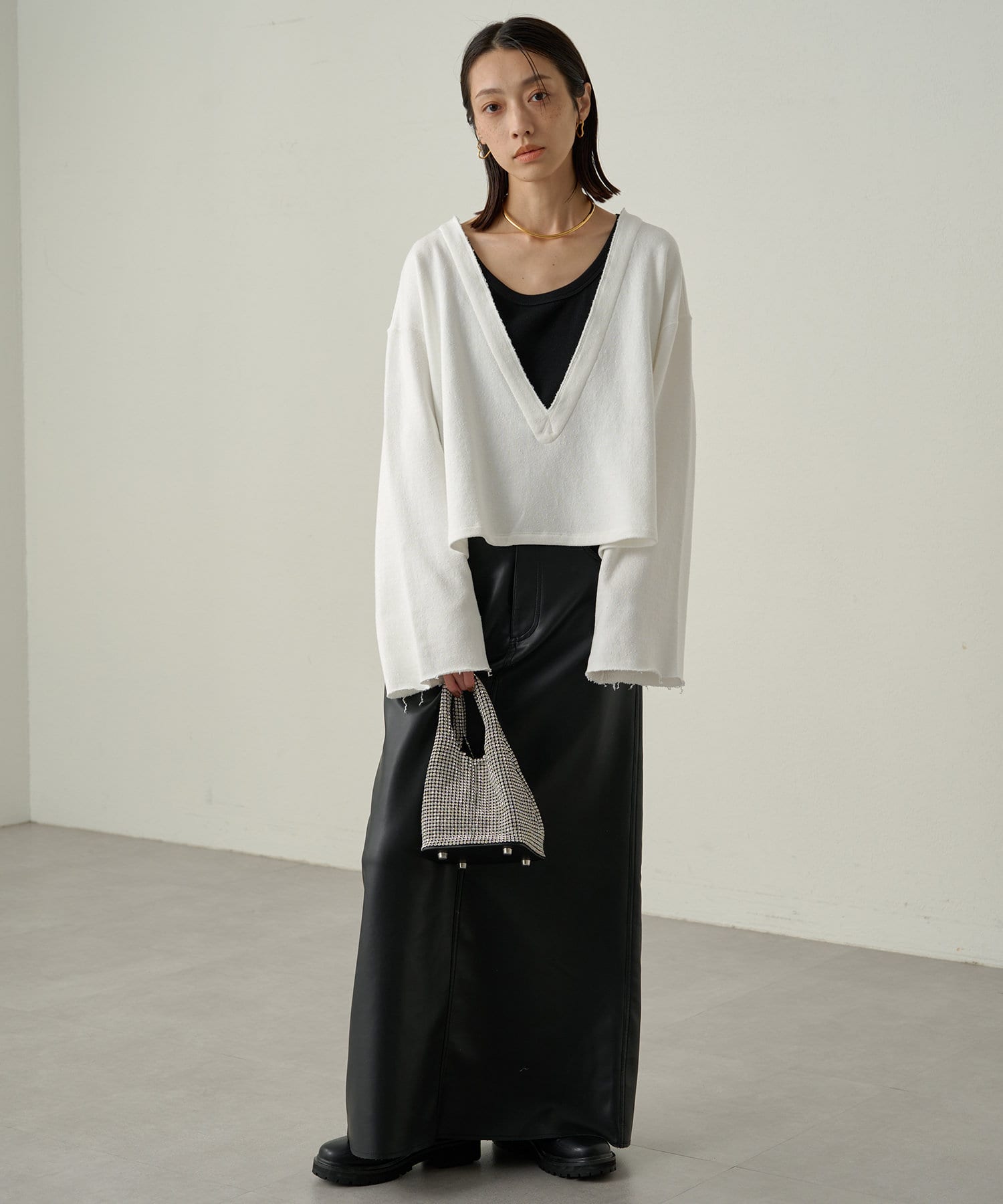 深めのVネックなので、インナーによって雰囲気を変えられます。