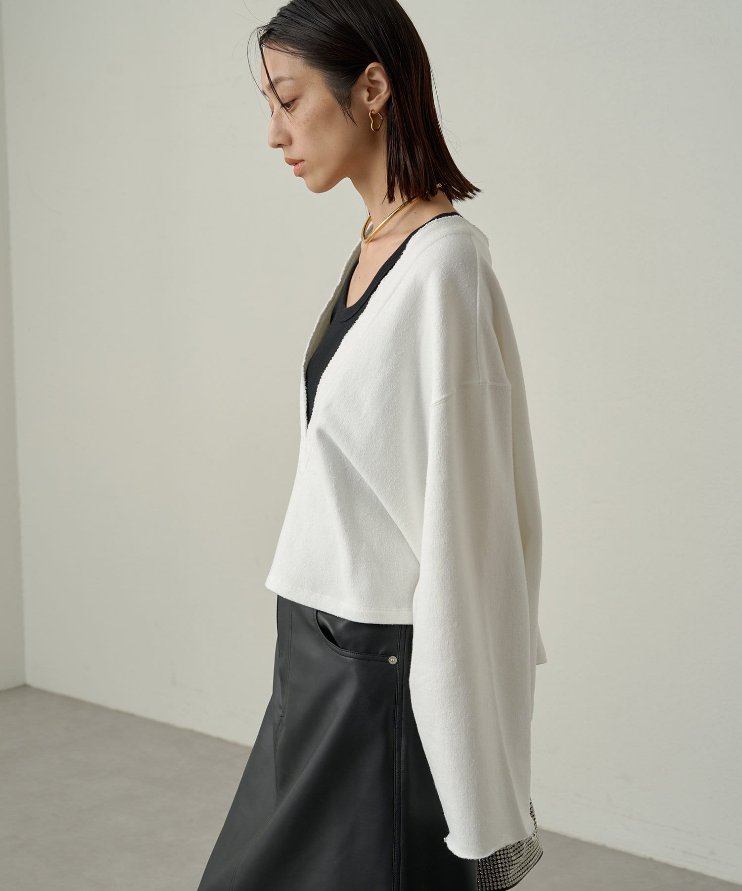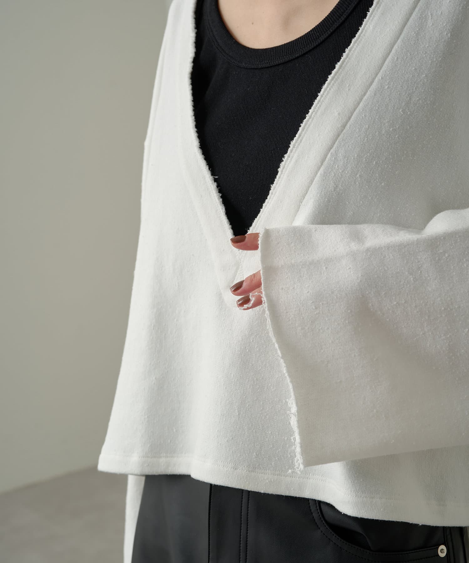 襟や裾はカットオフディティールにすることで程よい遊び心をプラス。