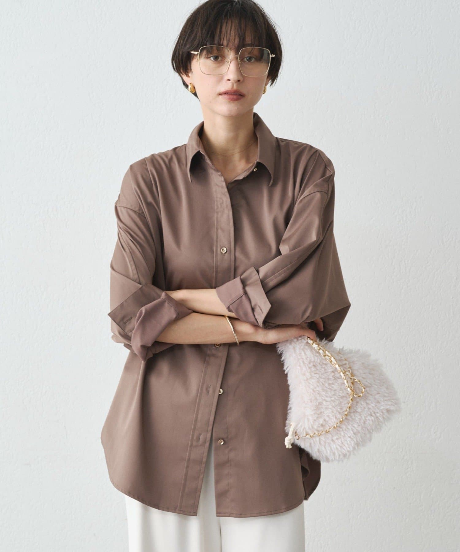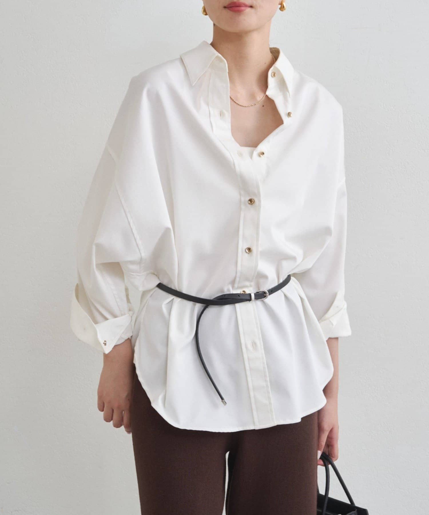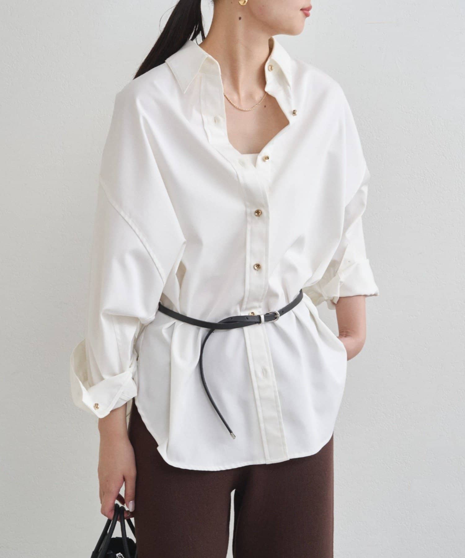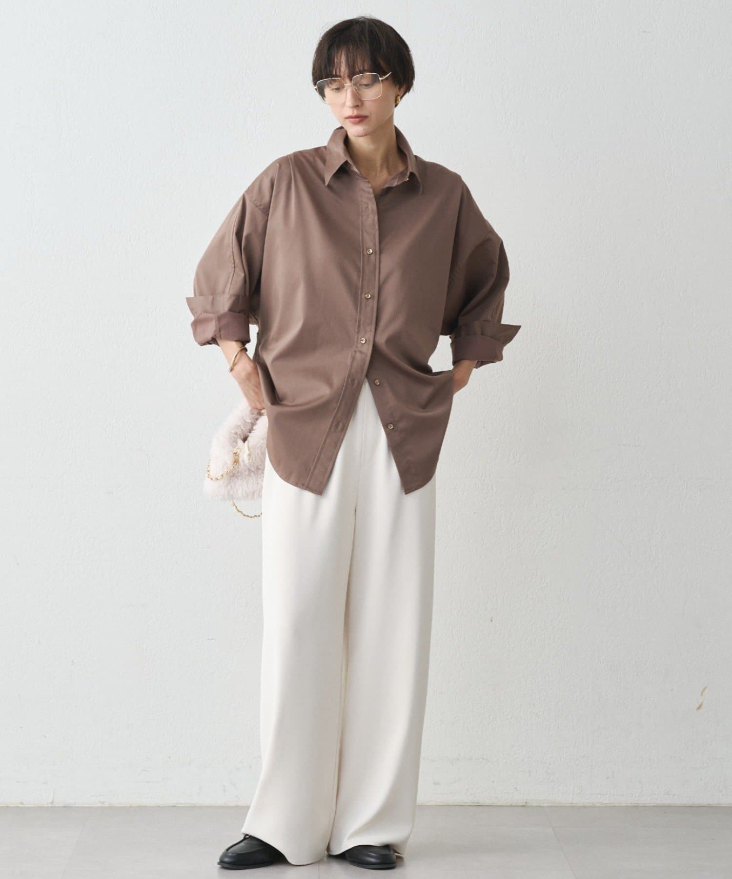 ハリ感のあるシャツはもちろん1枚でも、ニットやスウェットとレイヤードしても◎