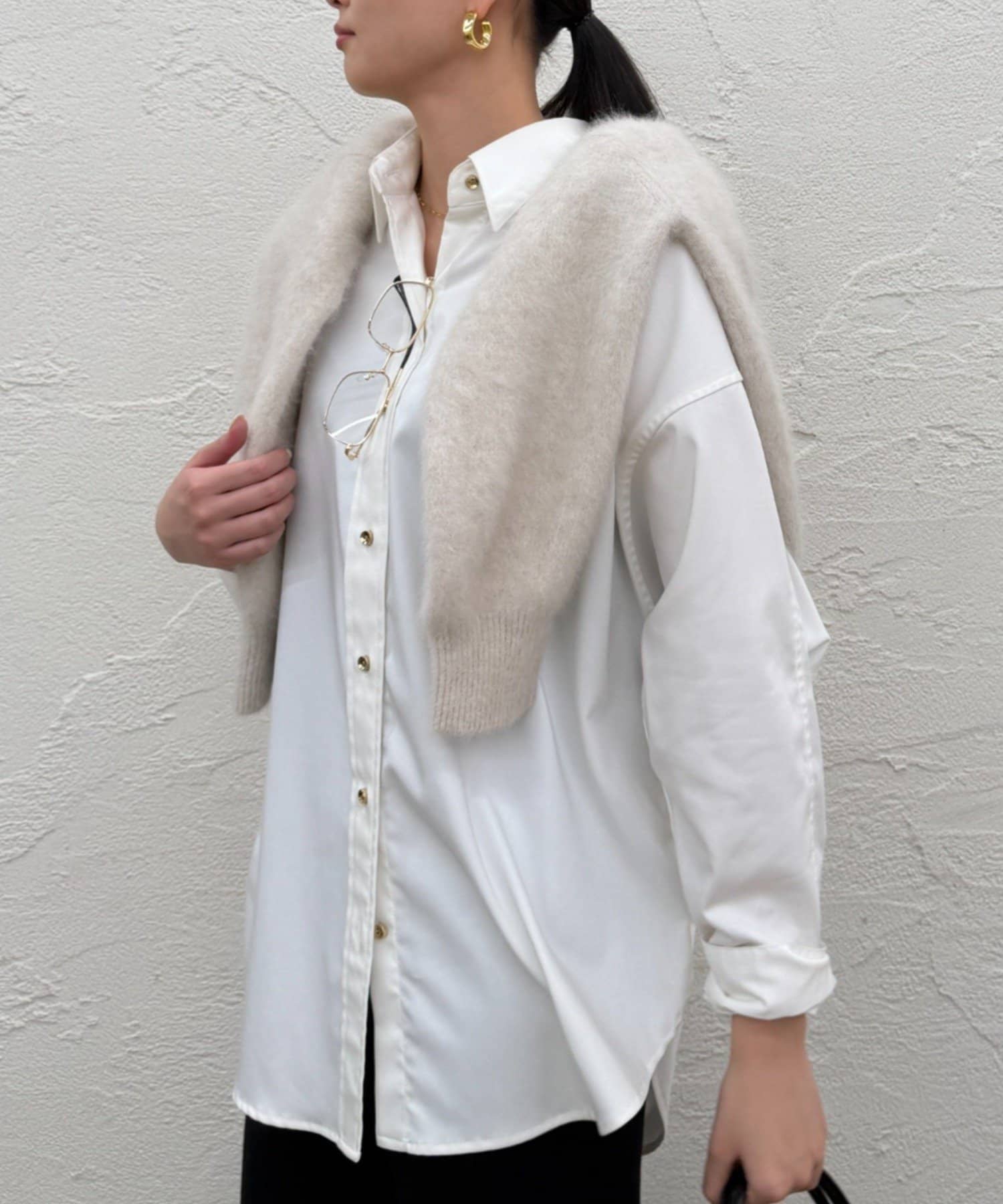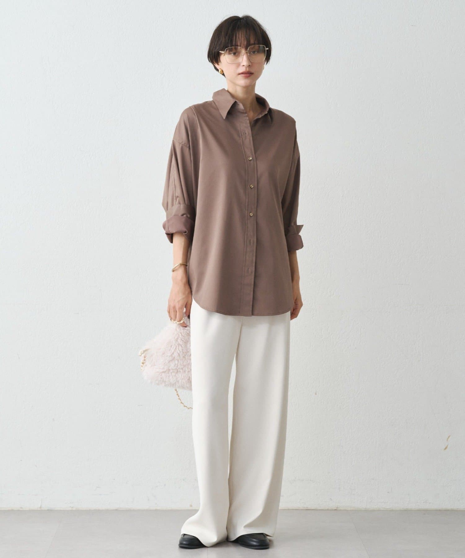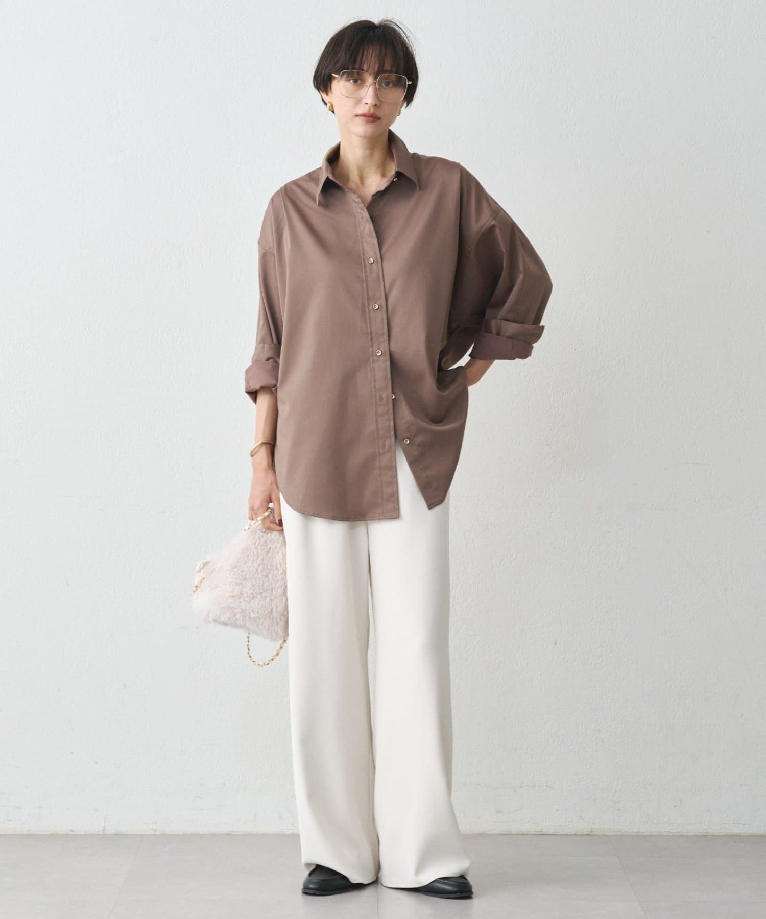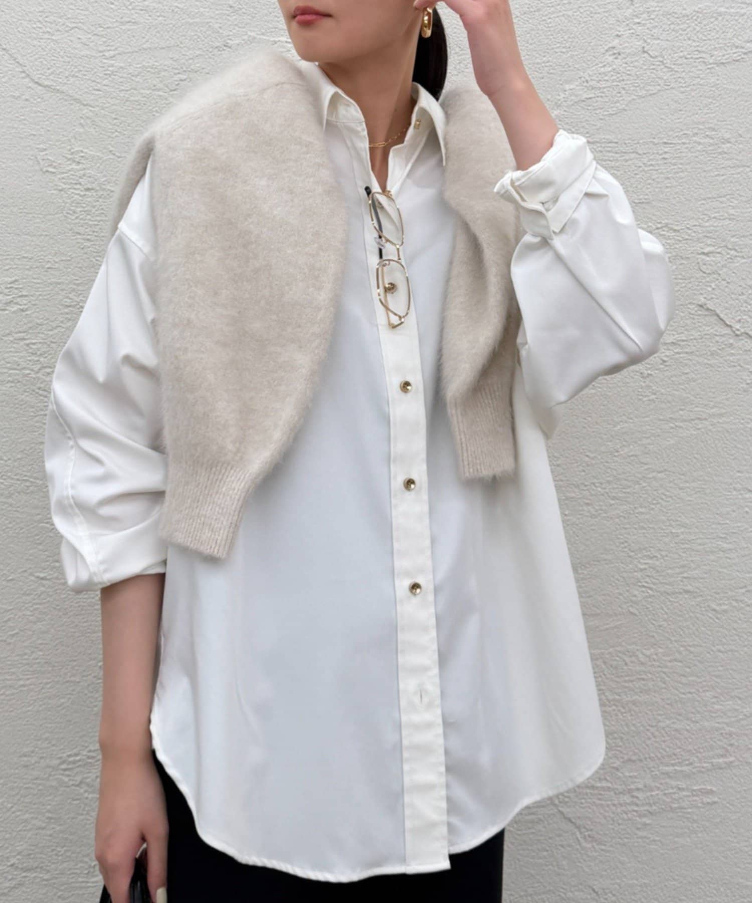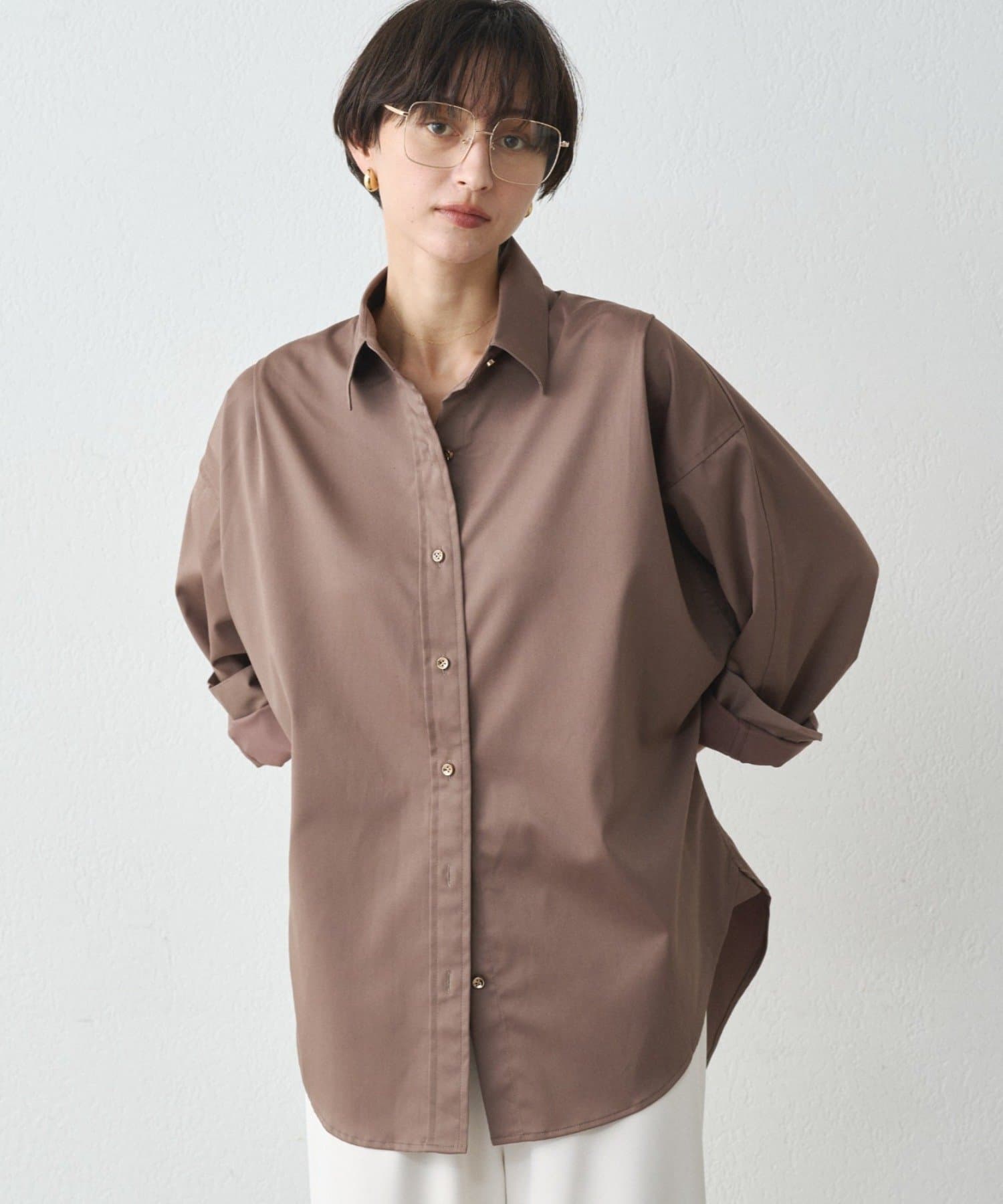 ハリ感のあるシャツはもちろん1枚でも、ニットやスウェットとレイヤードしても◎