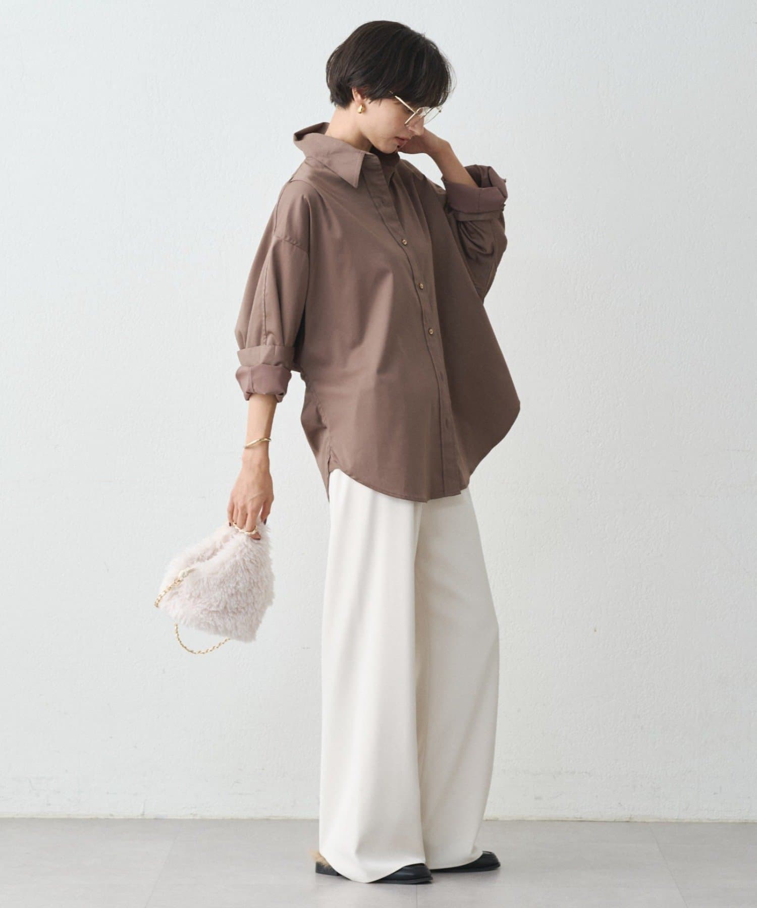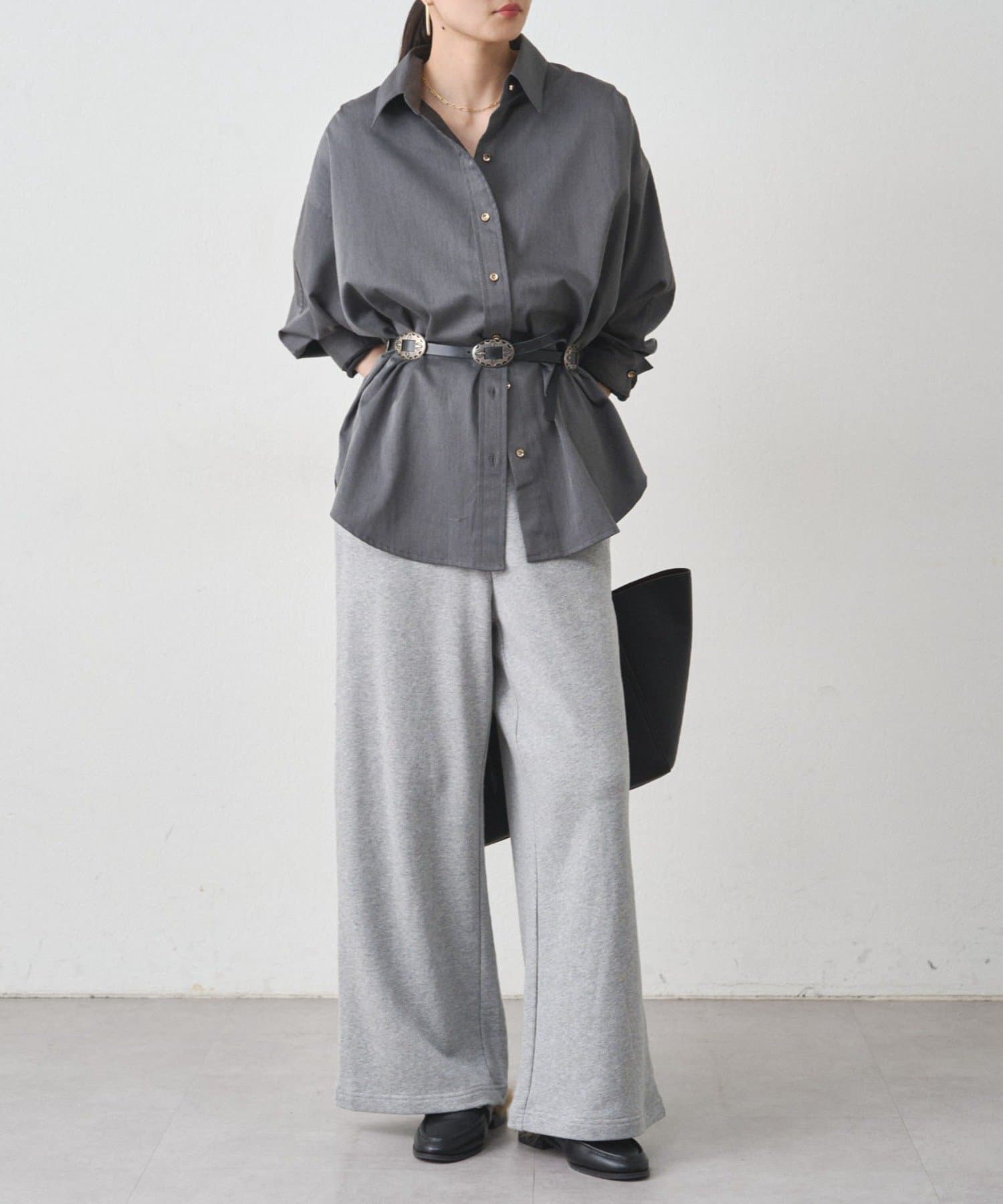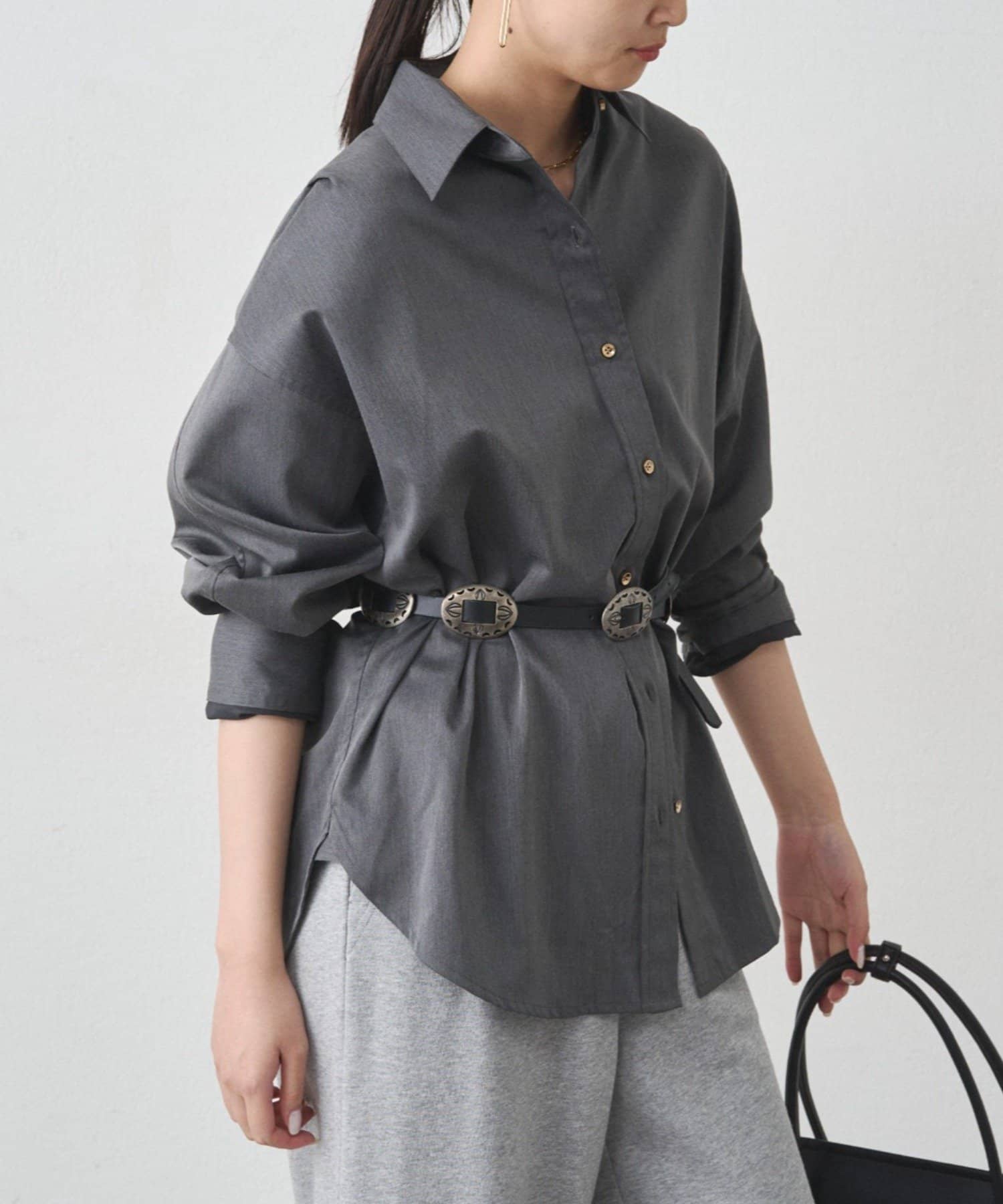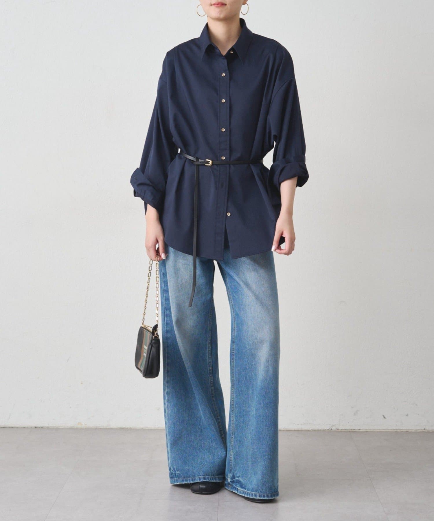ハリ感のあるシャツはもちろん1枚でも、ニットやスウェットとレイヤードしても◎