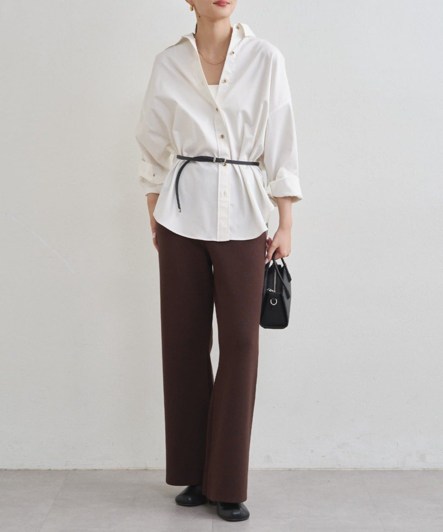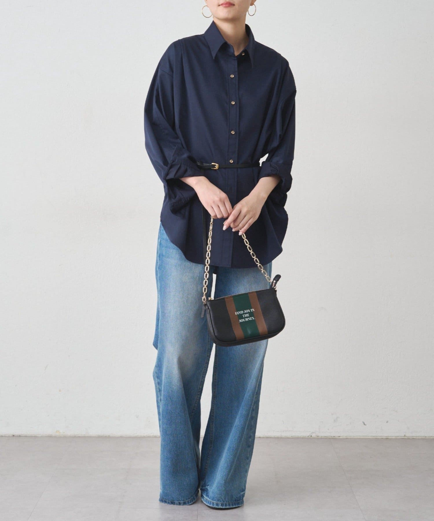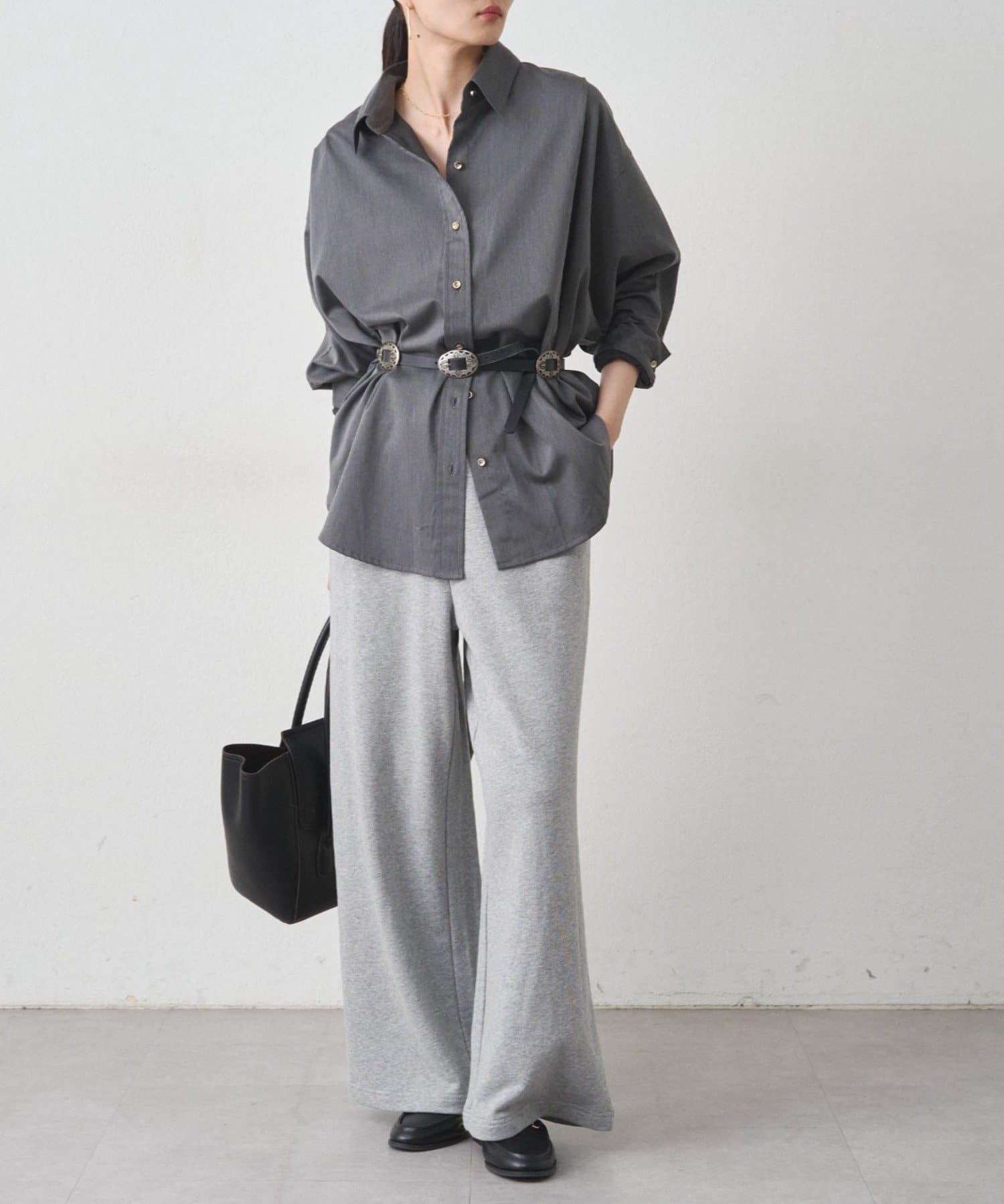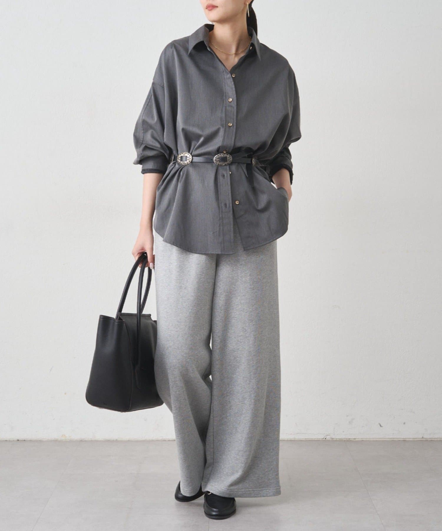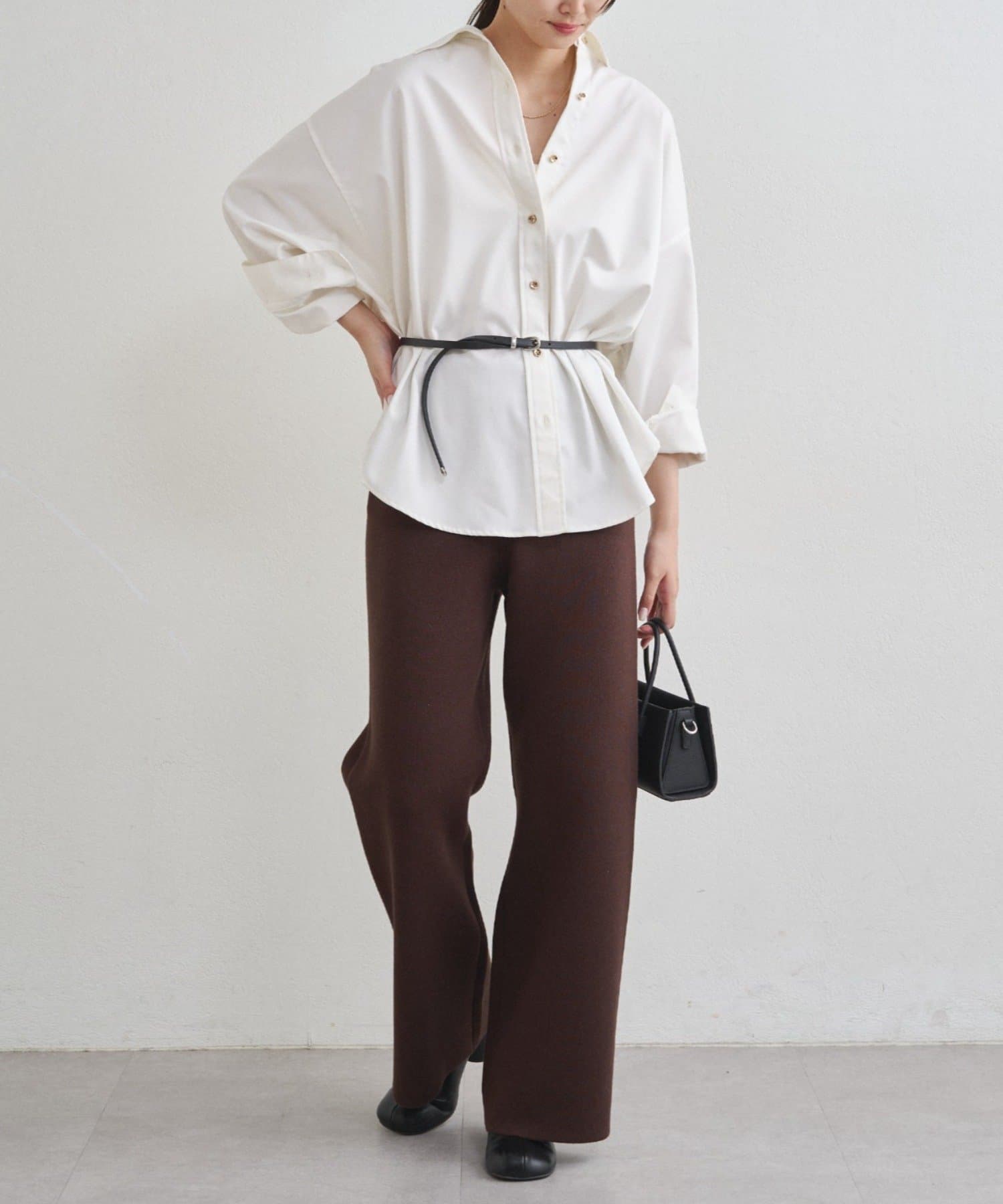 ハリ感のあるシャツはもちろん1枚でも、ニットやスウェットとレイヤードしても◎
