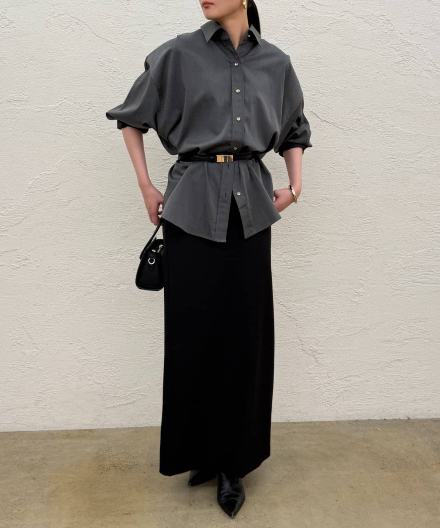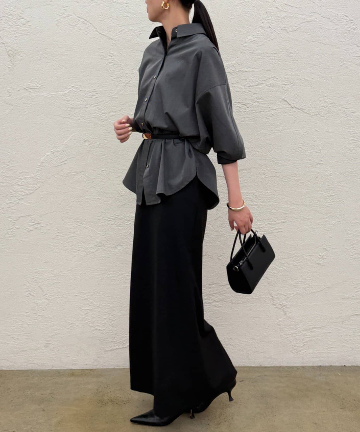 しわになりにくいサテン素材で、女性らしく着こなせるシルエットにこだわりました。