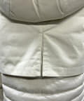 優しいホワイトカラーで歳を気にせず着れます。厚手のニットは着ずらいサイズ感ですが、薄手のニットで充分暖かくいです。