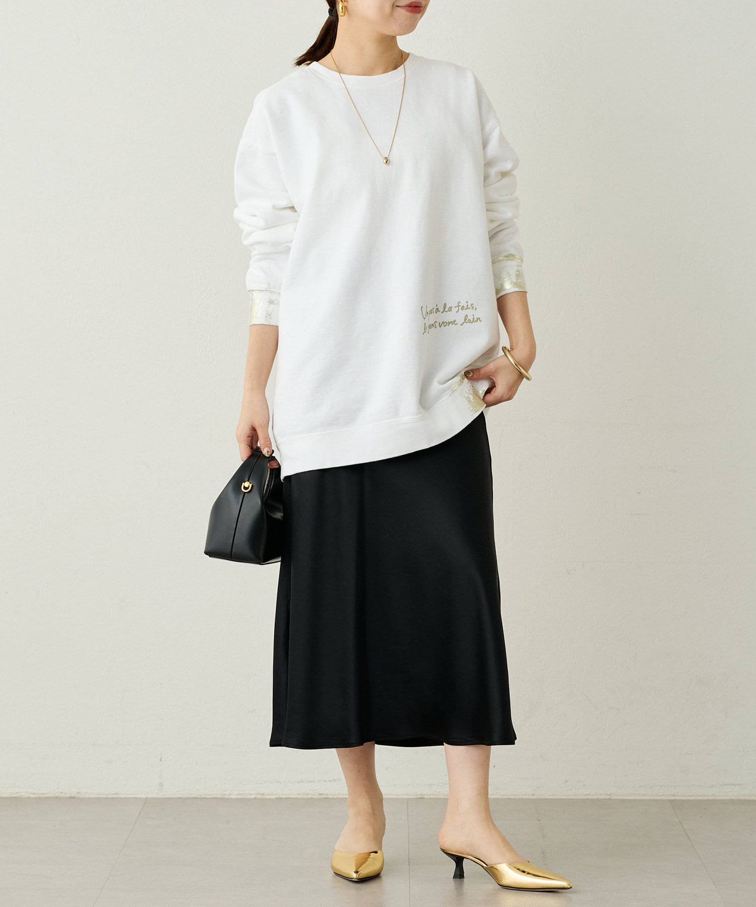 デニムを合わせたカジュアルスタイルや、スカートを合わせて女性らしい雰囲気にも。
