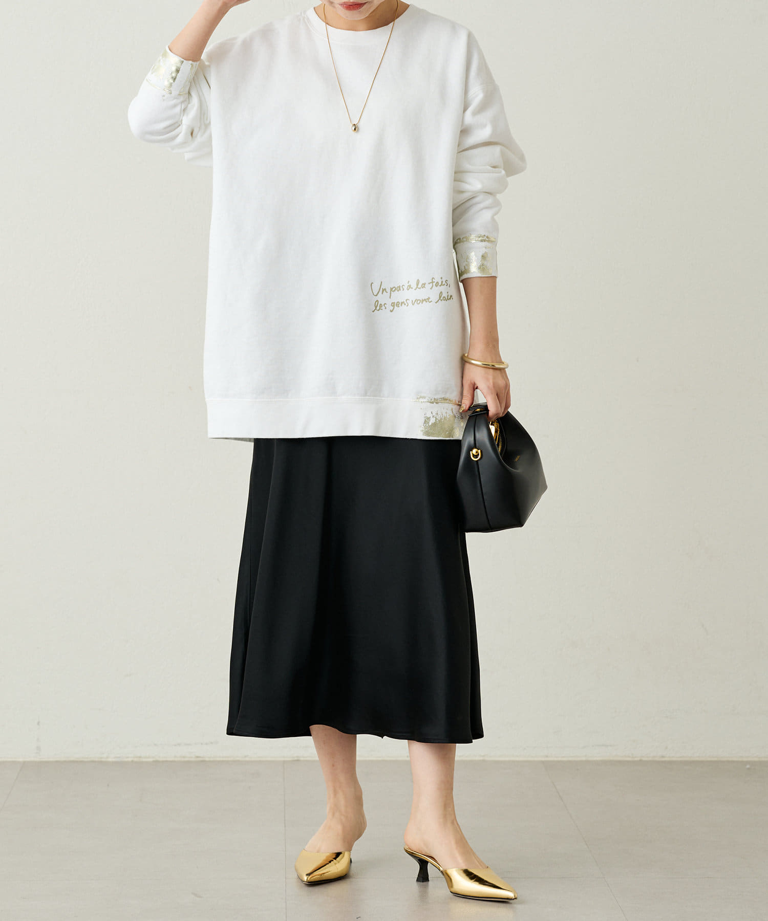 ゆったりしたデザインなのですっきりとしたデザインのボトムスとも相性抜群です。