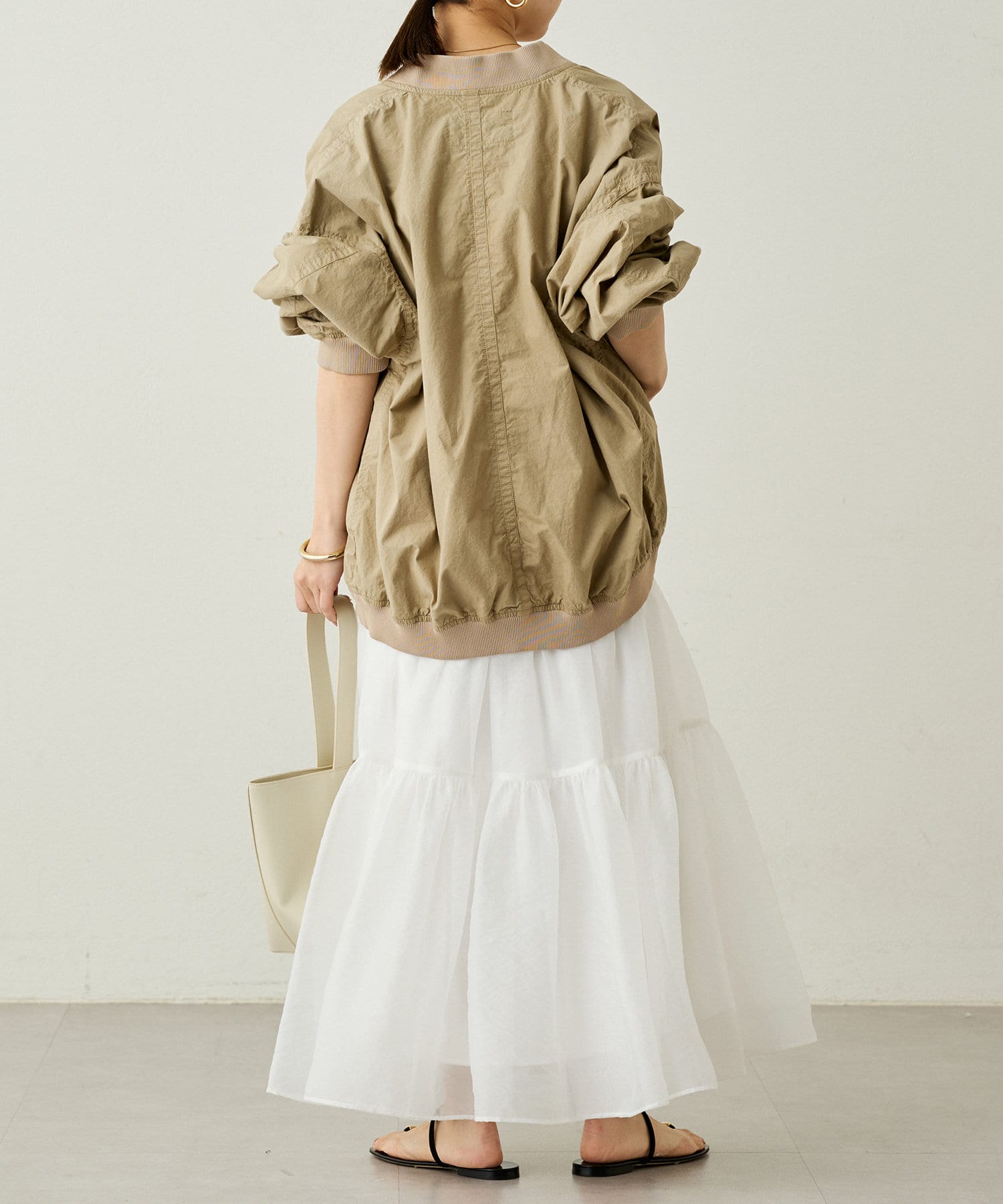 タイトスカートやワイドパンツなど様々なボトムスと合わせていただけます。