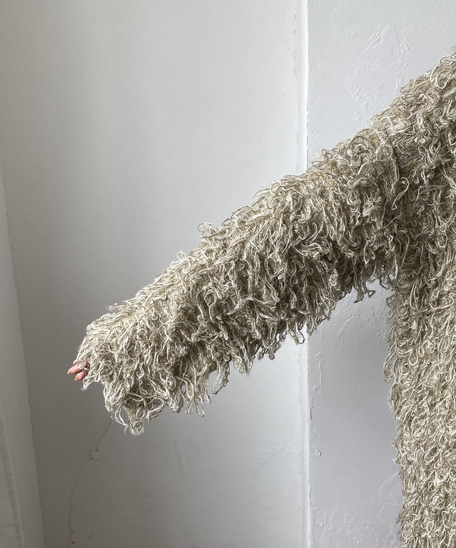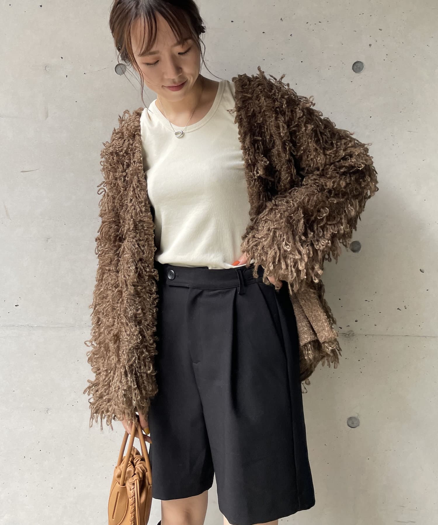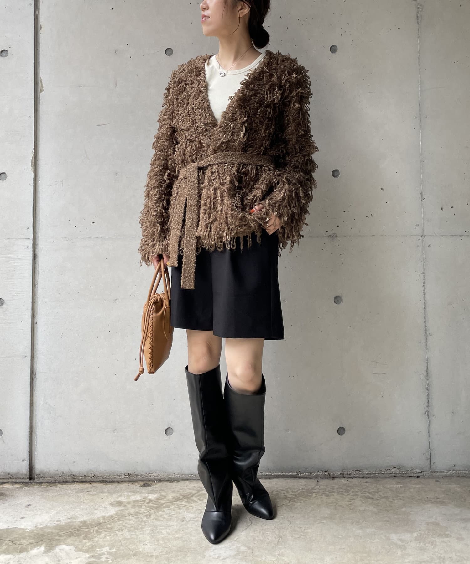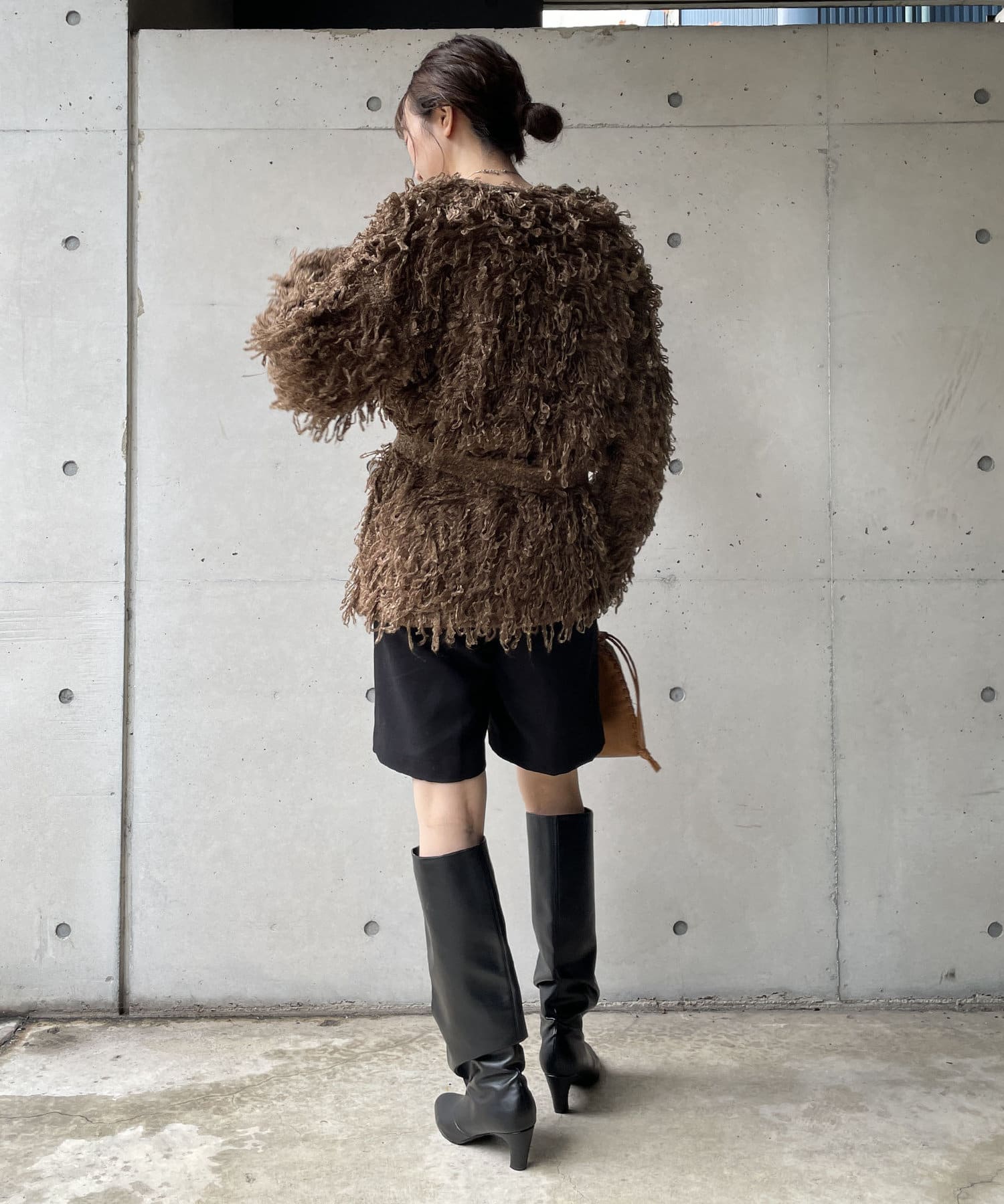 毛足の長いループフリンジが前面に施された目を惹くデザイン。